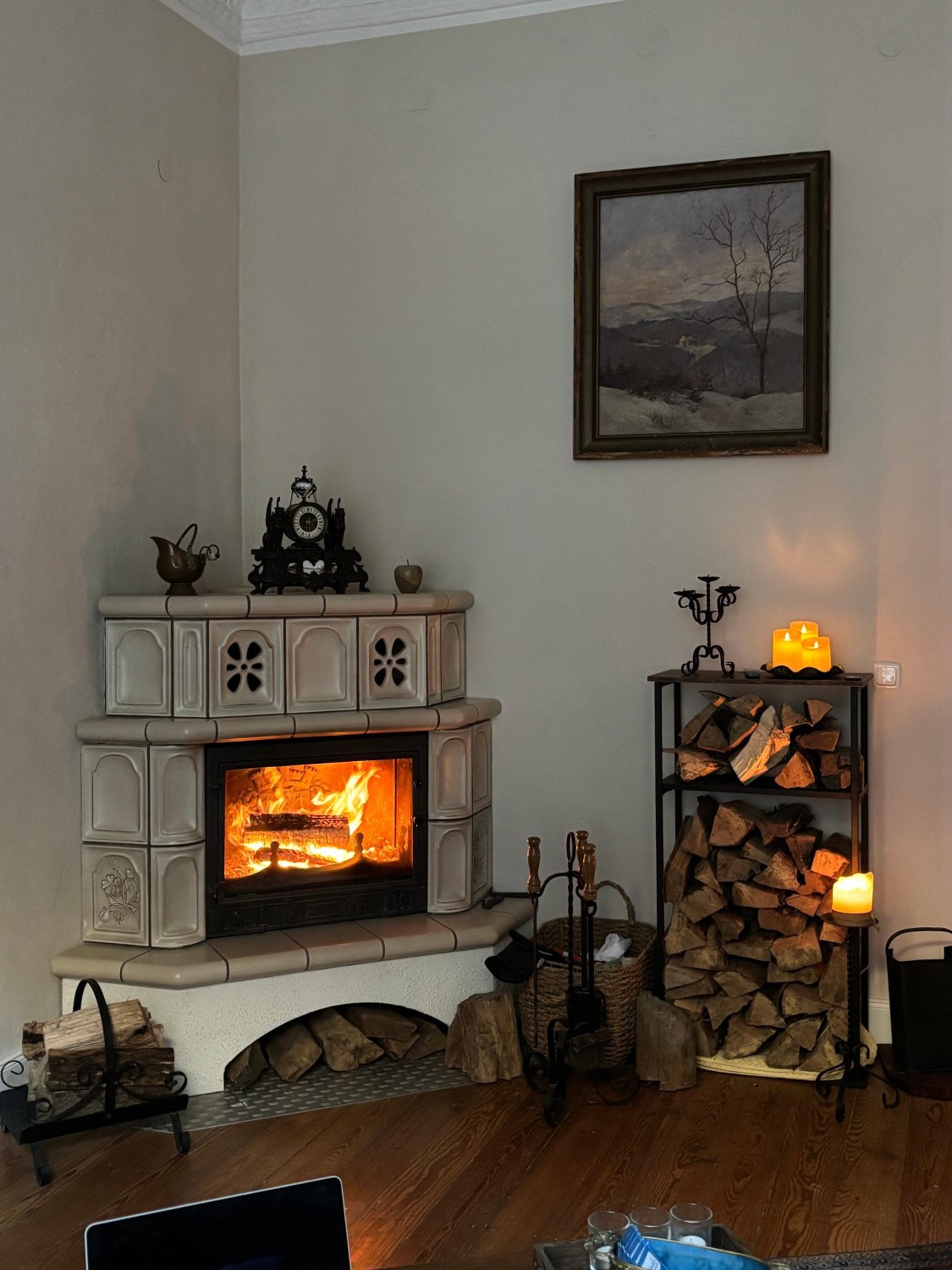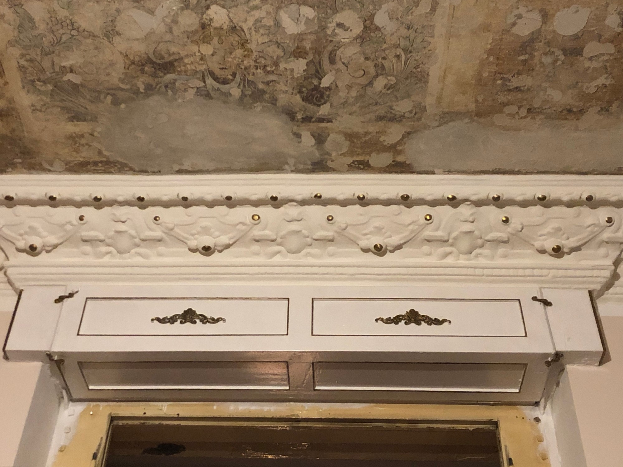 - Fresques au plafond représentant les quatre saisons, dans le style d'Alfons Mucha (requièrent une restauration)