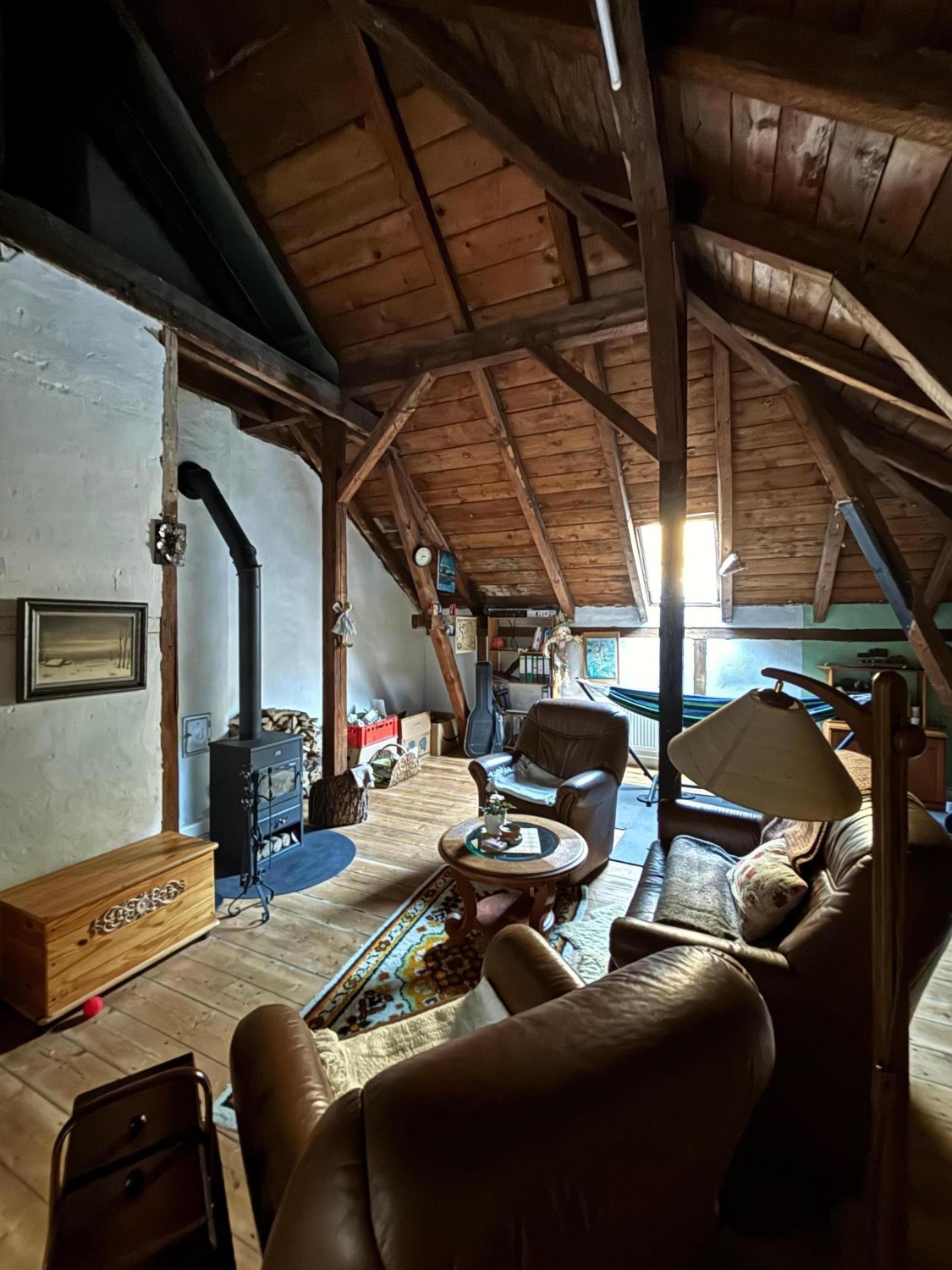 Note : Une autre moitié des combles de 50 m², actuellement utilisée comme salle de cheminée, est non aménagée.