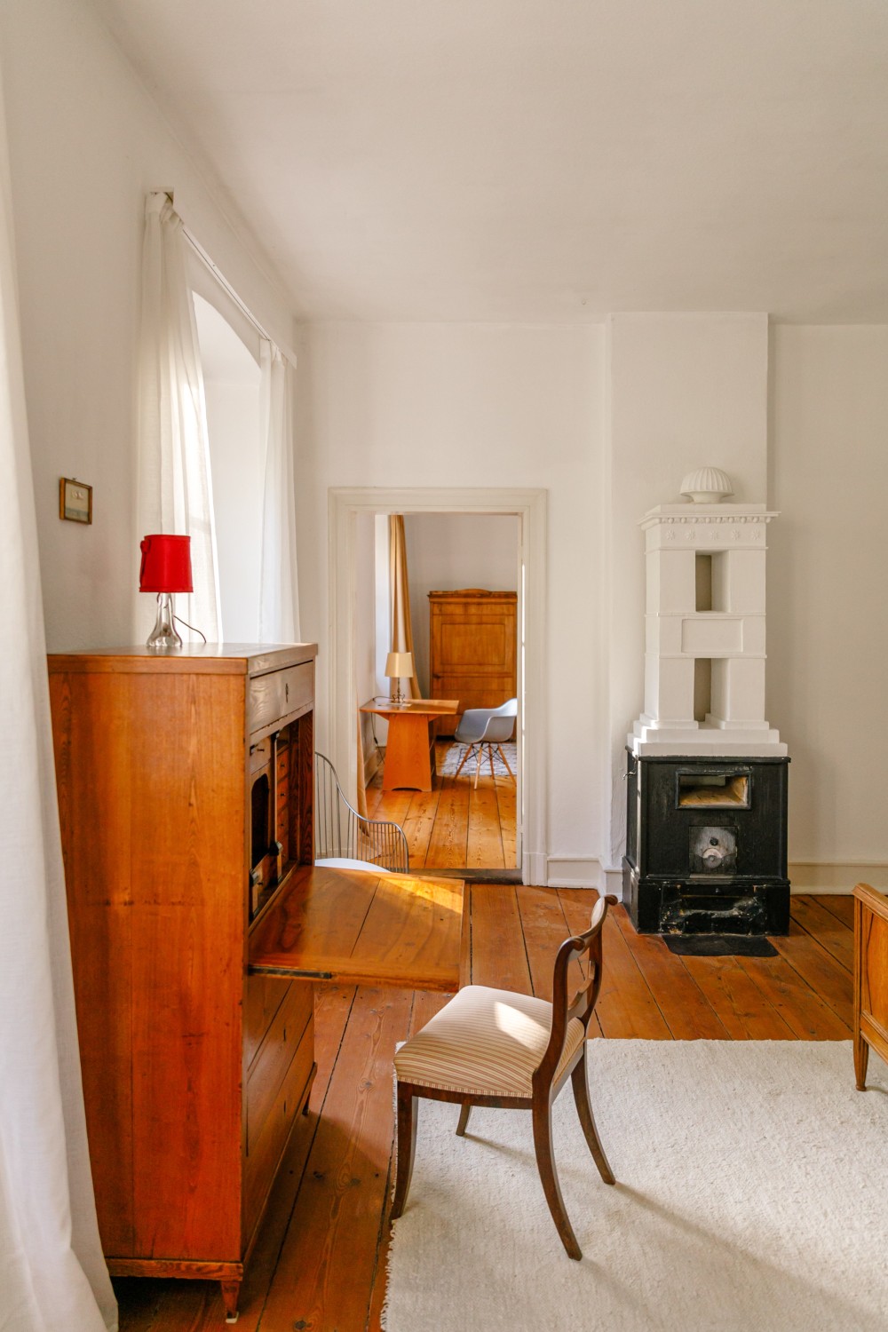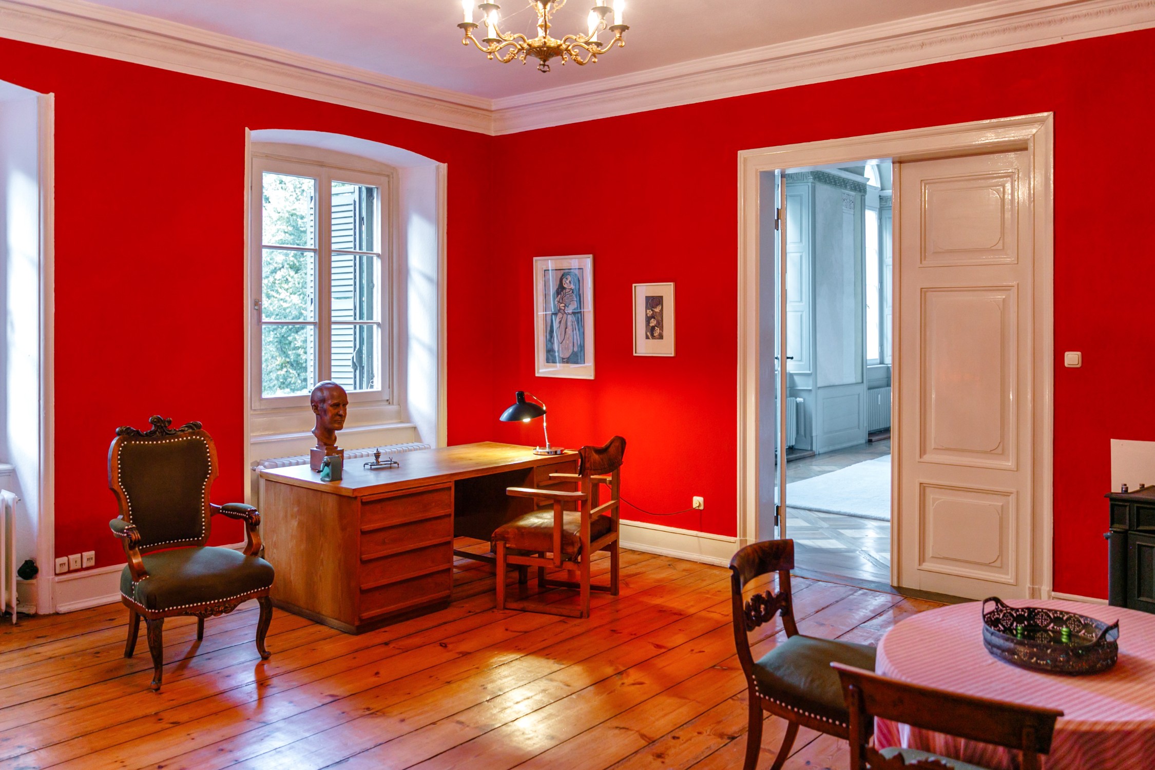 Avec environ 500 m² de surface habitable, la maison principale offre de généreux volumes, des plafonds hauts, des parquets anciens, des moulures d’époque et des éléments de style authentiques.