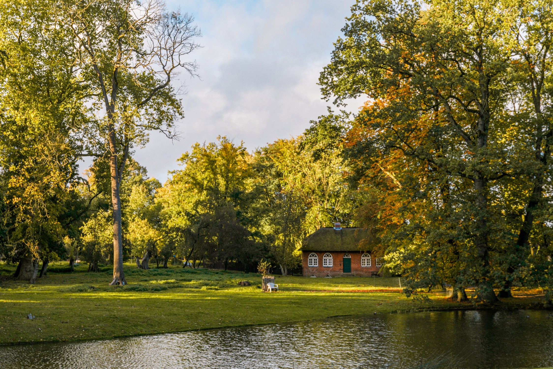La demeure ainsi que son parc paysager sont classés monuments historiques. Ce jardin, conçu selon les principes de l’école paysagère de Lenné (projet de diplôme), entoure la maison de pelouses spacieuses, de grands arbres (chênes, hêtres) et de sentiers romantiques.