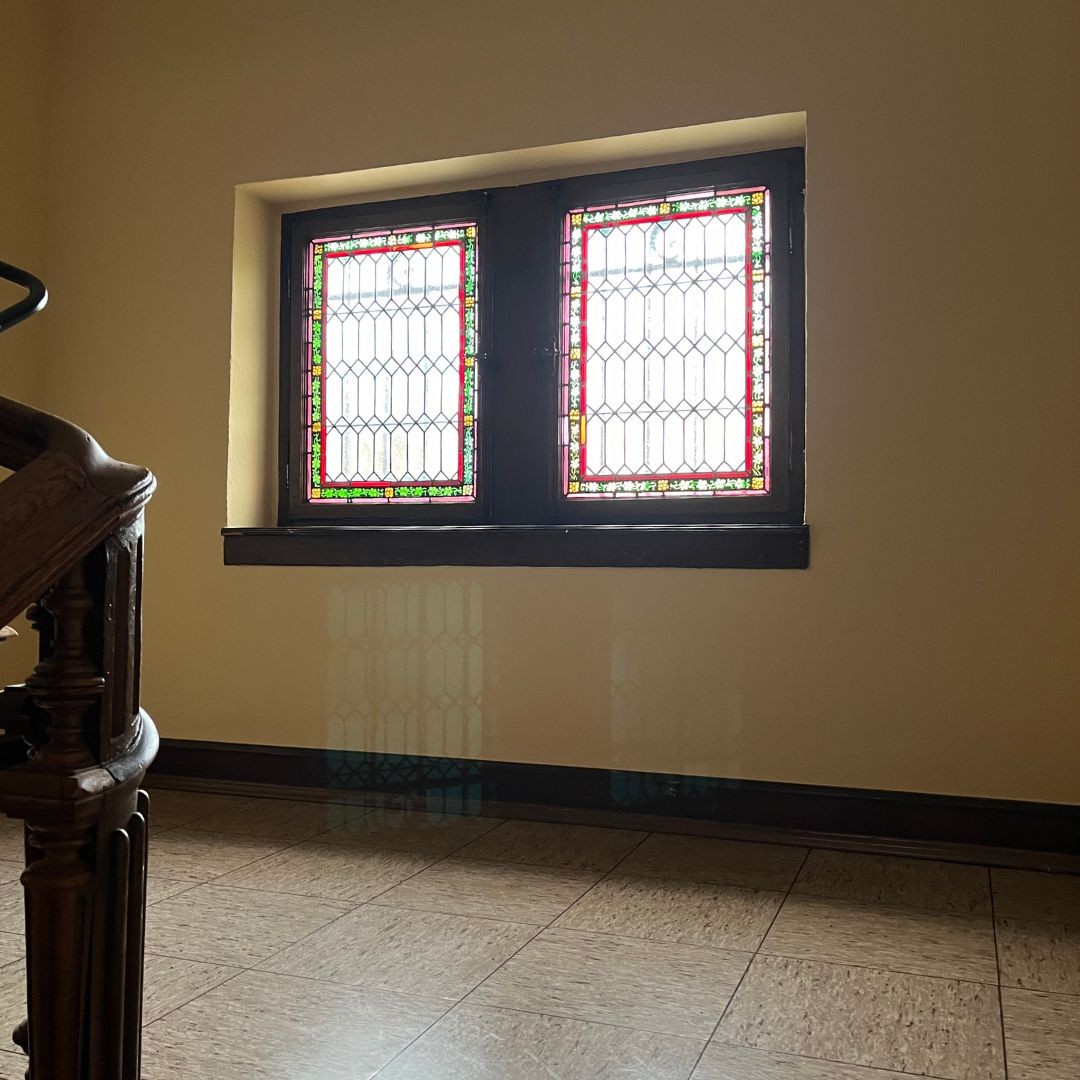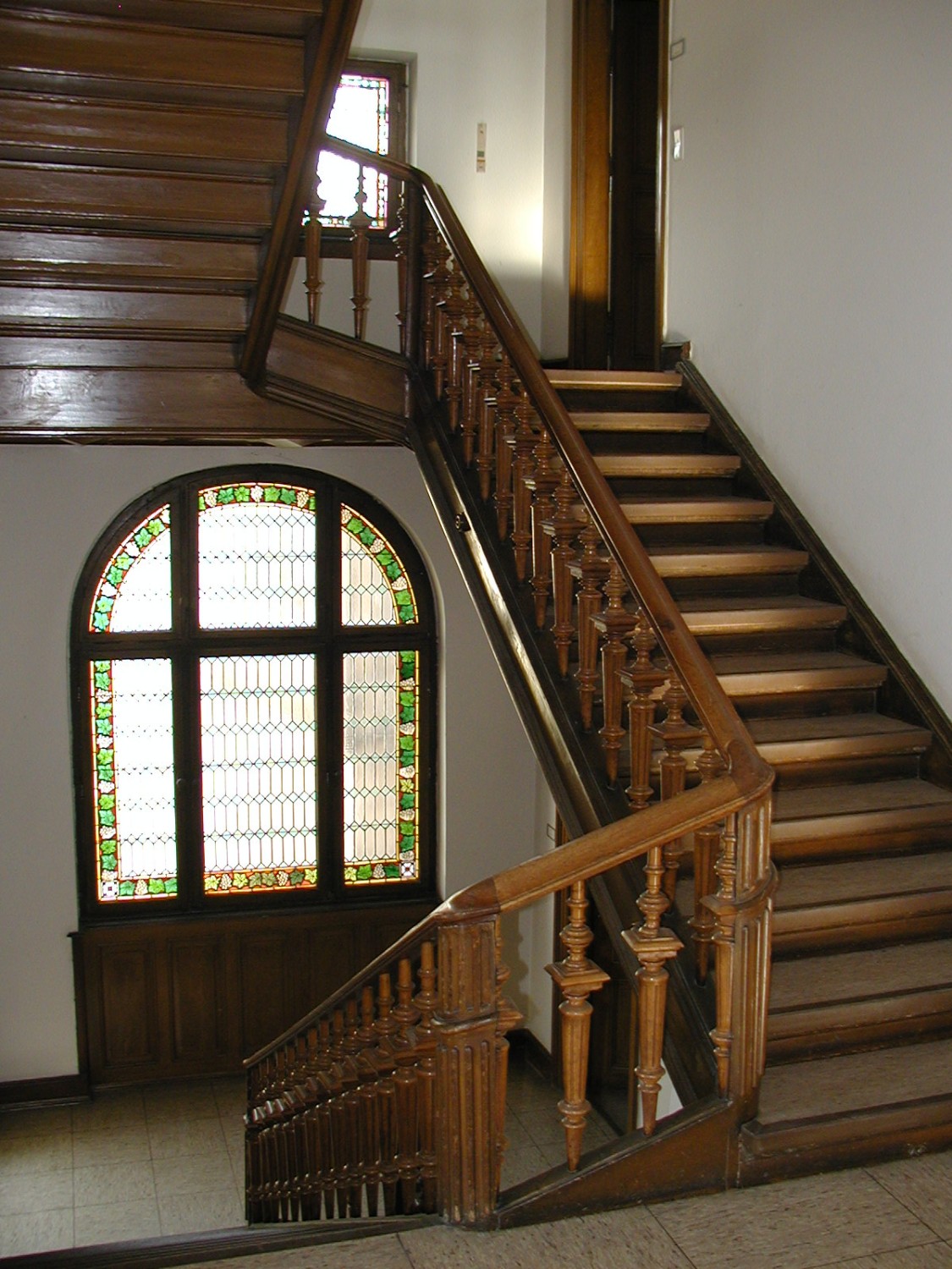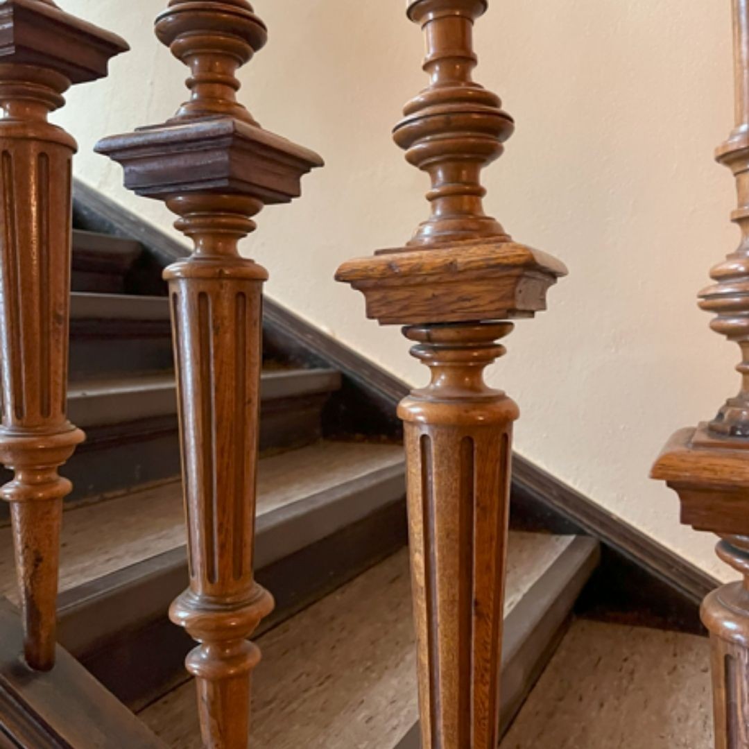 L’intérieur conserve de nombreux éléments d’origine : un portail surmonté d’une imposte en arc, un escalier en bois ouvragé, des fenêtres anciennes ornées de vitres peintes à la main, ainsi qu’une loggia sur jardin.