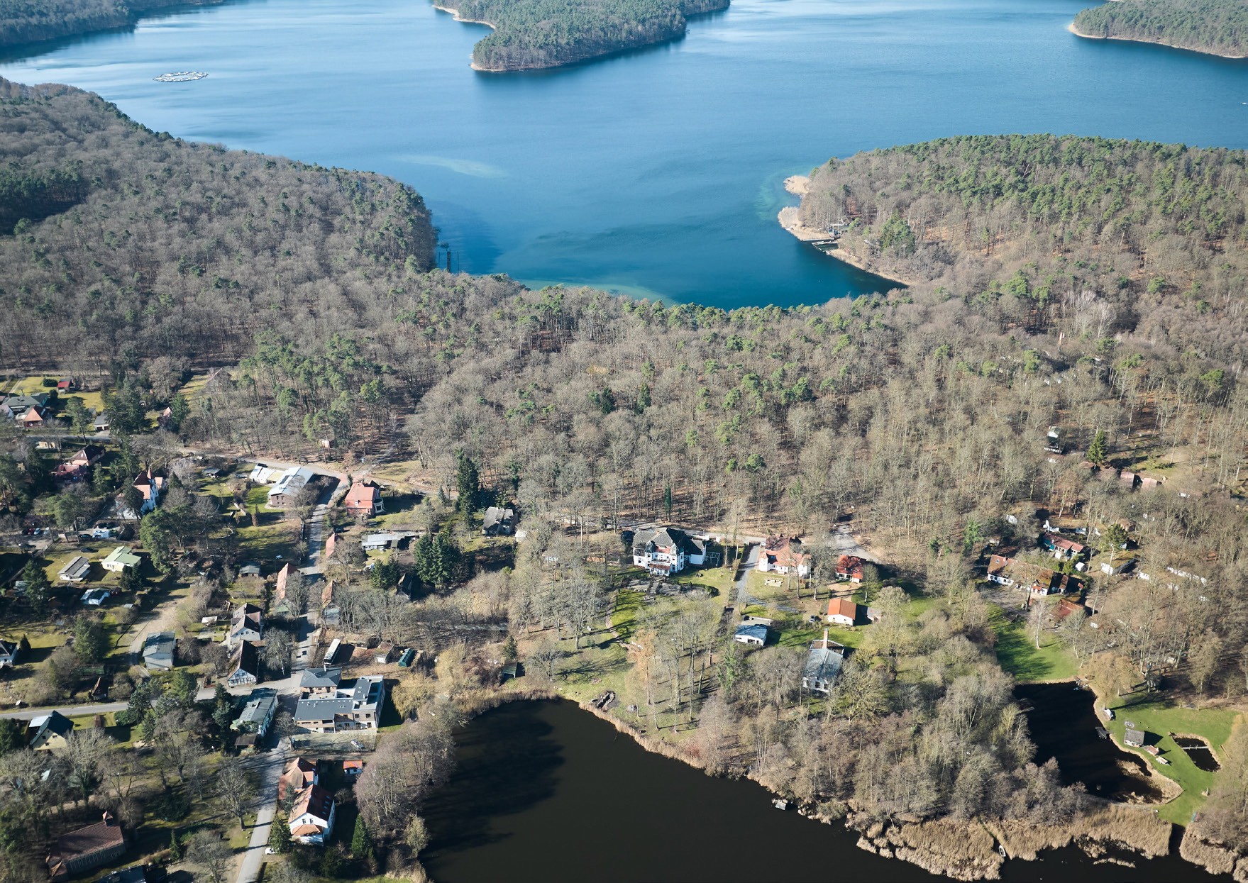 Un terrain de plus de 9 000 m² entre le Dagowsee et le grand lac Stechlin, avec un jardin soigné et de majestueux arbres anciens, fait de cette villa avec accès privé au lac (environ 70 m de rive) un lieu de vie exceptionnel dans la région de Berlin.