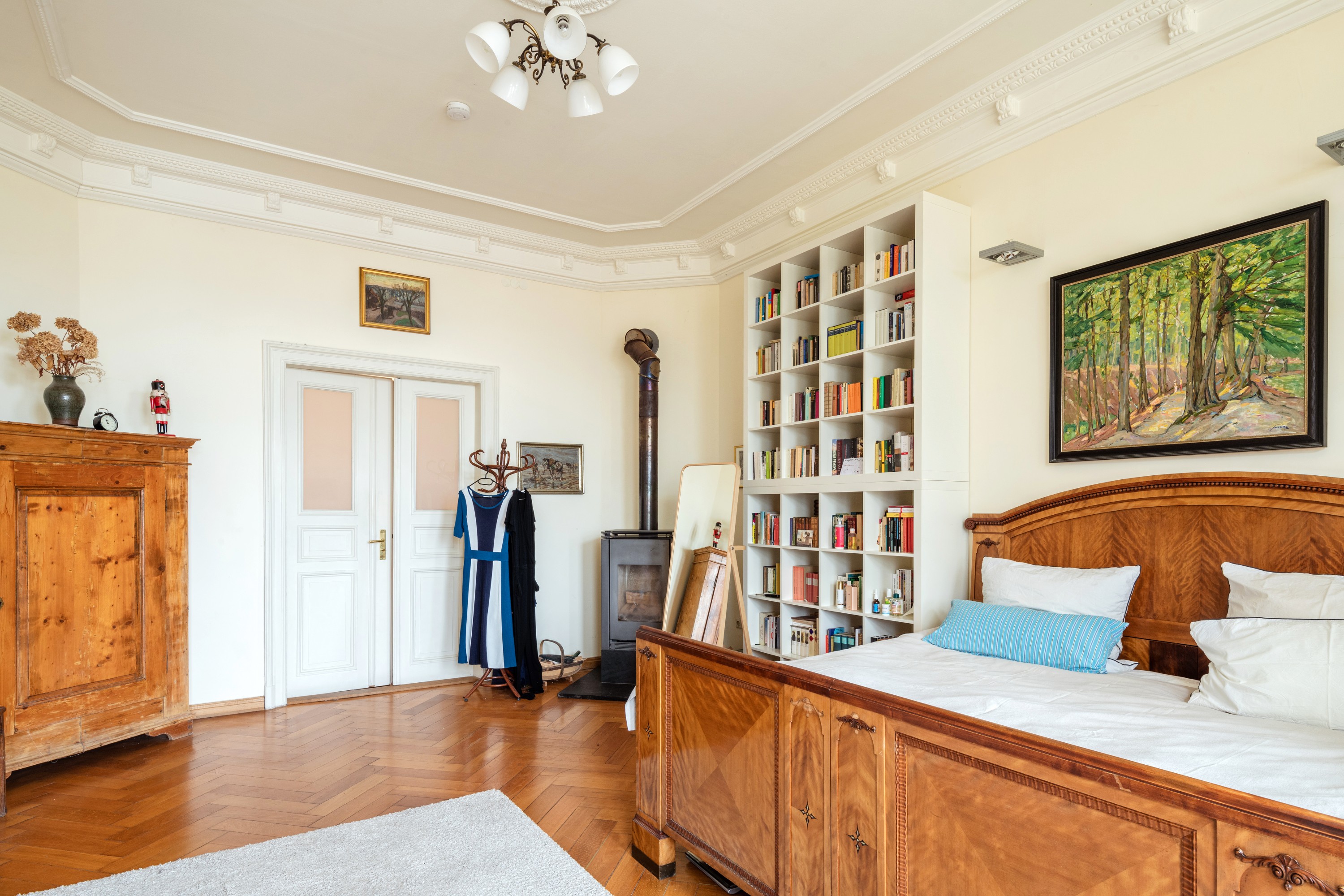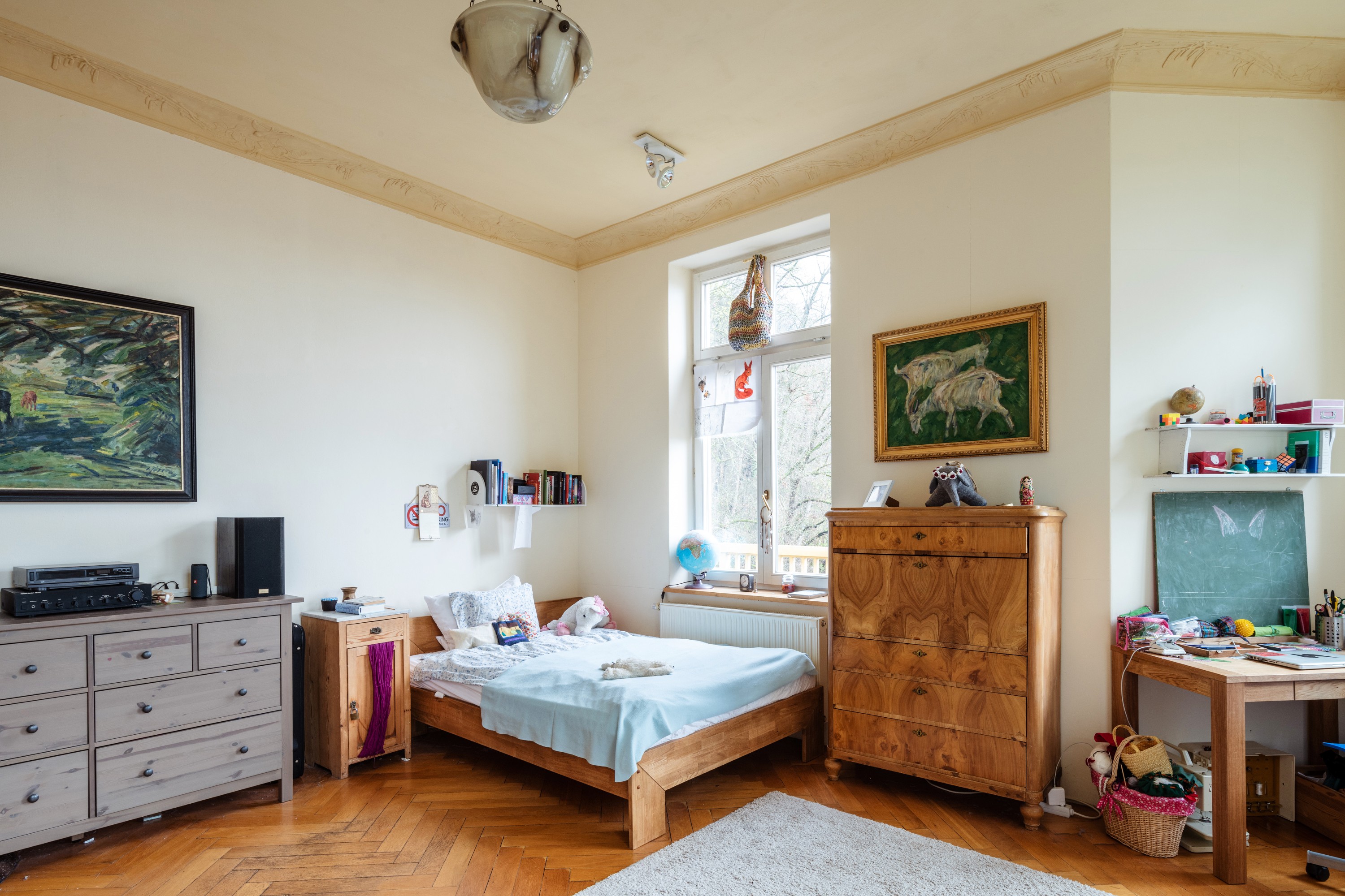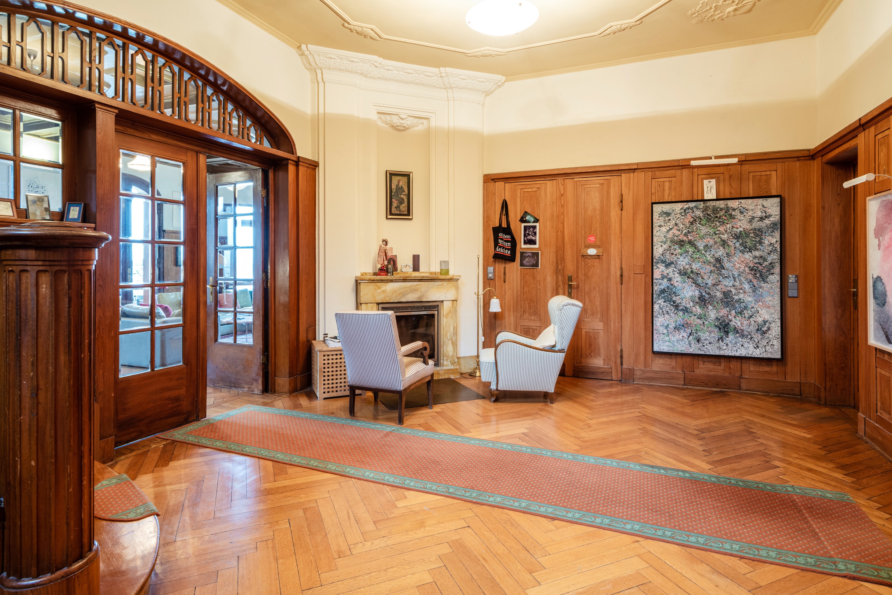 Les principaux salons du rez-de-chaussée sont représentatifs du style des Dresden Werkstätten des années 1910.