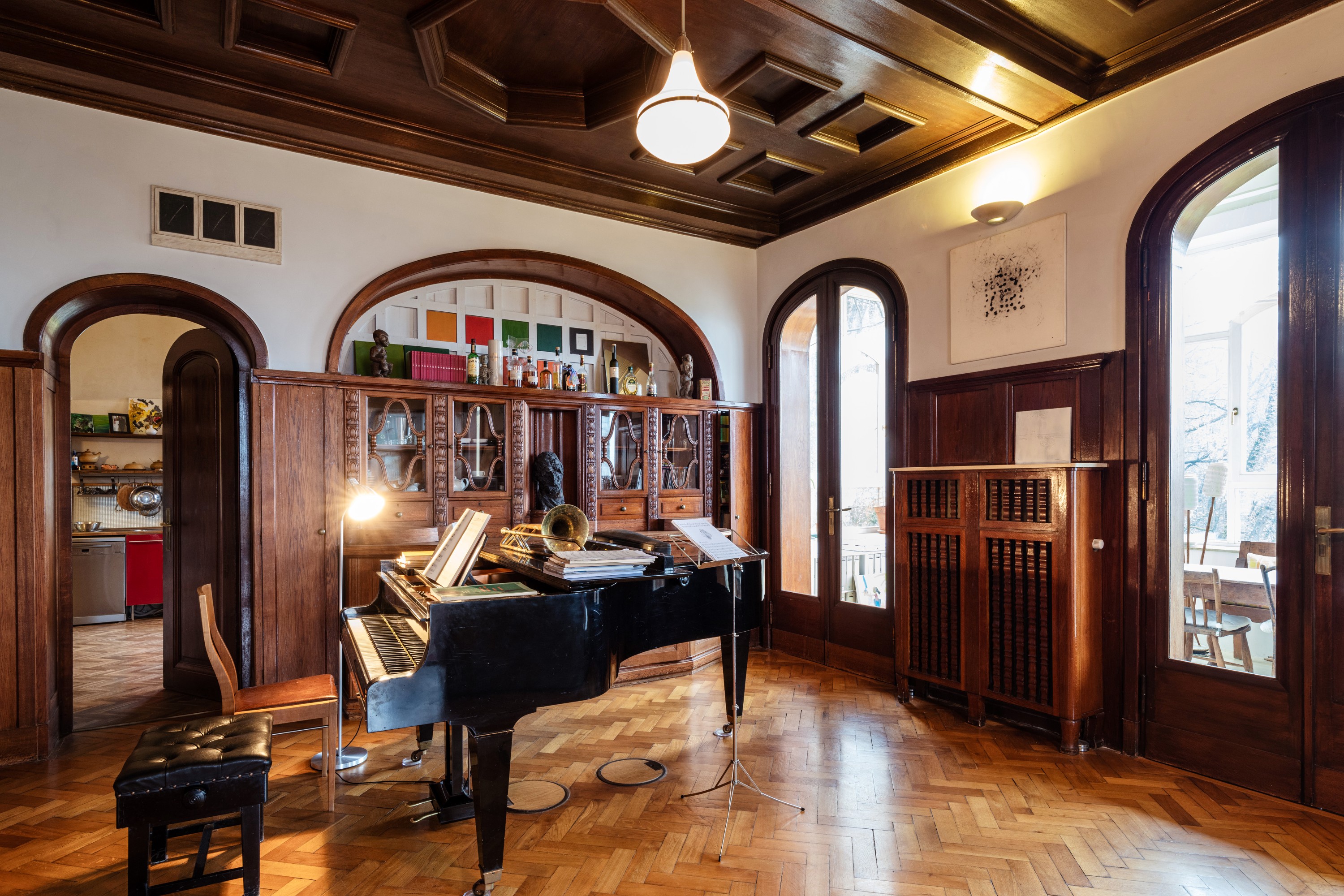 Boiseries, portes en bois massif, stucs et buffets encastrés témoignent du savoir-faire de l'époque.
