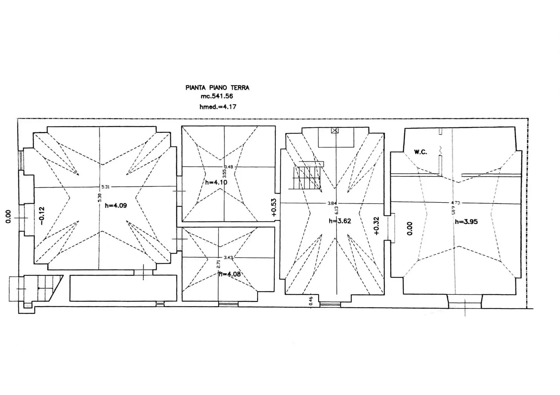 Le rez-de-chaussée se présente avec des caractéristiques typiques de l'époque, avec de grands espaces voûtés et des carreaux de sol d'origine très bien conservés dans trois des cinq pièces. Il comprend :