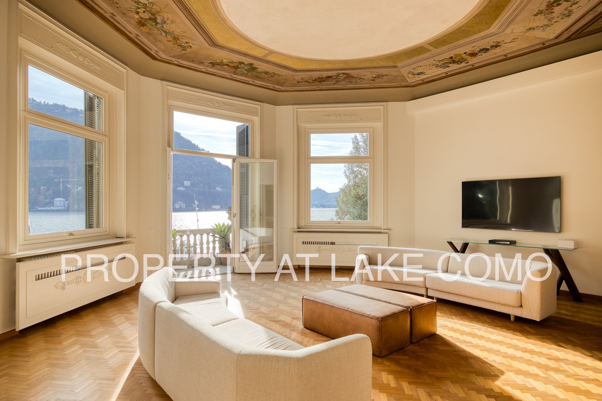 L’appartement proposé comprend un hall d’entrée, un salon avec plafond orné de fresques et cheminée en marbre, un bureau, une salle à manger et une cuisine habitable, ainsi qu’une chambre principale avec salle de bain attenante et dressing, deux autres chambres et deux salles de bain supplémentaires. La surface habitable totale est d’environ 330 m². Les pièces principales donnent accès à des terrasses totalisant plus de 150 m². Toutes les pièces et terrasses offrent une vue sur le lac. Sols en bois et en marbre dans l’ensemble de l’appartement. Espaces de rangement généreux.