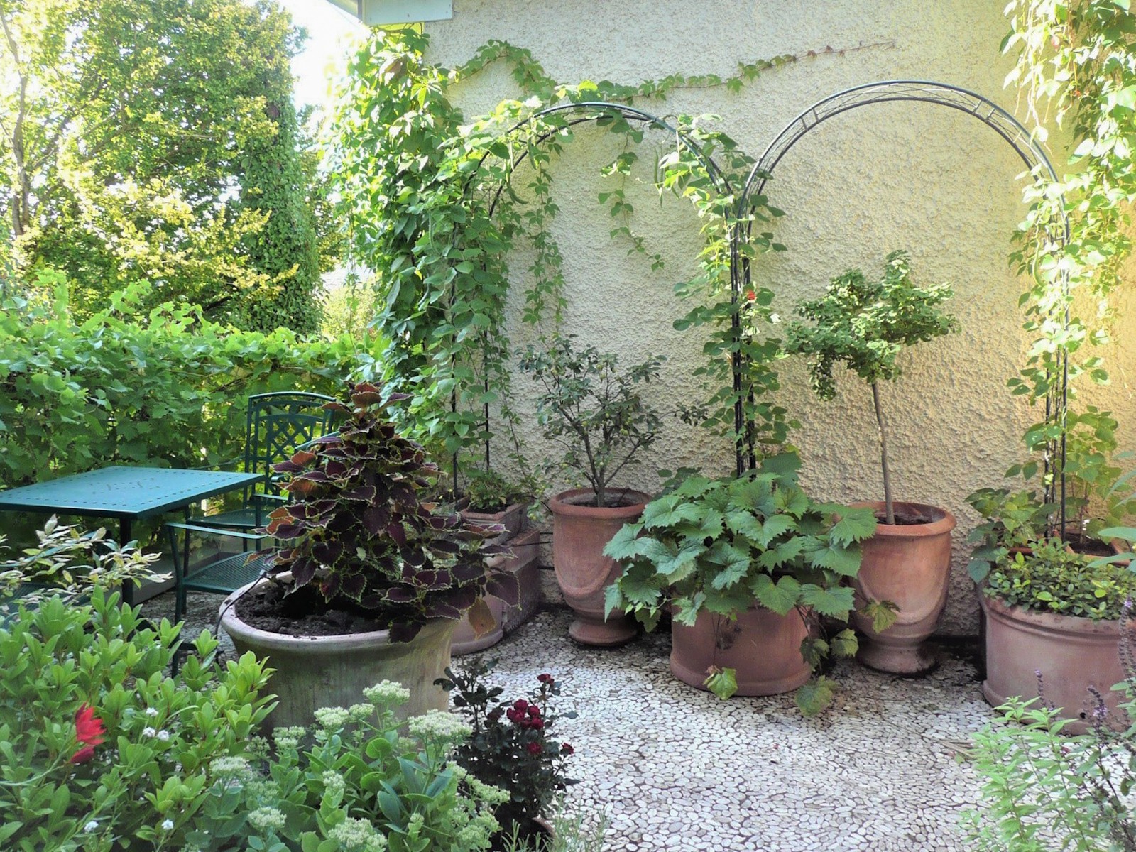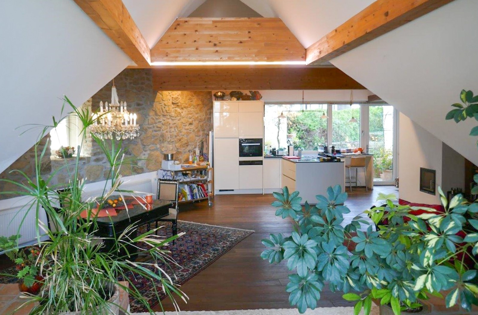 Les extérieurs se déploient sur cinq paliers : un jardin d'accueil, une terrasse méditerranéenne, une terrasse panoramique, un jardin potager traditionnel et un jardin en restanque. Disposer d'une place de stationnement privée au cœur même du Pöstlingberg est un privilège rare.