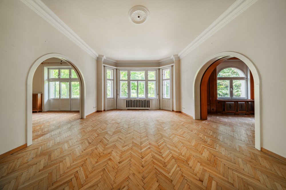 Établie sur un terrain généreux d’environ 1 600 m², la demeure offre environ 1 070 m² de surface habitable, actuellement répartis en quatre unités distinctes. La propriété propose des possibilités d’utilisation flexibles et un confort de vie élevé, une rareté dans un emplacement privilégié.