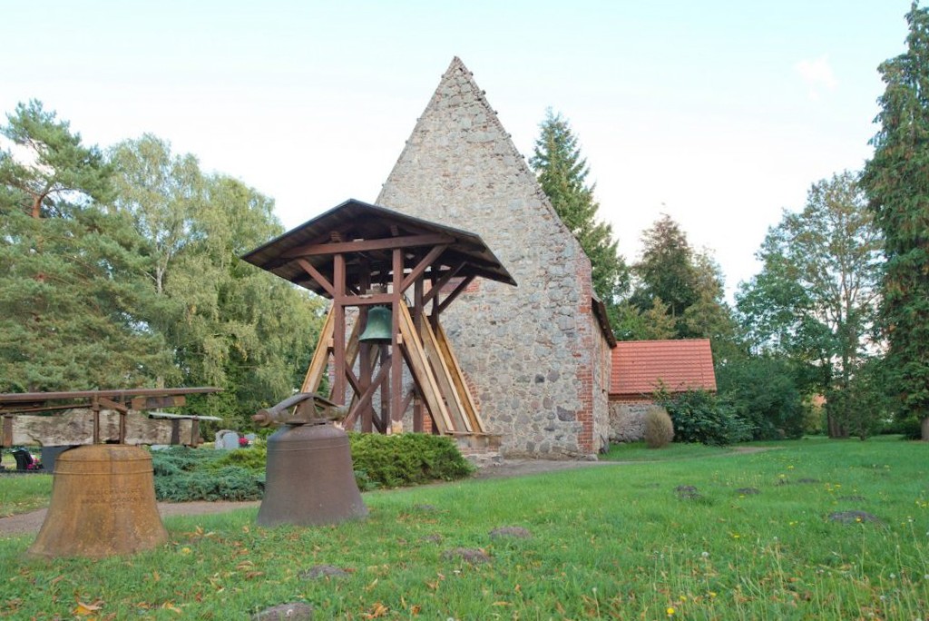 « L’église est un édifice gothique construit en pierres brisées, avec des pignons plats à l’est et à l’ouest. Il n’y a pas de séparation entre le chœur et la nef, et elle ne possède pas de clocher. » – Prof. Schlie : Les monuments d’art et d’histoire du Mecklembourg, 1901