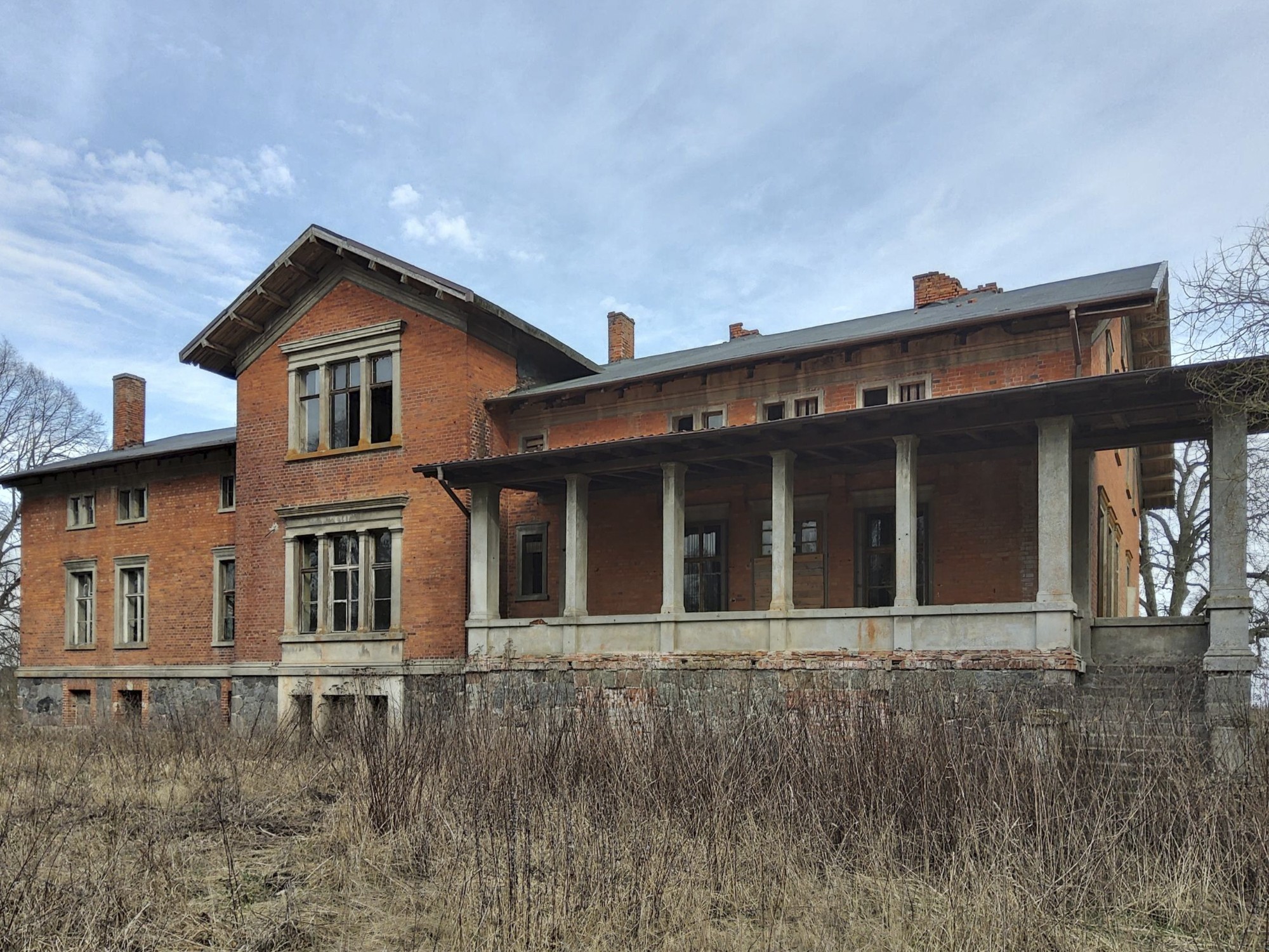 Manoir néoclassique à Bolkowice, construit vers le tournant du siècle en brique sur un soubassement de pierres des champs. Le bâtiment d’un étage, coiffé d’un toit à deux versants, présente un avant-corps saillant avec portique ornemental sur la façade principale ainsi qu’une spacieuse terrasse à colonnes avec escalier extérieur côté parc. La surface utile se répartit sur trois niveaux : sous-sol 422 m², rez-de-chaussée 463 m², étage 455 m² – soit environ 1 340 m² au total. Classé monument historique depuis 1994 (n° A-1270).