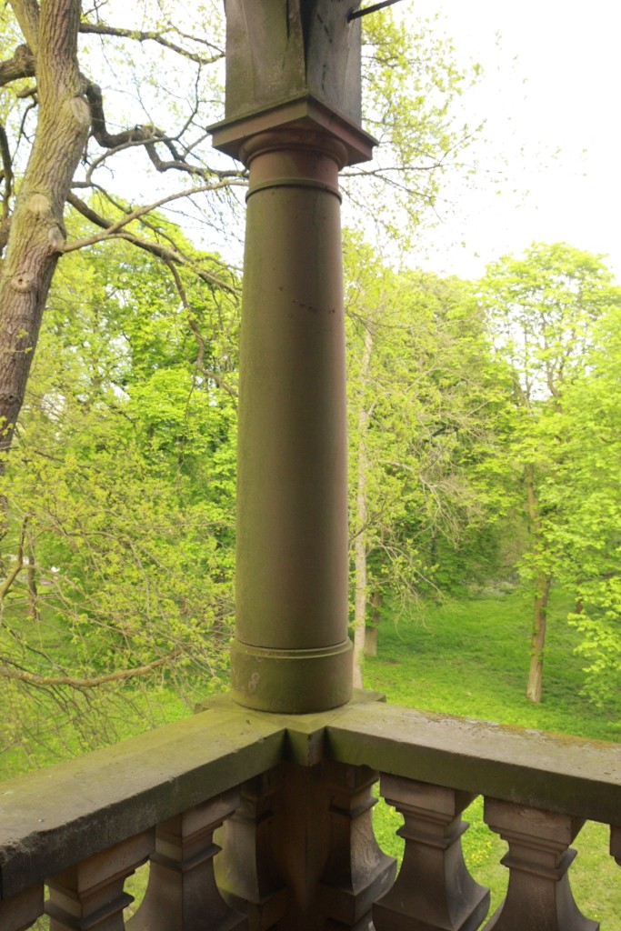 Le complexe du château et du parc, classé monument historique, a été aménagé au début du 19e siècle. Dans le parc, on trouve les espèces d'arbres suivantes : chêne, frêne, tilleul, châtaignier, érable, aulne, saule. La répartition des arbres dans le parc est irrégulière. Certains arbres ont un caractère monumental.