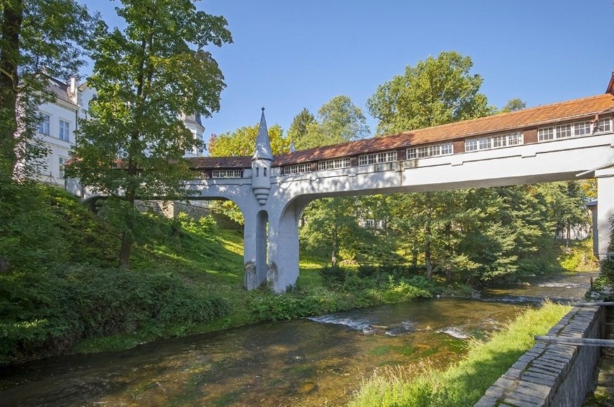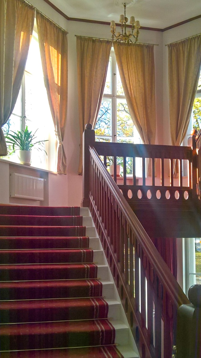 L’un de ses éléments les plus remarquables est son pont couvert traversant la rivière et faisant partie intégrante du domaine, une structure architecturale unique en Pologne. Actuellement utilisée à des fins privées, la demeure a également été ouverte au public par le passé.
