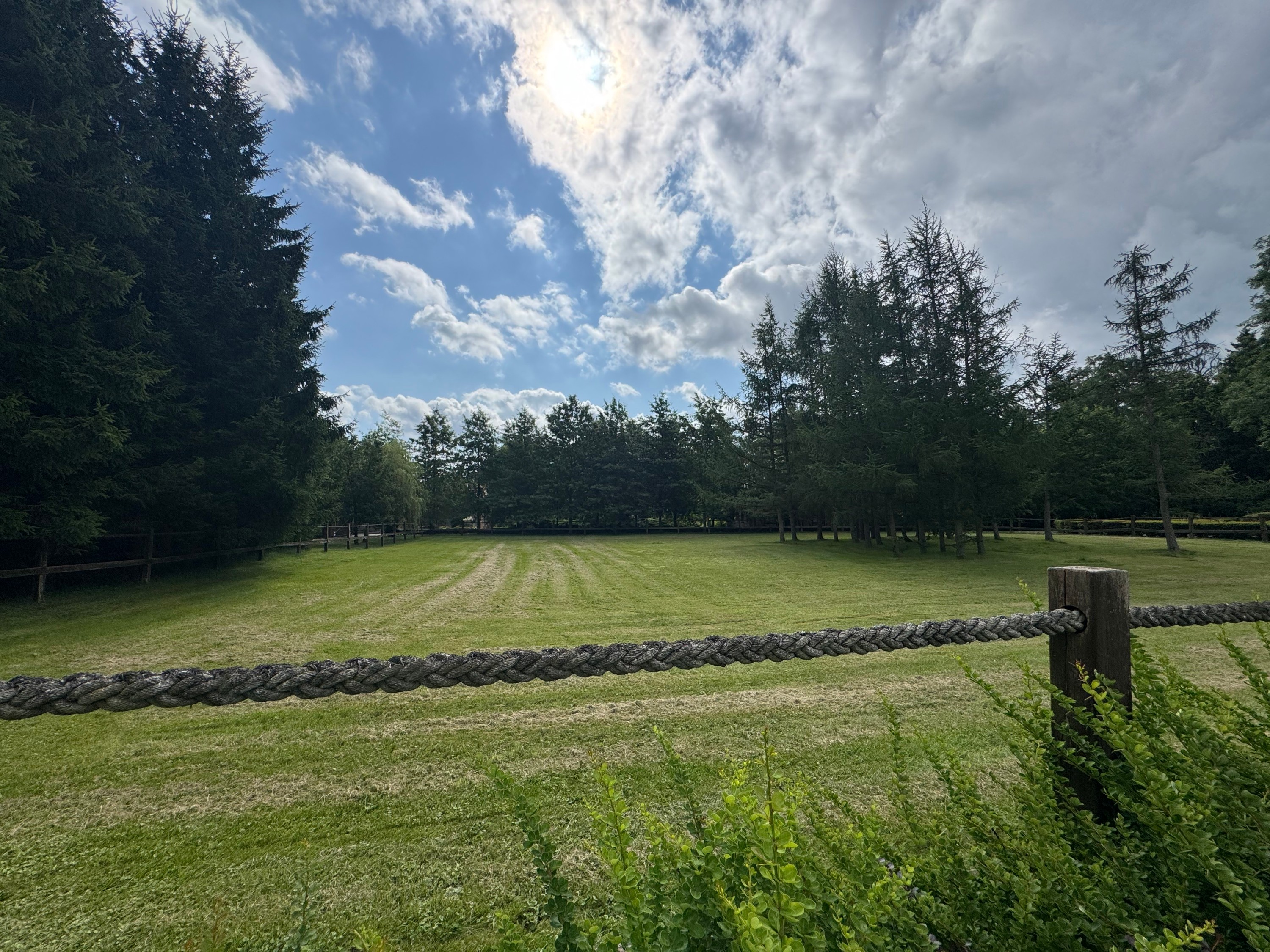 Le terrain combine collines douces, pâturages, forêts denses et une rivière apportant des ressources naturelles importantes. L’infrastructure comprend trois maisons rénovées, une installation moderne d’élevage de 2 000 m², un court de tennis et une centrale électrique privée.