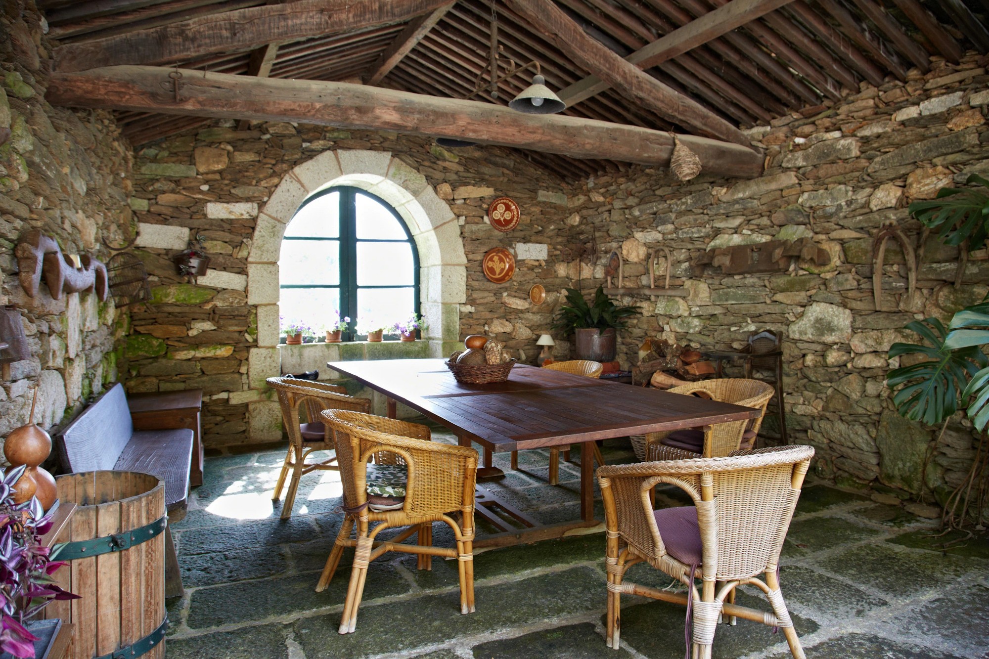 À l’extérieur, en dehors de la piscine récemment construite, les éléments d’origine de la propriété témoignent d’un passé d’usage communautaire :