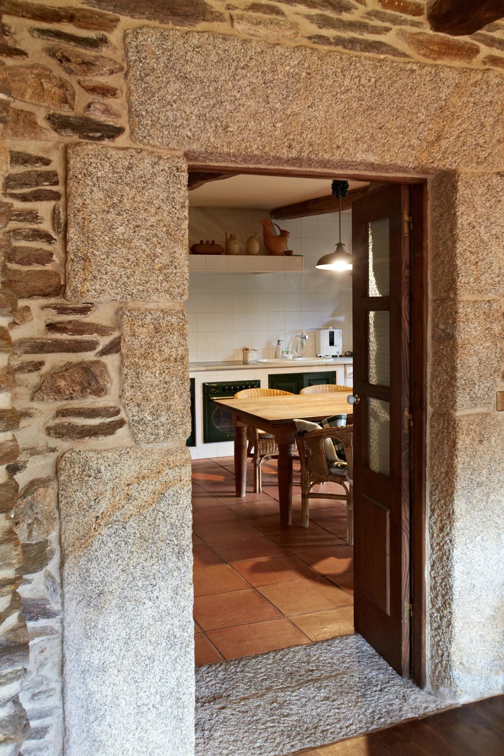 Située dans le petit village rural de Borreiros, à seulement dix minutes en voiture de l’océan Atlantique, cette ancienne maison presbytérale, construite en 1898 et soigneusement restaurée dans les années 1990, a conservé son authenticité, son caractère et sa signature architecturale claire. La maçonnerie est d’origine, les boiseries largement préservées, et le plan fonctionnel, sans modifications inutiles.