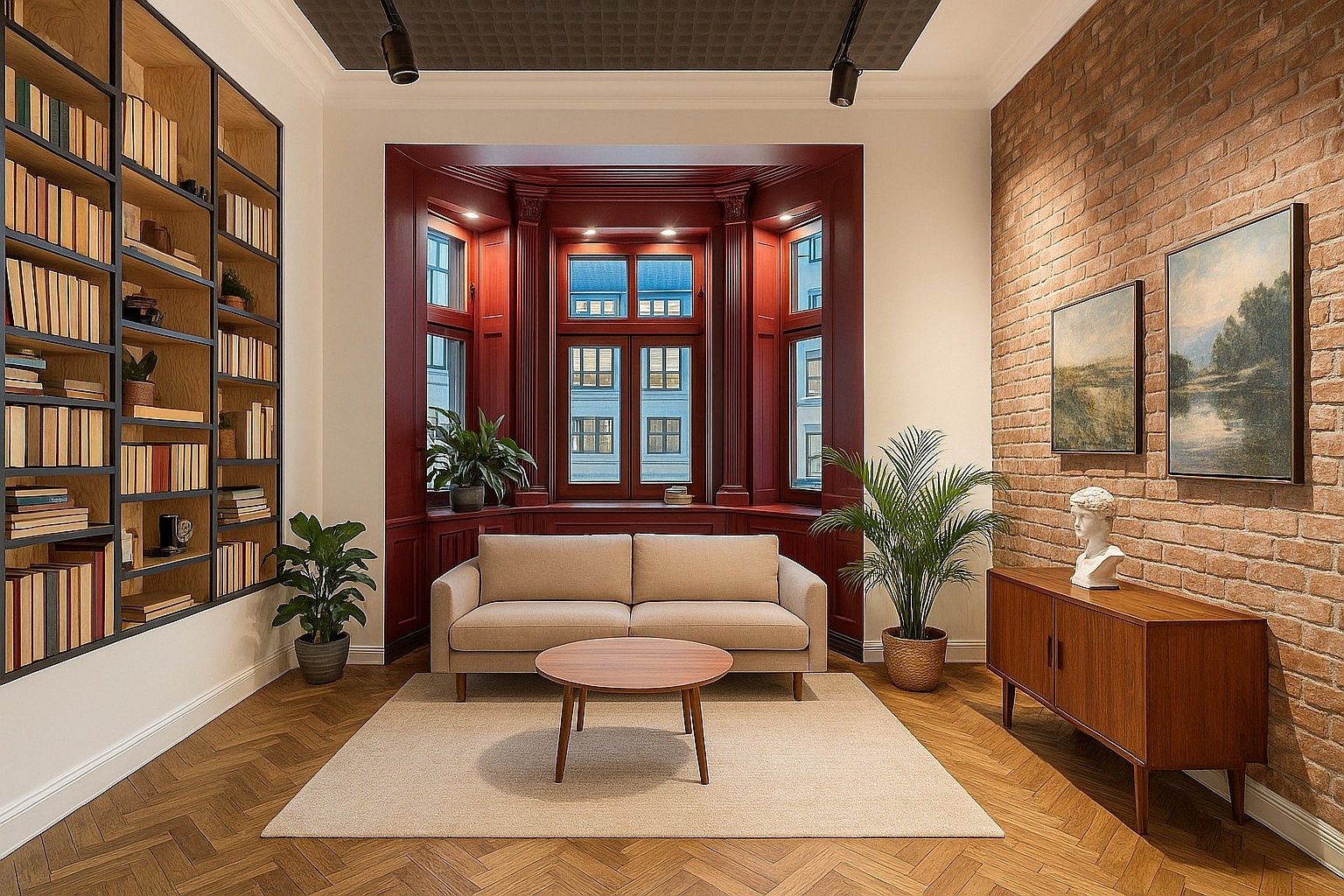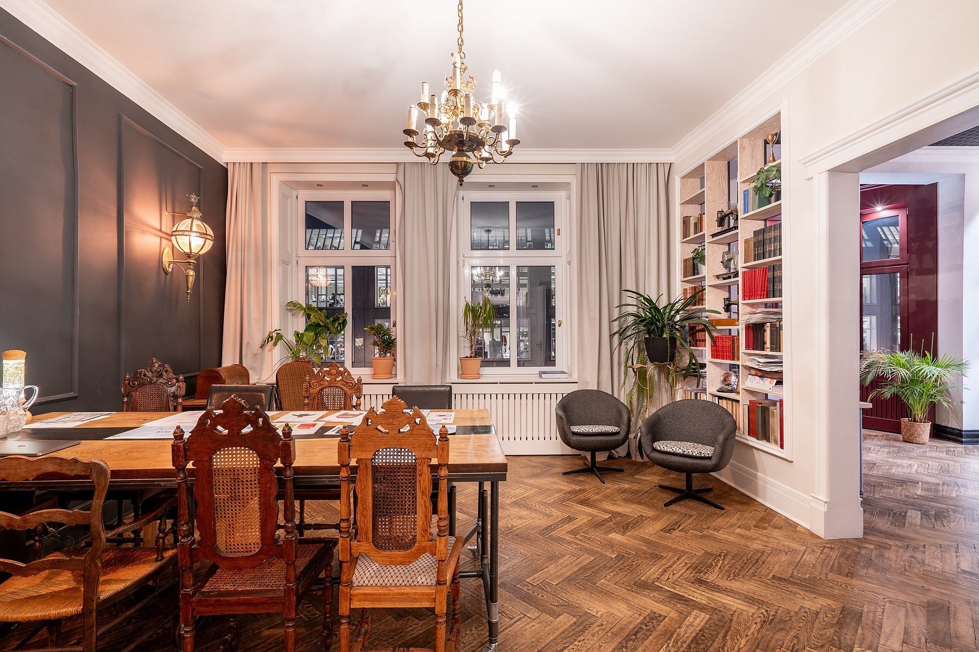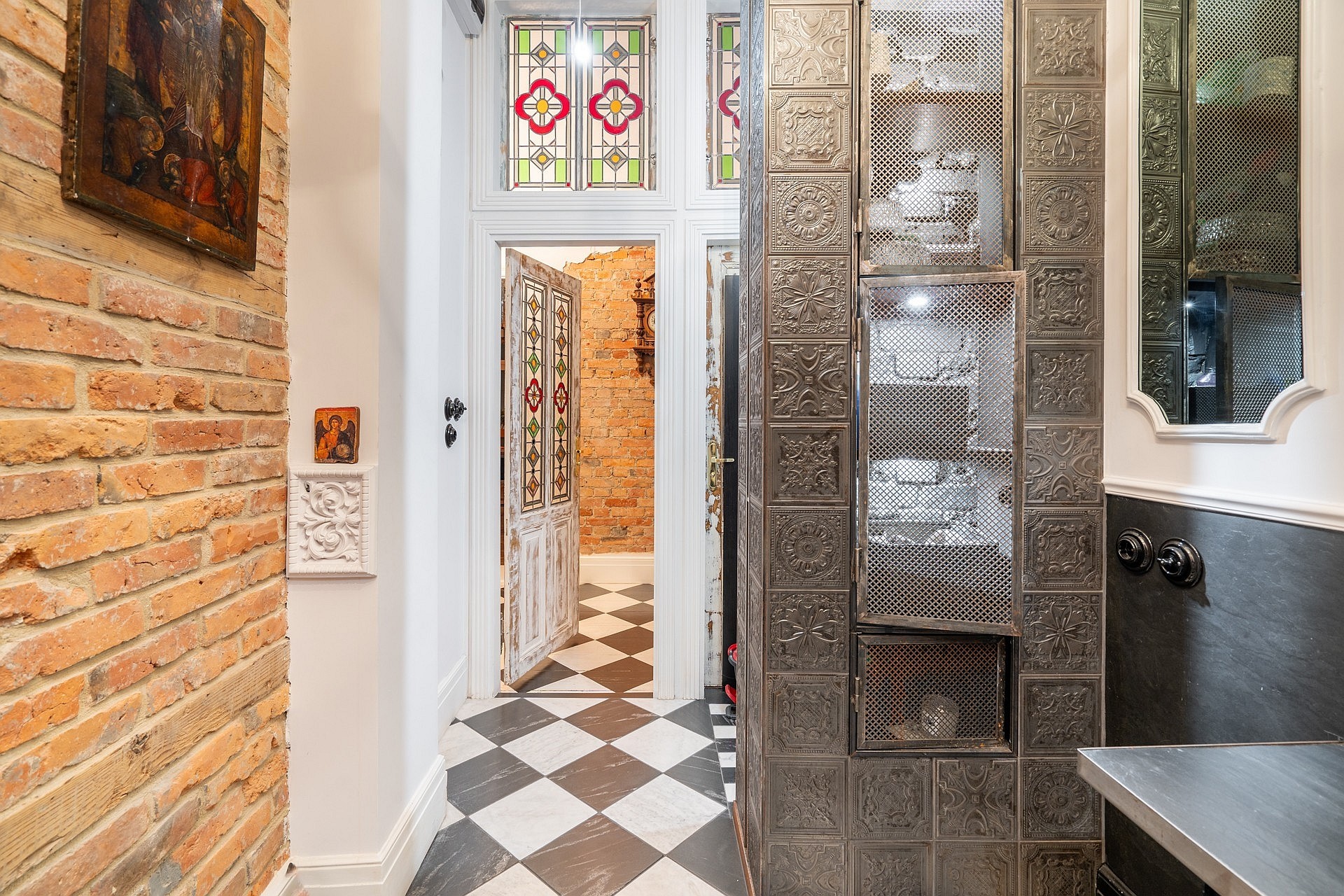 Le logement comprend quatre pièces, une cuisine indépendante, une salle de bain avec douche et WC, un hall d’entrée et un balcon. Deux pièces donnent sur la rue Łąkowa et bénéficient d’une bonne luminosité ; la cuisine et le balcon sont orientés sur la façade opposée. Les pièces présentent des détails architecturaux remarquables : bow-windows avec alcôves, cuisine de style loft et interrupteurs d’origine. Actuellement utilisé comme showroom, l’appartement peut être aménagé et meublé selon les souhaits du futur propriétaire.