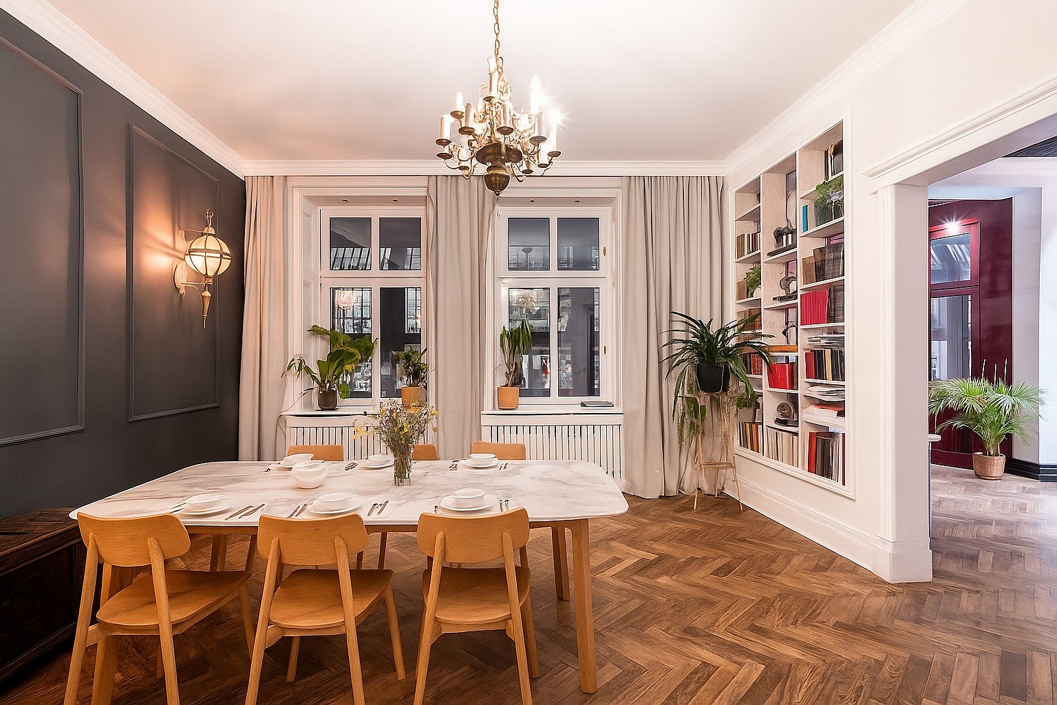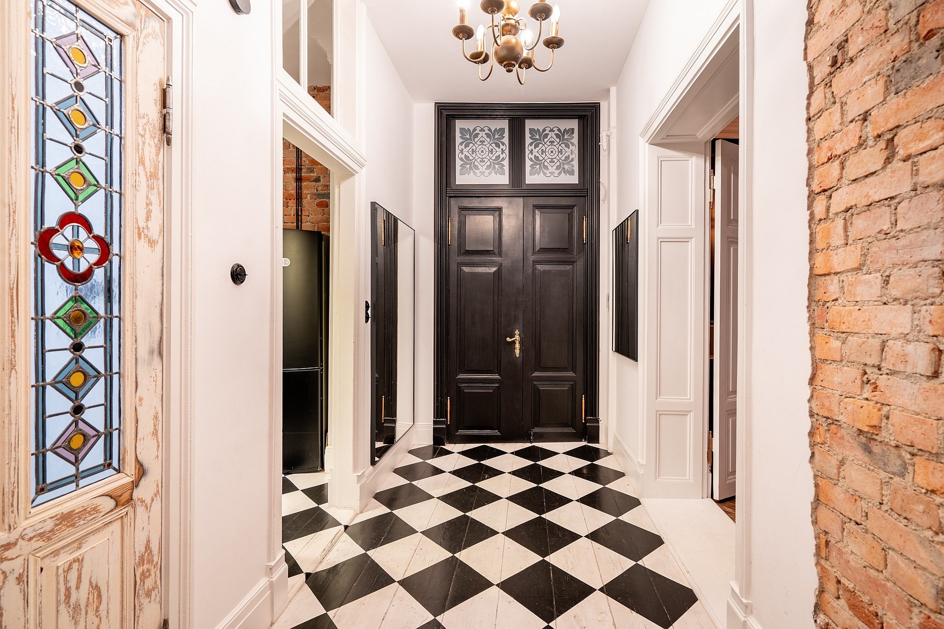 Appartement de 4 pièces au premier étage d’un immeuble historique situé rue Łąkowa, à Gdansk. Hauteur sous plafond : 3,25 m.