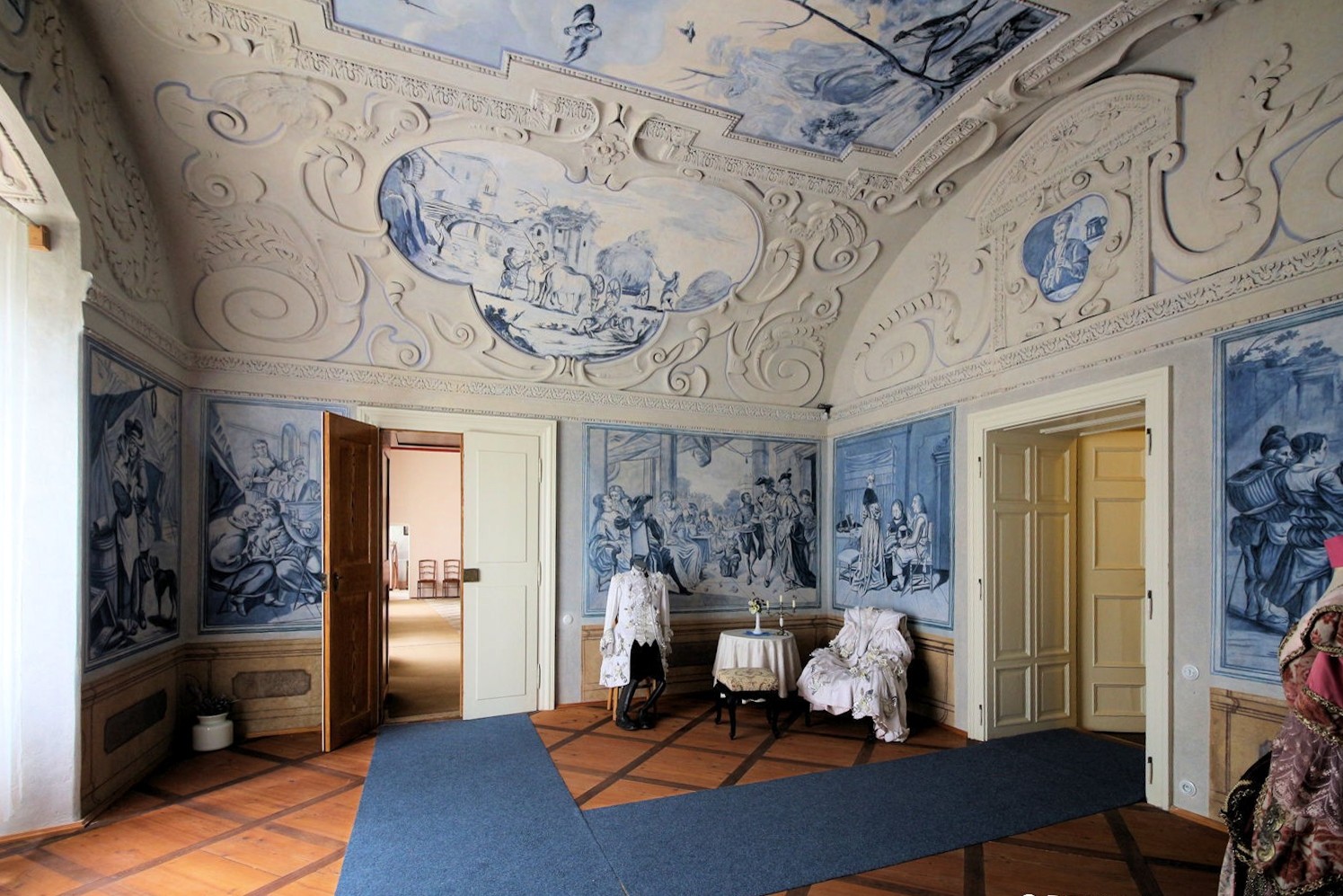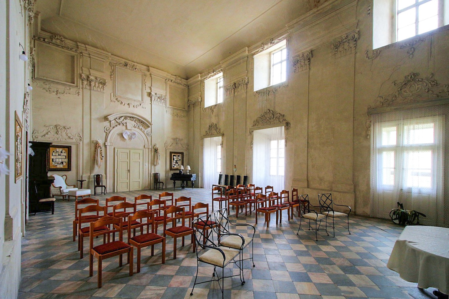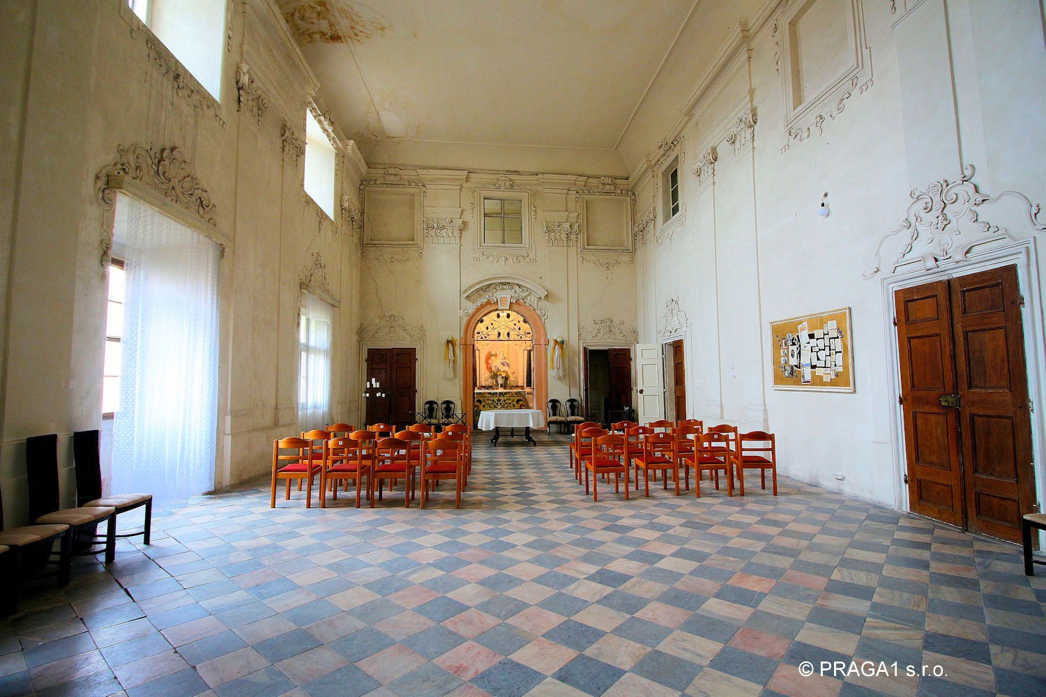 Hall d'entrée Cheminée Poêle de masse Salle de bal Fresques Décoration en stuc Plafonds voûtés Chapelle