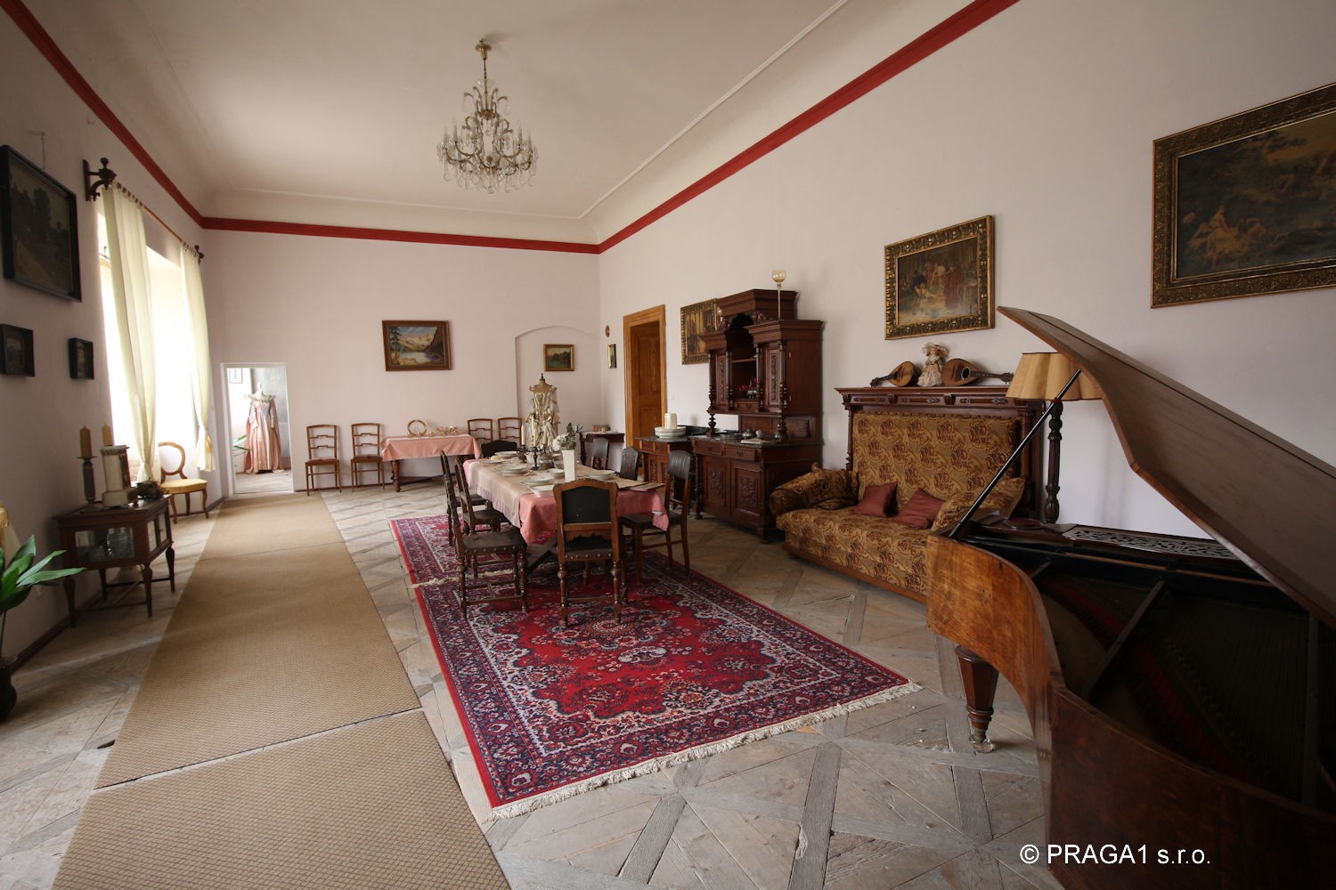Le château possède un mobilier intérieur original de valeur et de nombreuses pièces intéressantes, dont une grande salle de banquet et une chapelle de château. Il y a un café au premier étage. La façade du côté du parc a été récemment rénovée. L'un des bâtiments de la ferme était autrefois une écurie avec de beaux piliers. Le domaine historique est relié au réseau d'eau public et dispose également de quatre puits d'eau.