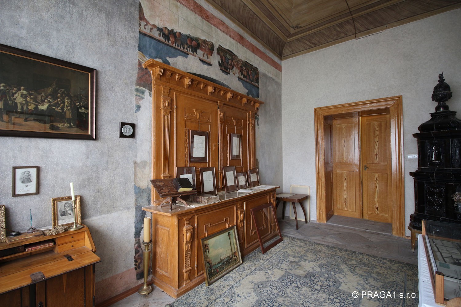 Château près de la capitale tchèque avec des bâtiments supplémentaires à vendre. Il est situé à 35 kilomètres de Mlada Boleslav et à environ 59 kilomètres de la station de métro la plus proche de Prague. La superficie totale de la propriété est de 24 000 m².
