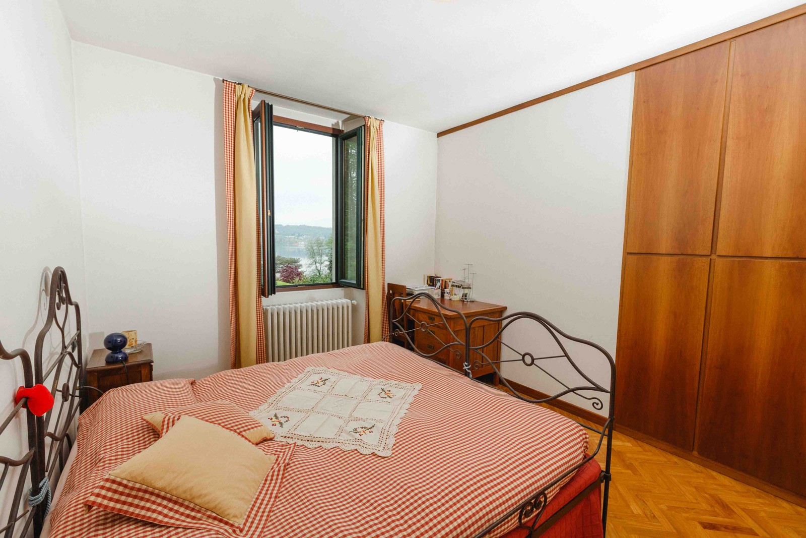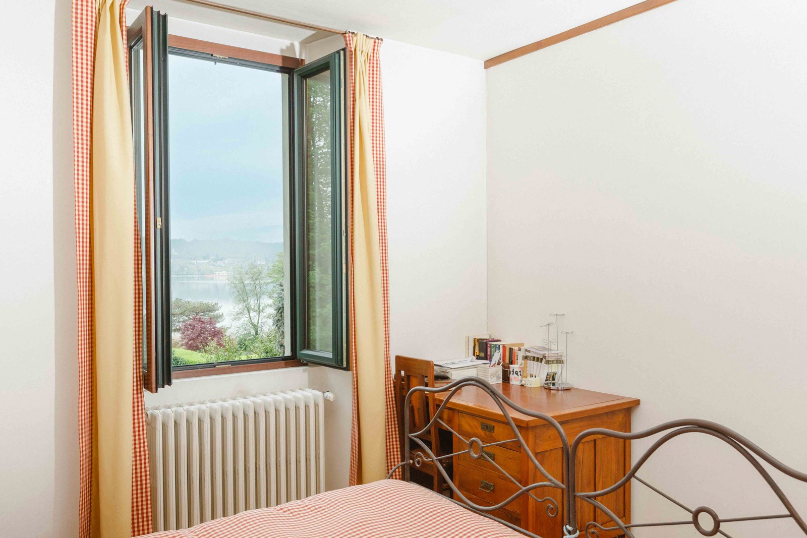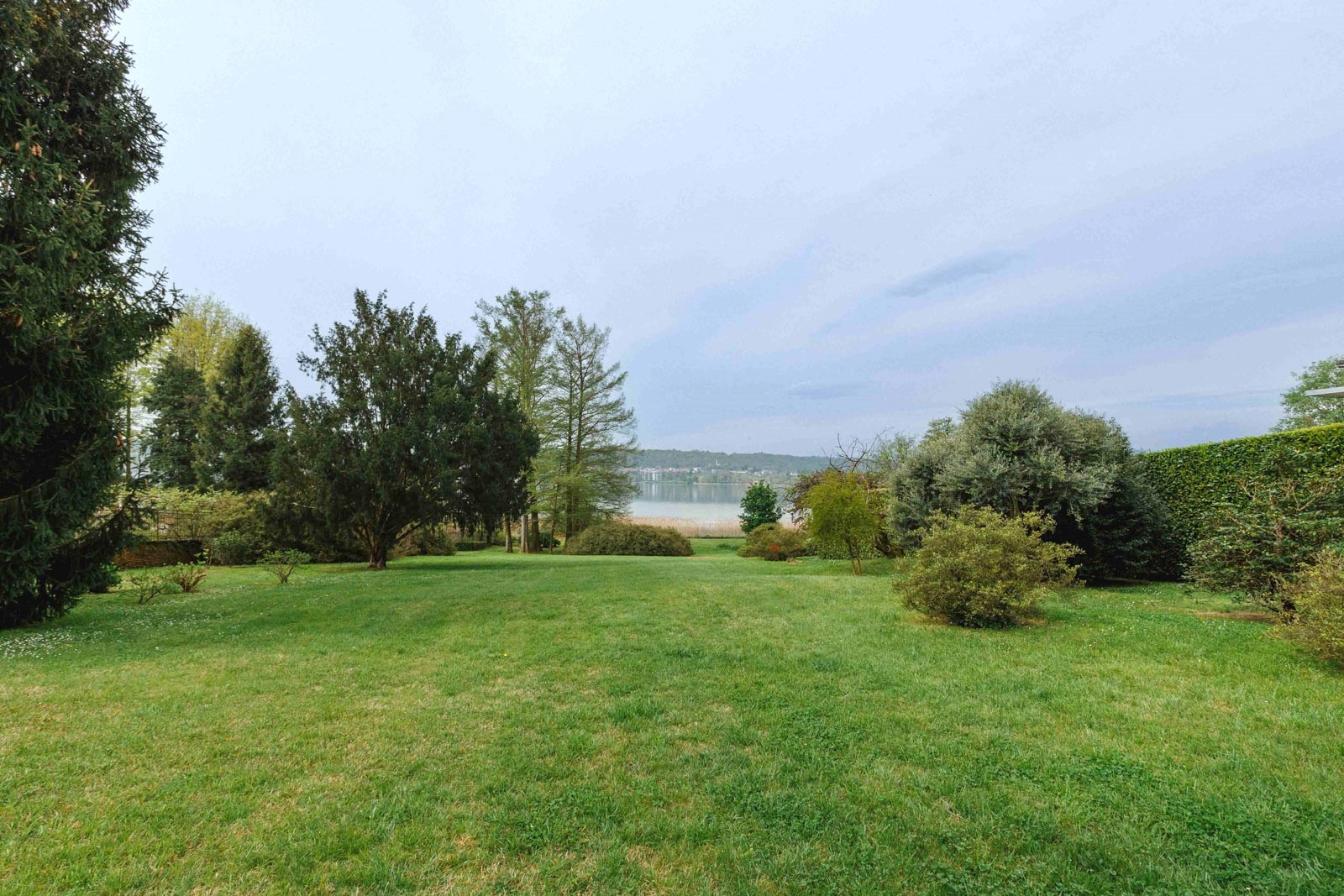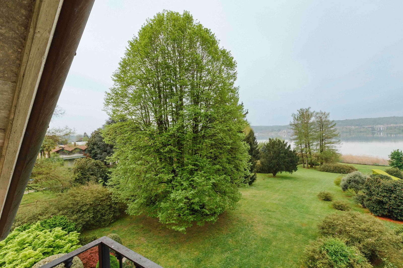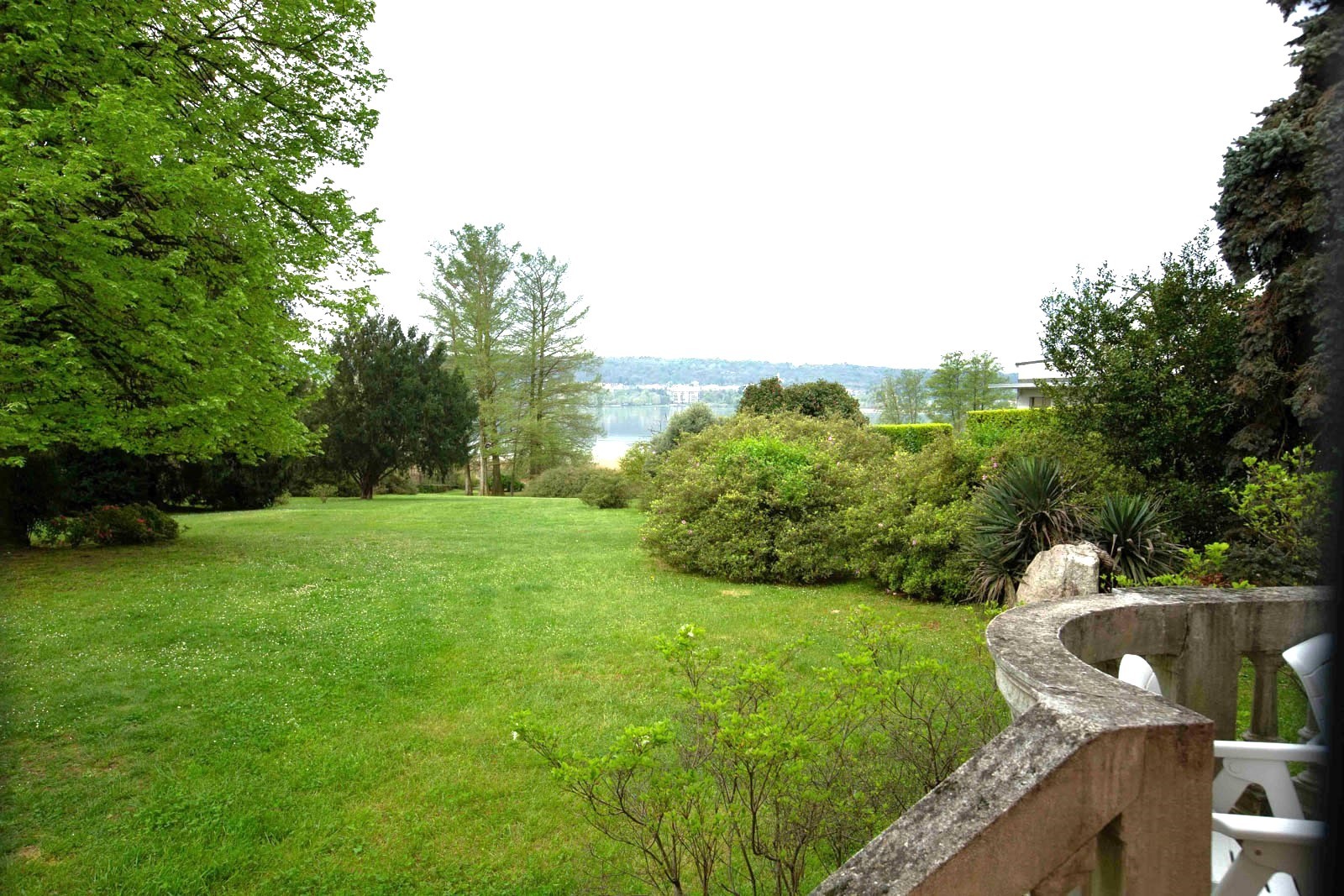 Au rez-de-chaussée, le vaste salon s'ouvre sur un jardin panoramique avec vue sur le lac, enrichi par des arbres centenaires, créant une oasis de tranquillité et de sérénité. À ce niveau, vous trouverez également une cuisine entièrement équipée et une salle de bains.