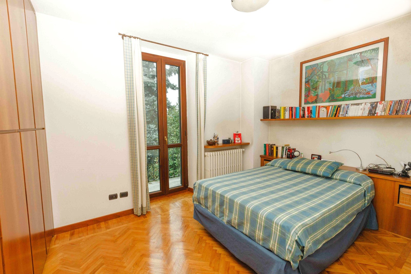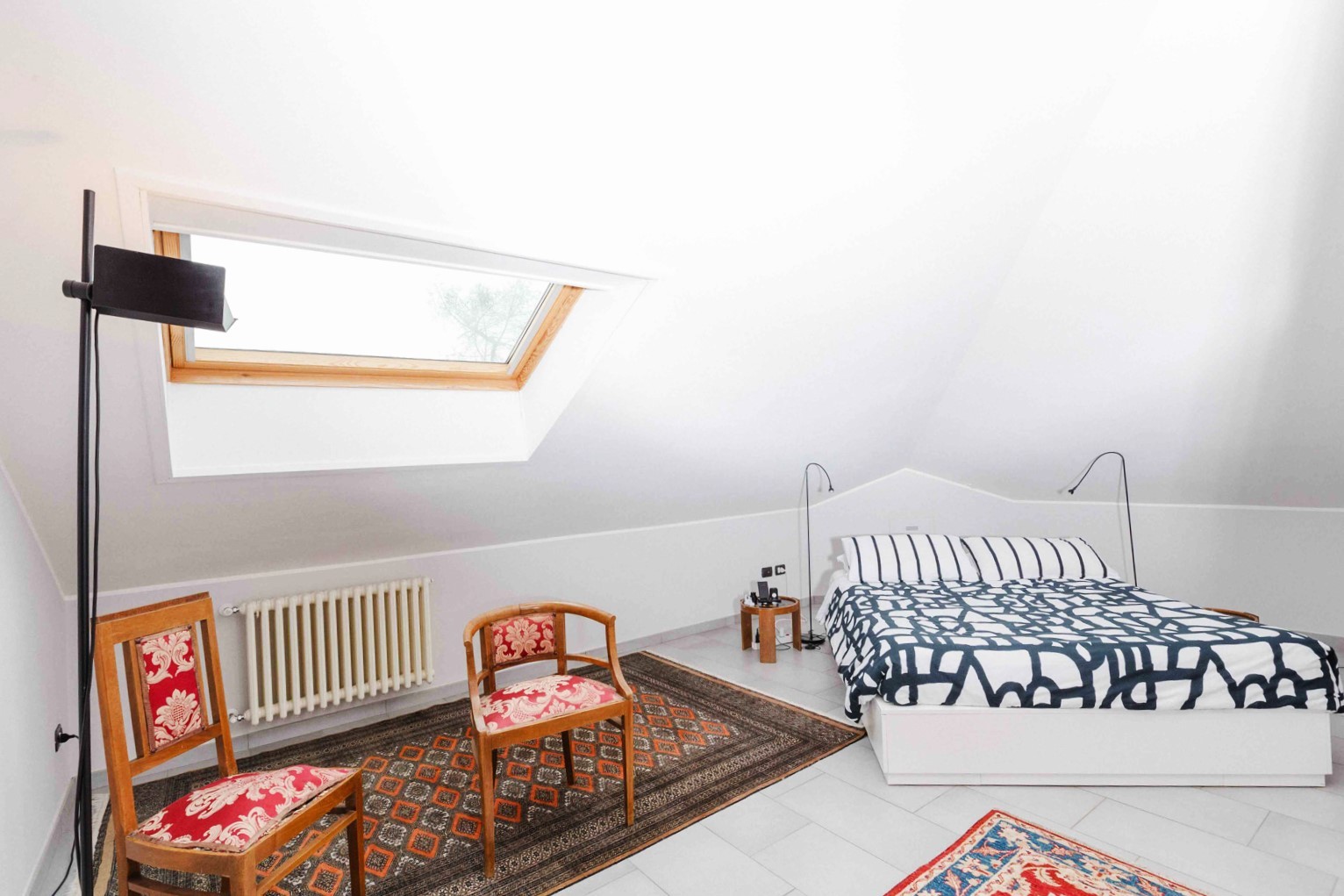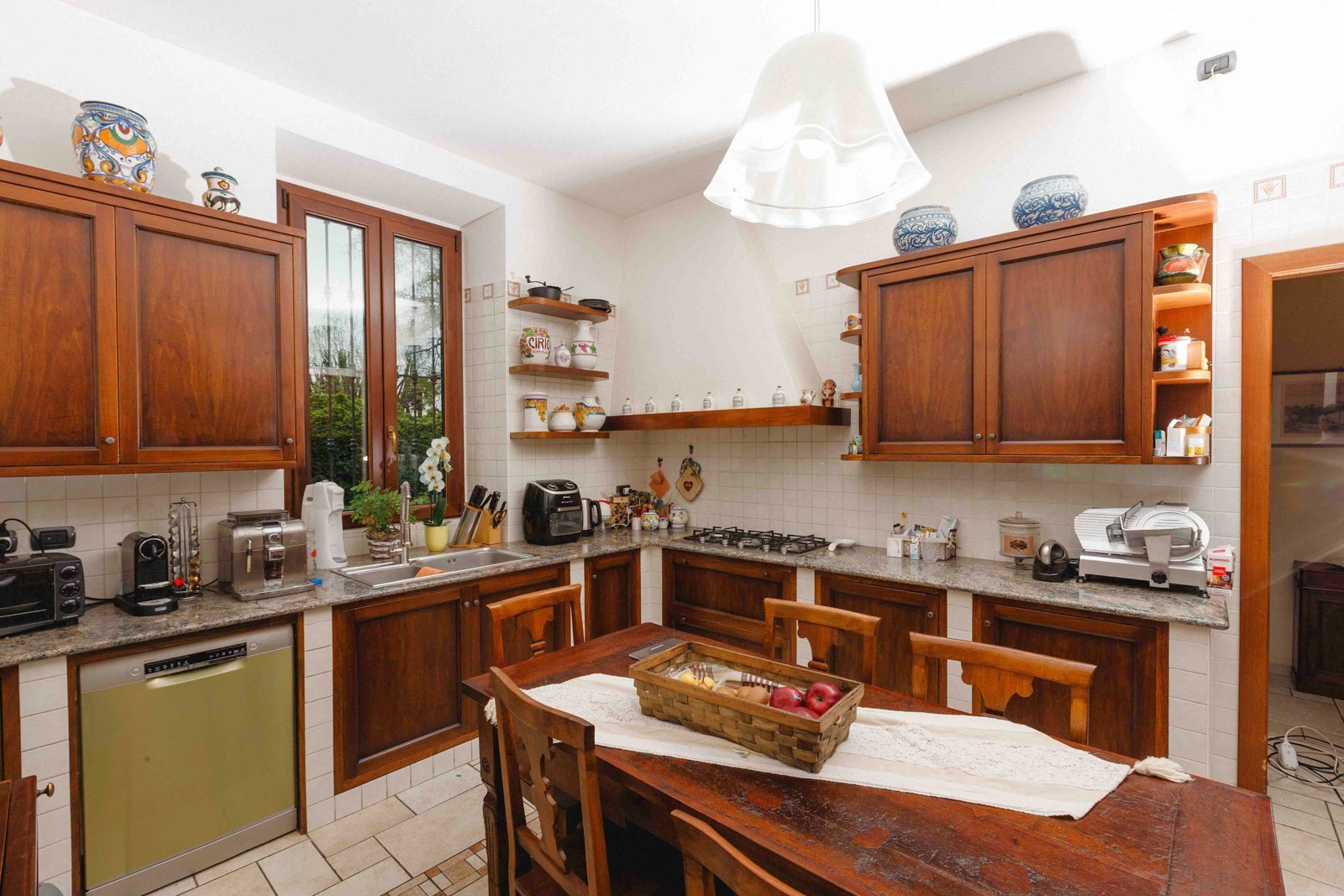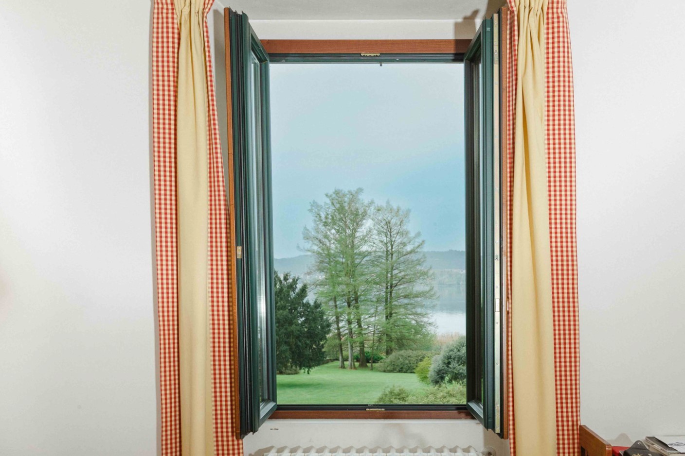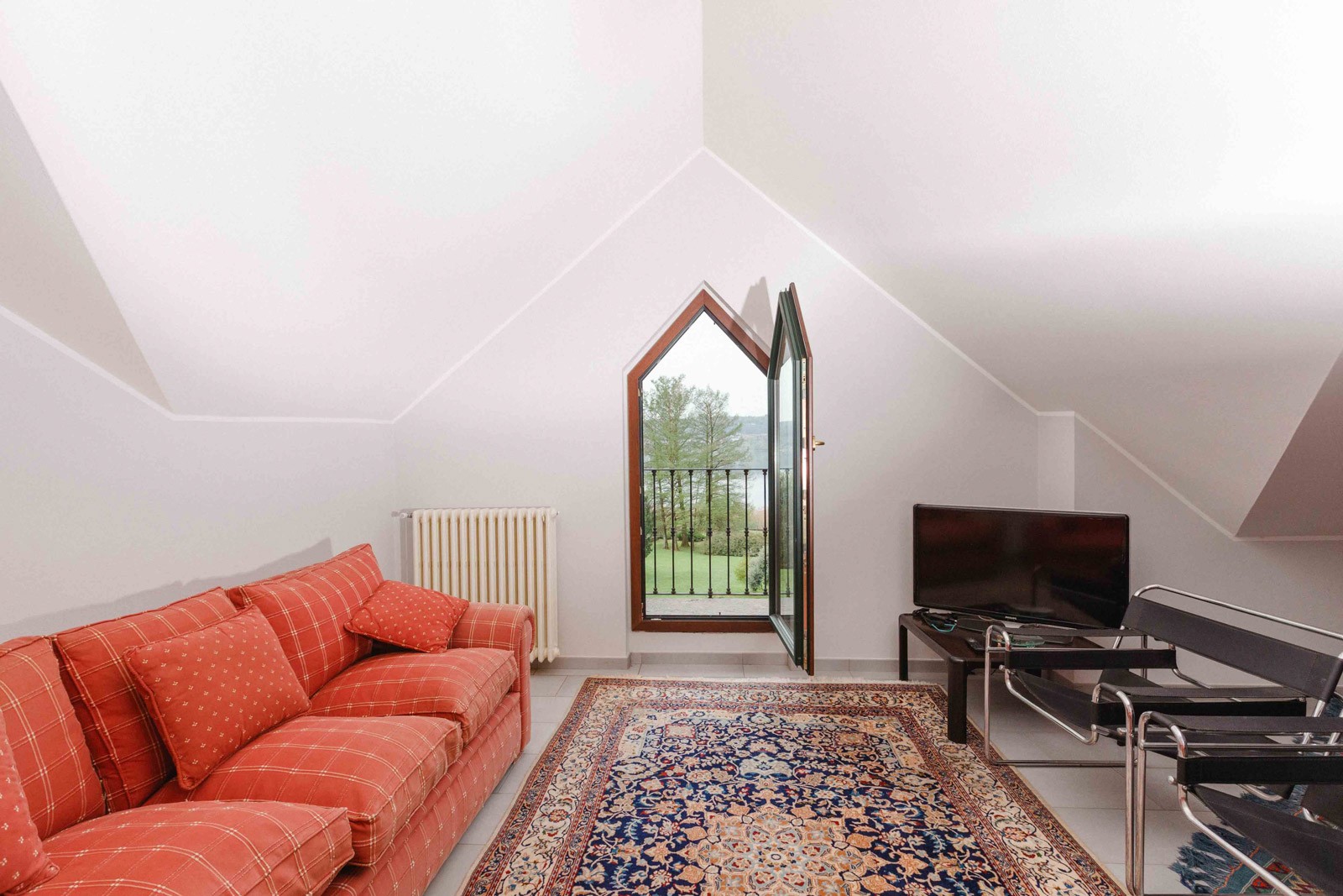 Au rez-de-chaussée, le vaste salon s'ouvre sur un jardin panoramique avec vue sur le lac, enrichi par des arbres centenaires, créant une oasis de tranquillité et de sérénité. À ce niveau, vous trouverez également une cuisine entièrement équipée et une salle de bains.