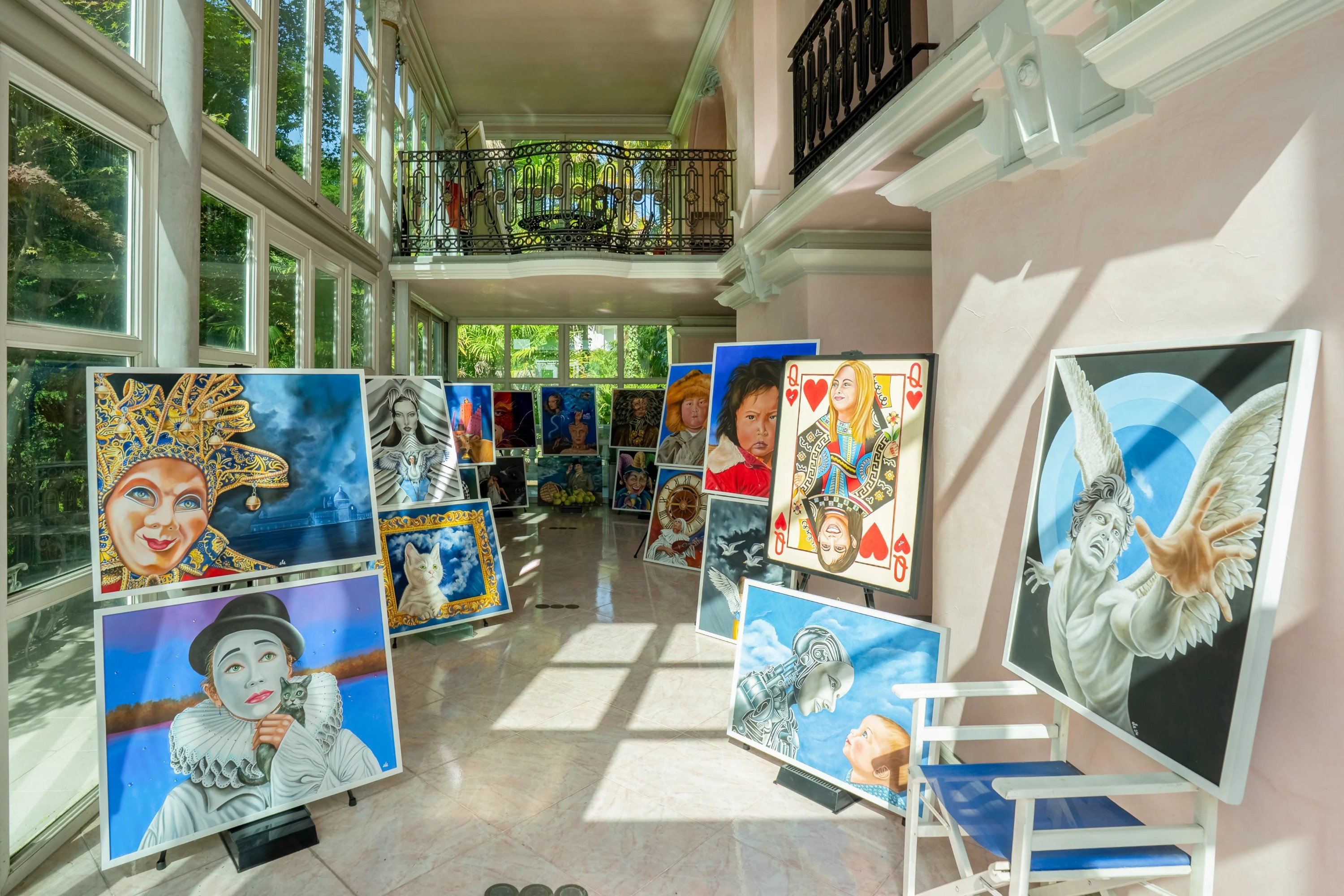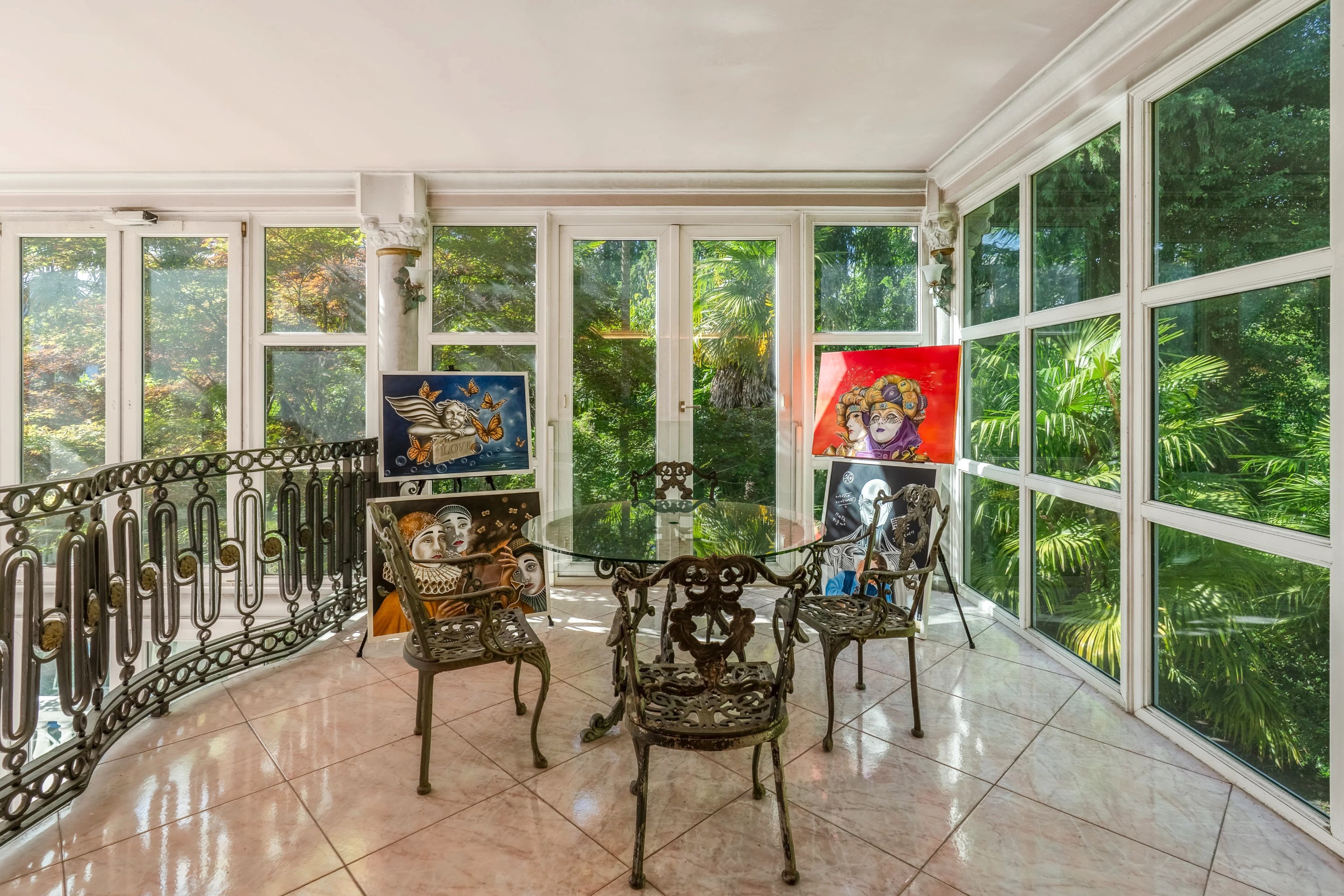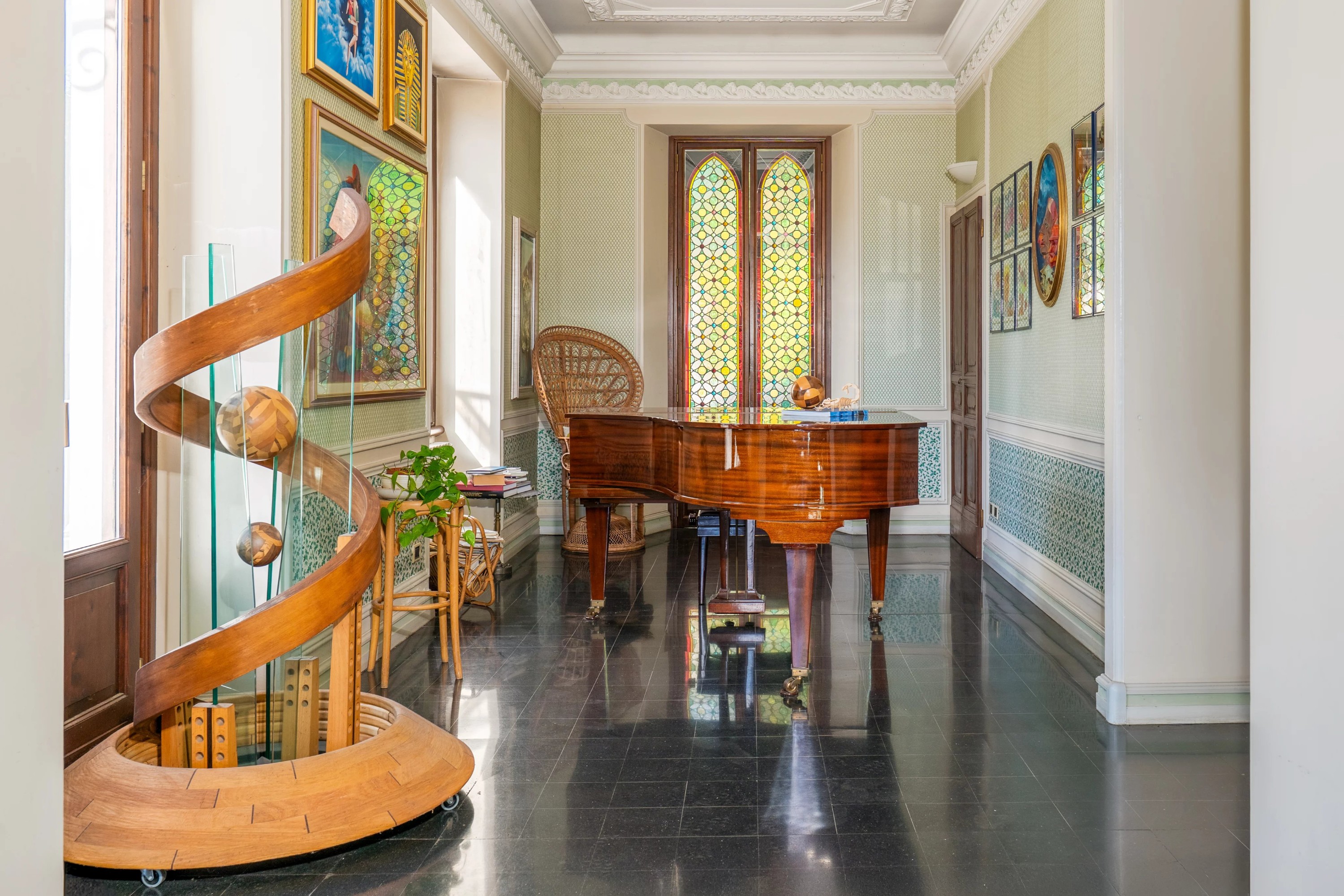 La demeure s’élève sur quatre niveaux, desservis par un ascenseur et un majestueux escalier baigné de lumière naturelle grâce à une vaste verrière.