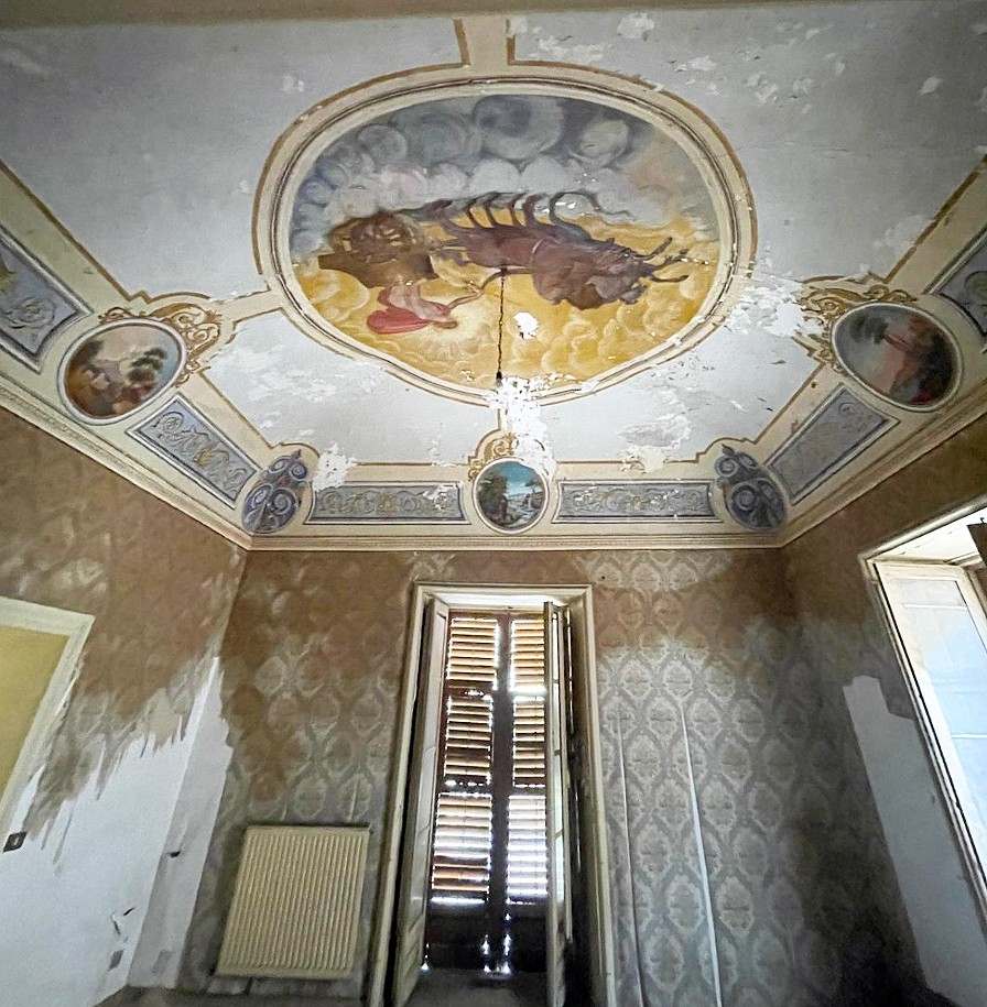 - Piano nobile (étage principal) : 300 m² avec grands salons, plafonds élevés et stucs