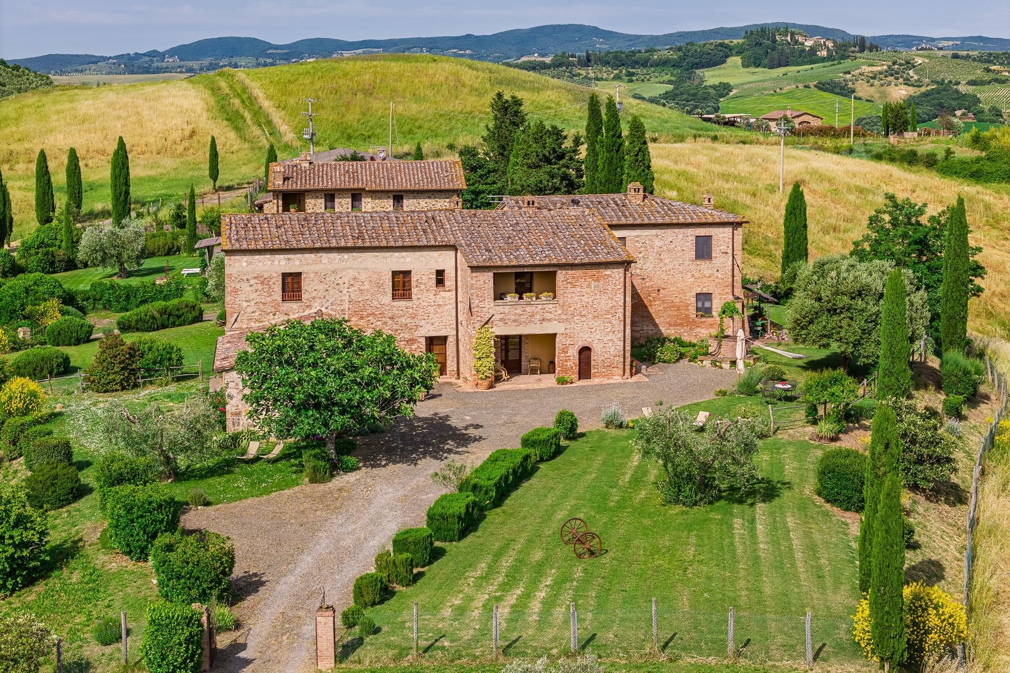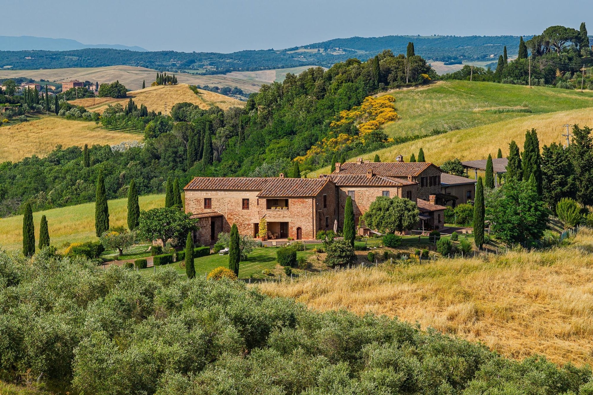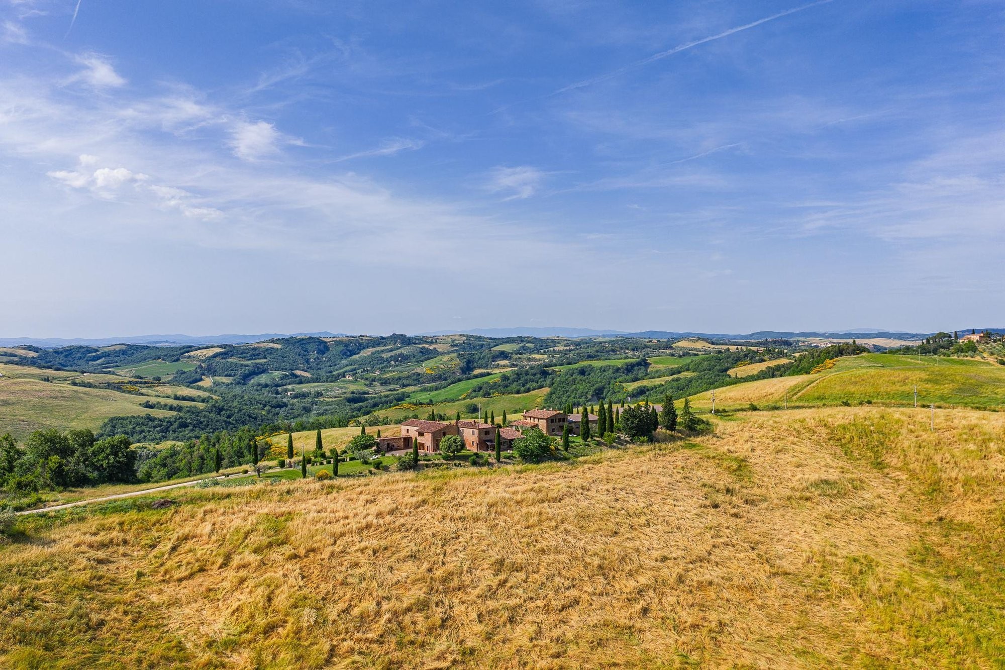 Entre les rangées de vignes du Brunello et les collines d’oliviers et de cyprès, cette propriété de 40 hectares se déploie sur un promontoire naturel dominant le Val d'Orcia. Depuis la maison principale, le regard porte sur les tours médiévales de Sienne, l’abbaye de Sant’Anna in Camprena et, par temps clair, sur les clochers gothiques de Pienza.