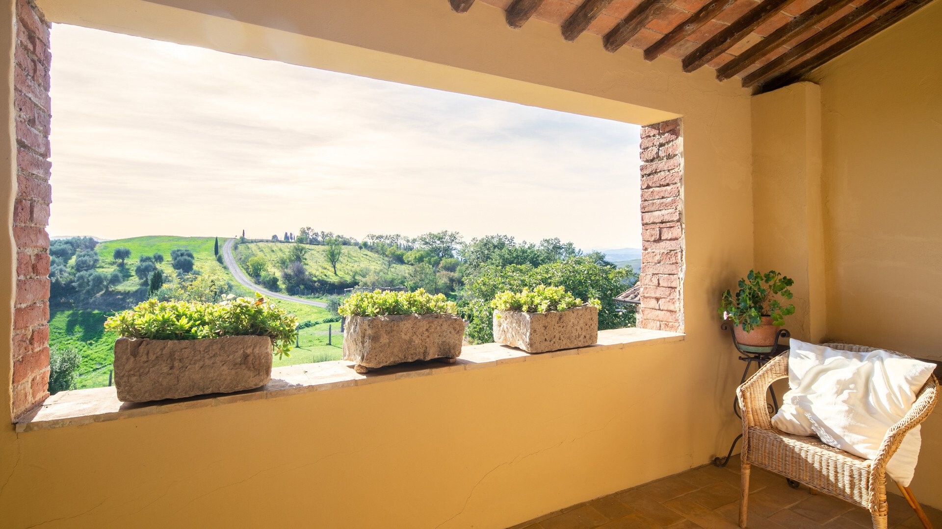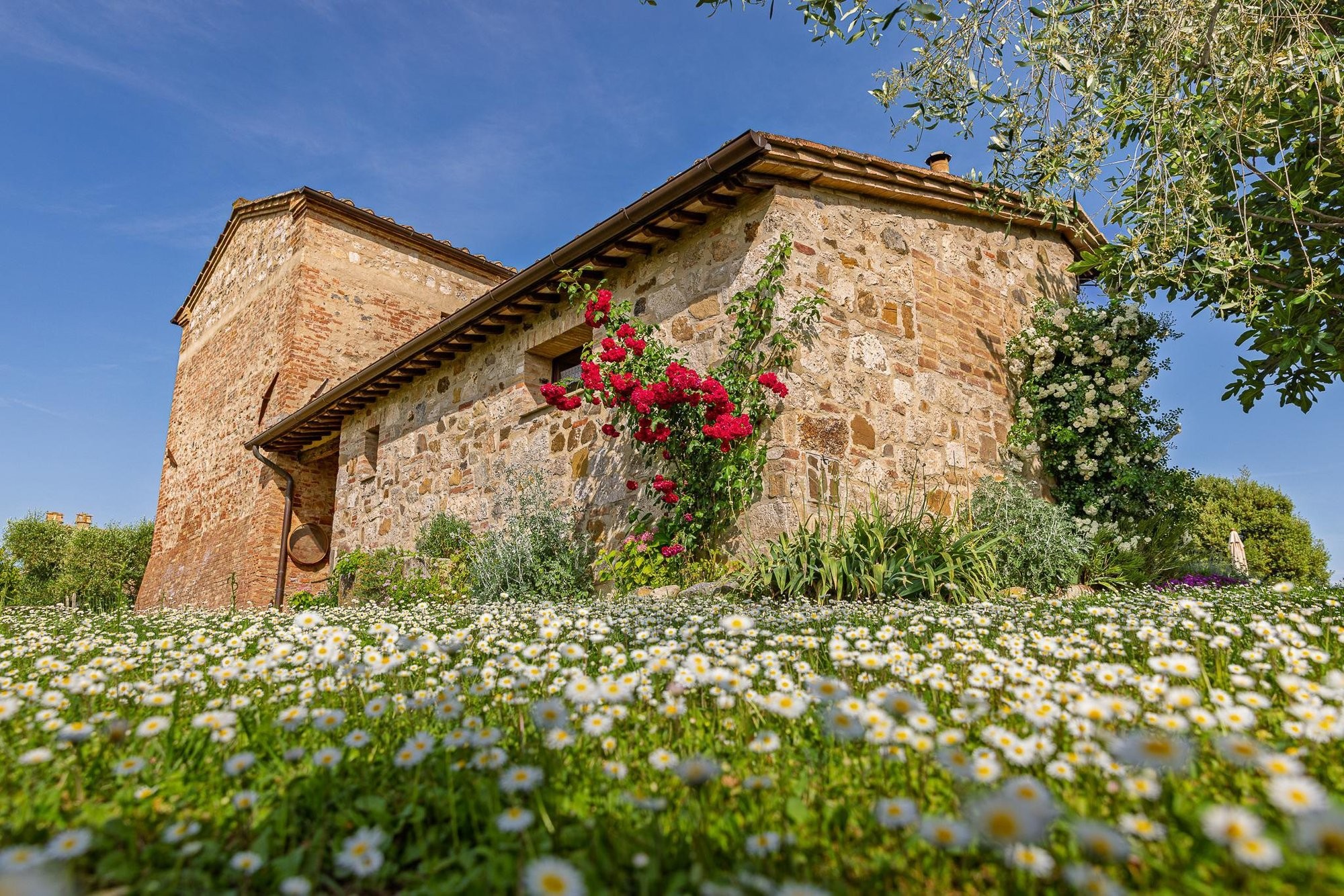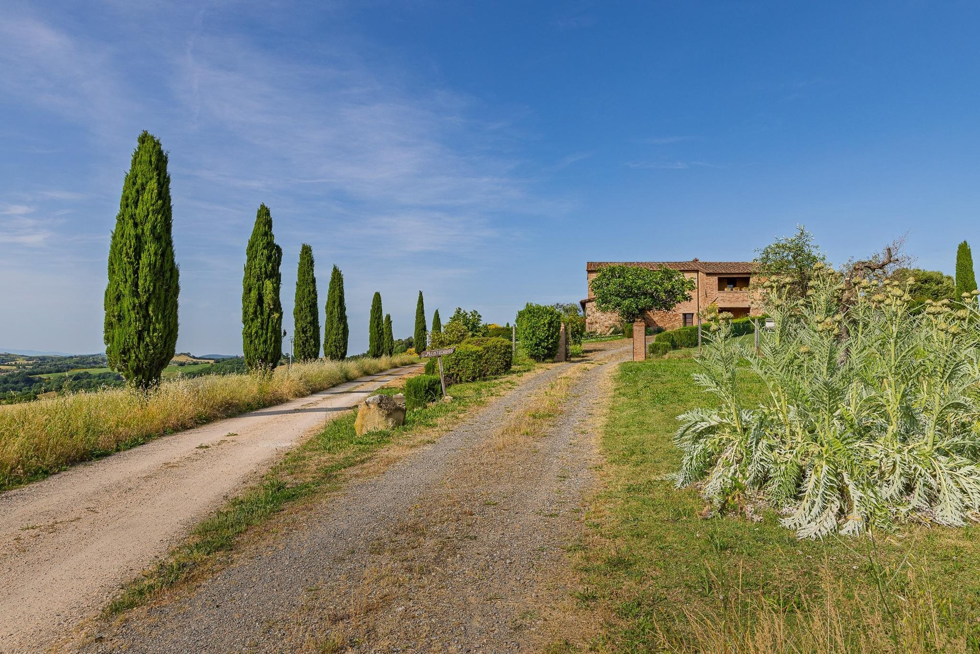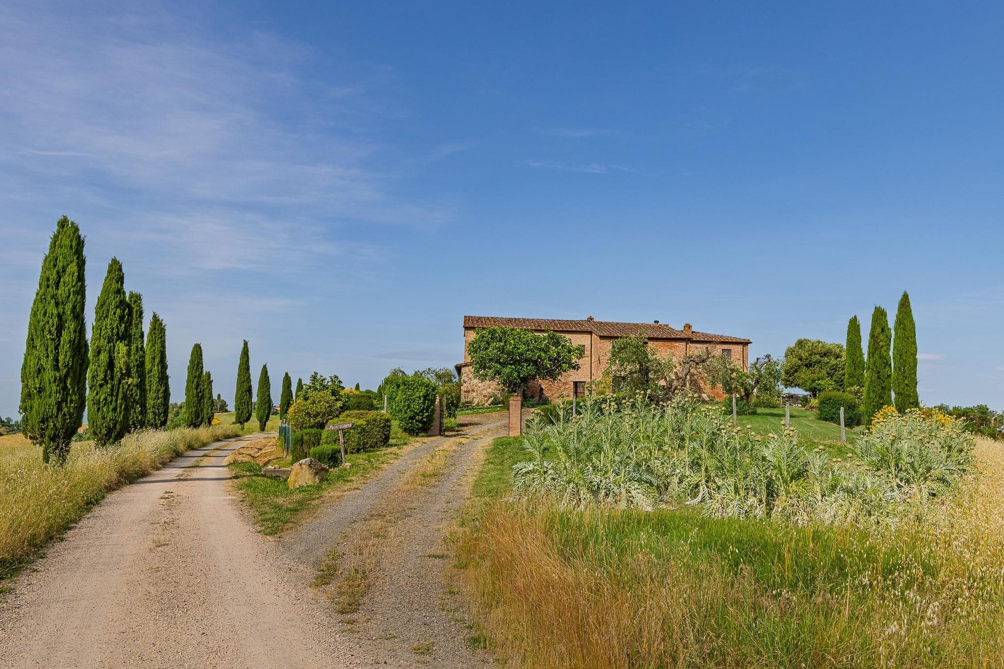 Entre les rangées de vignes du Brunello et les collines d’oliviers et de cyprès, cette propriété de 40 hectares se déploie sur un promontoire naturel dominant le Val d'Orcia. Depuis la maison principale, le regard porte sur les tours médiévales de Sienne, l’abbaye de Sant’Anna in Camprena et, par temps clair, sur les clochers gothiques de Pienza.