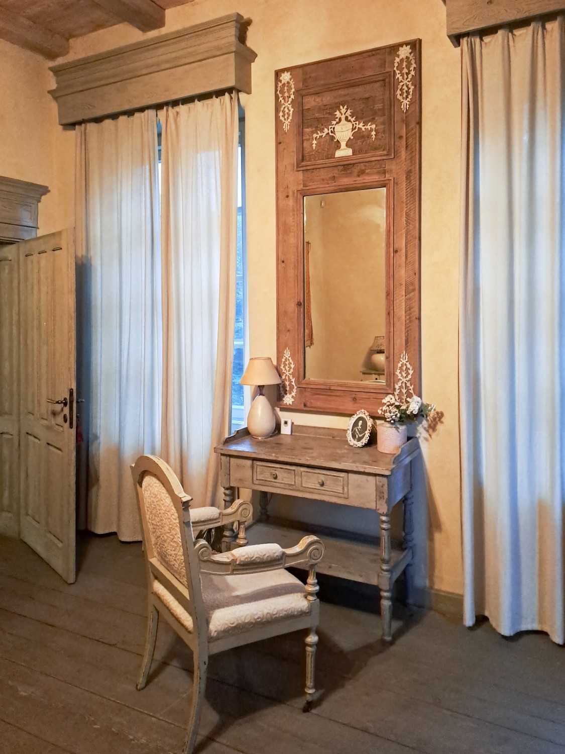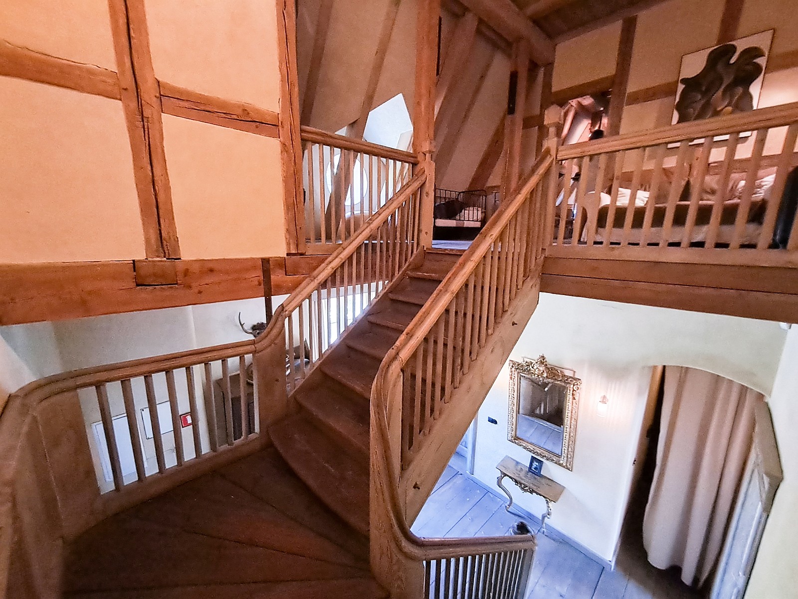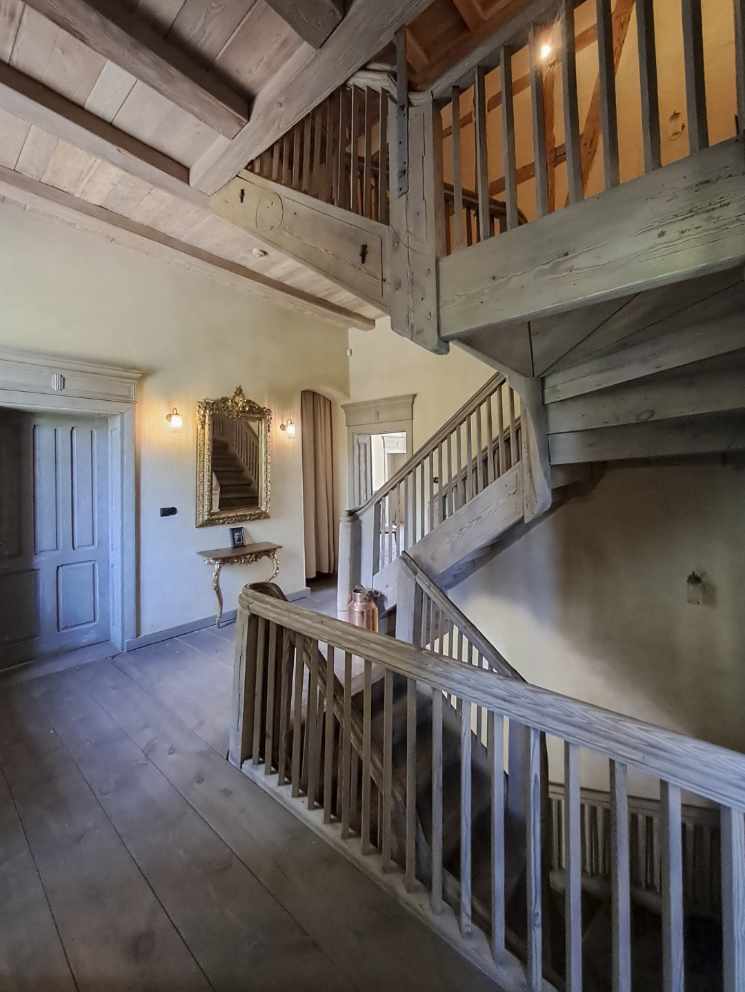 - Suite à deux niveaux (niveau supérieur 24m², niveau inférieur 43m²) avec salle de bain 13m² (baignoire + douche) et cheminée