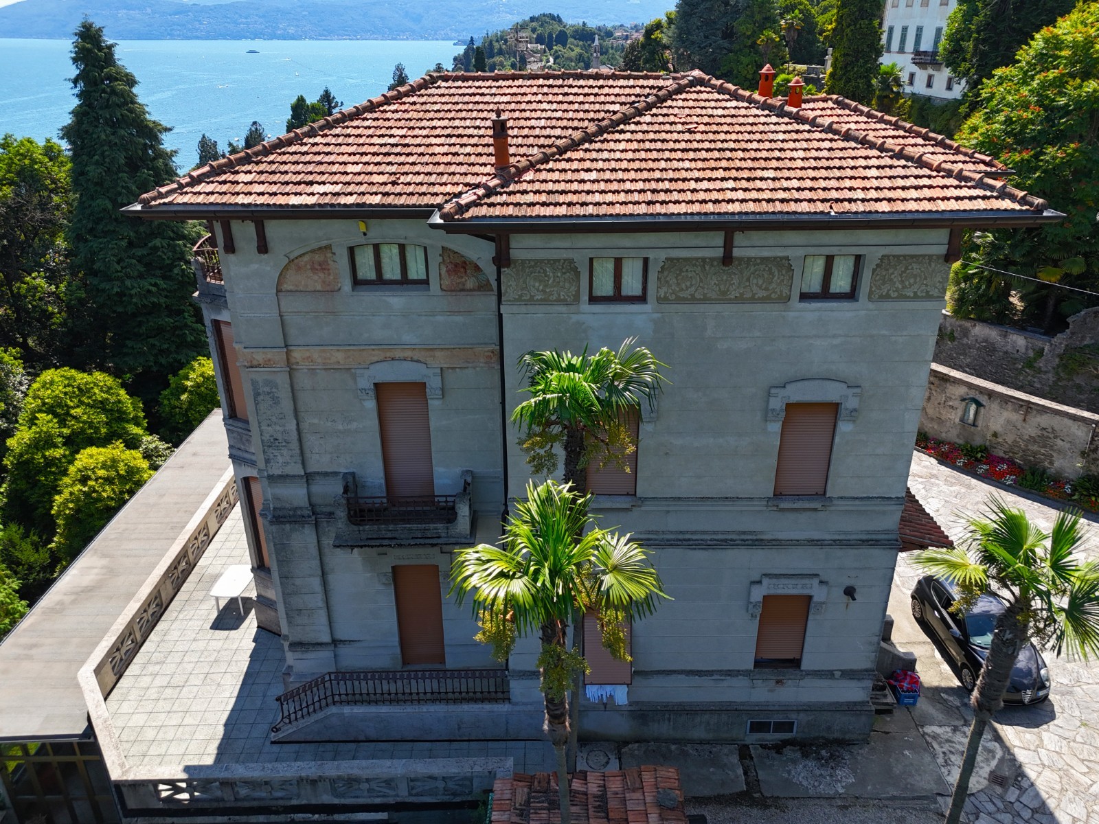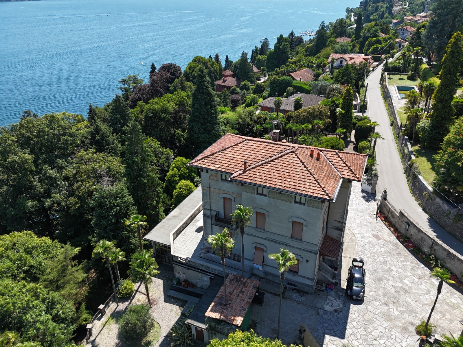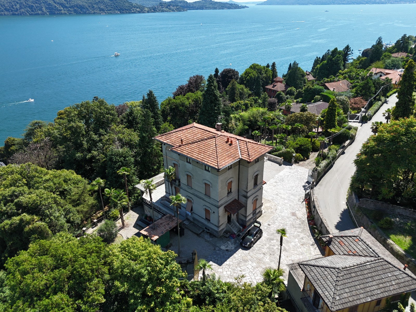 Dans le village de Frino, dans la commune de Ghiffa, se trouve cette villa des années 1930 sur les rives du lac Majeur. La maison s'étend sur quatre étages et dispose actuellement de neuf appartements, de pièces communes, d'une cuisine commerciale et d'une annexe d'une superficie de 100 mètres carrés.