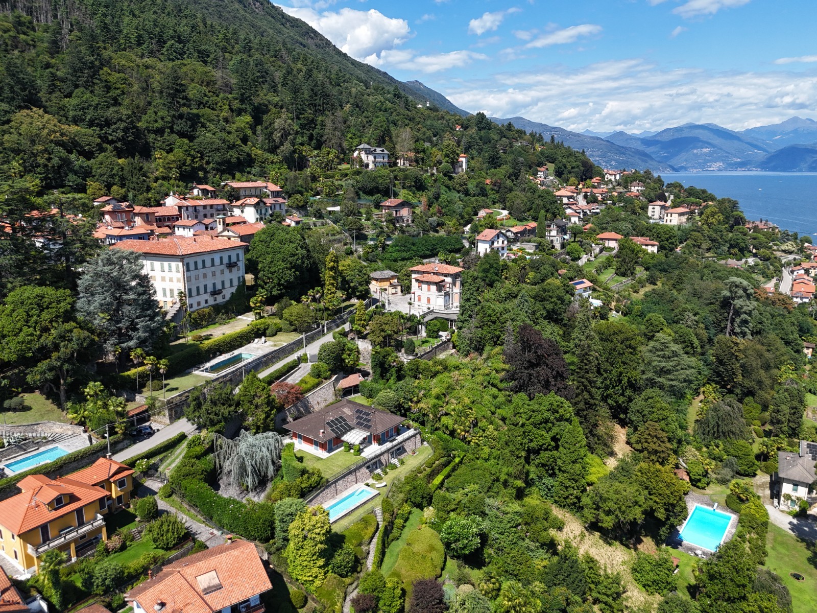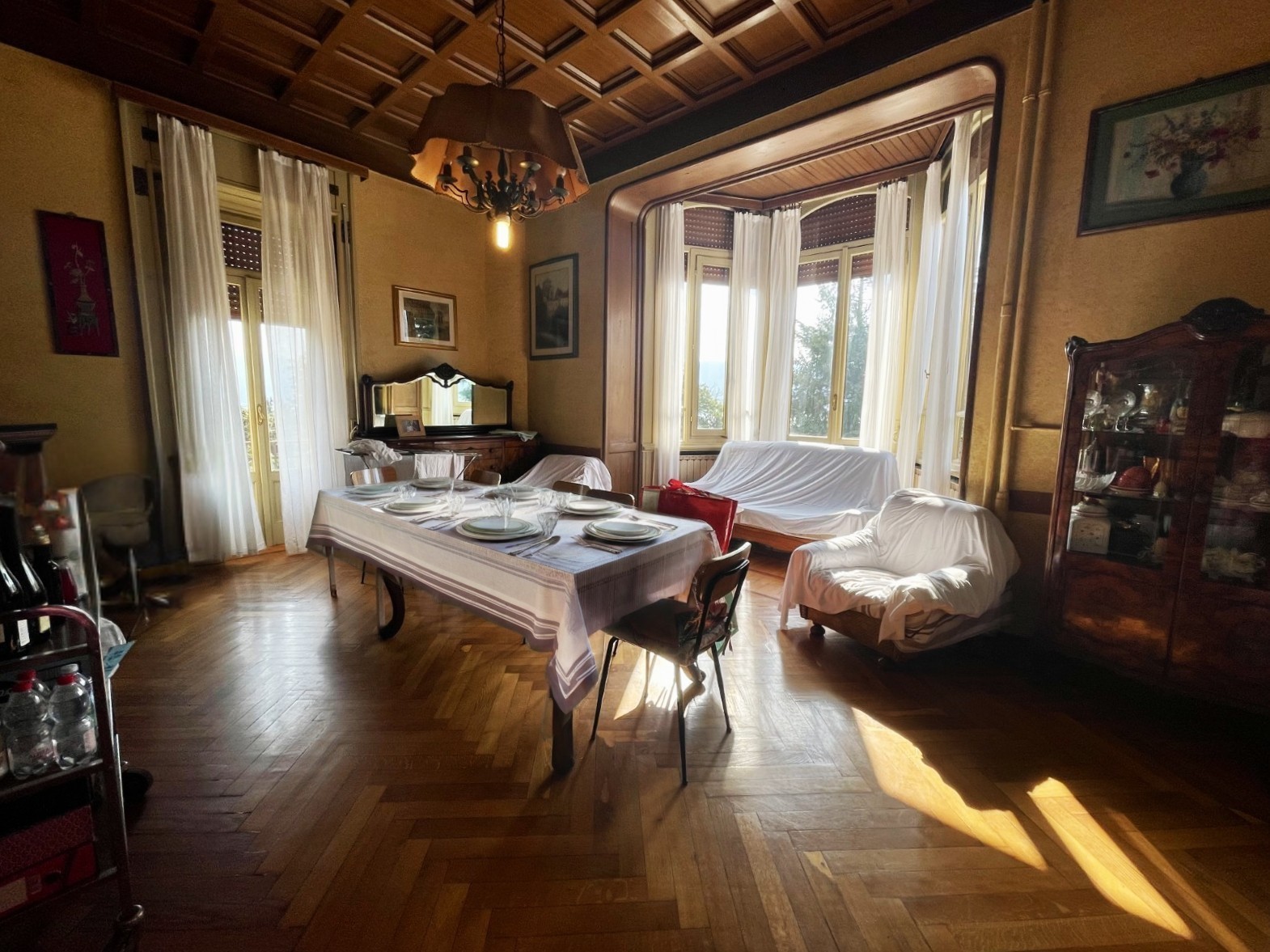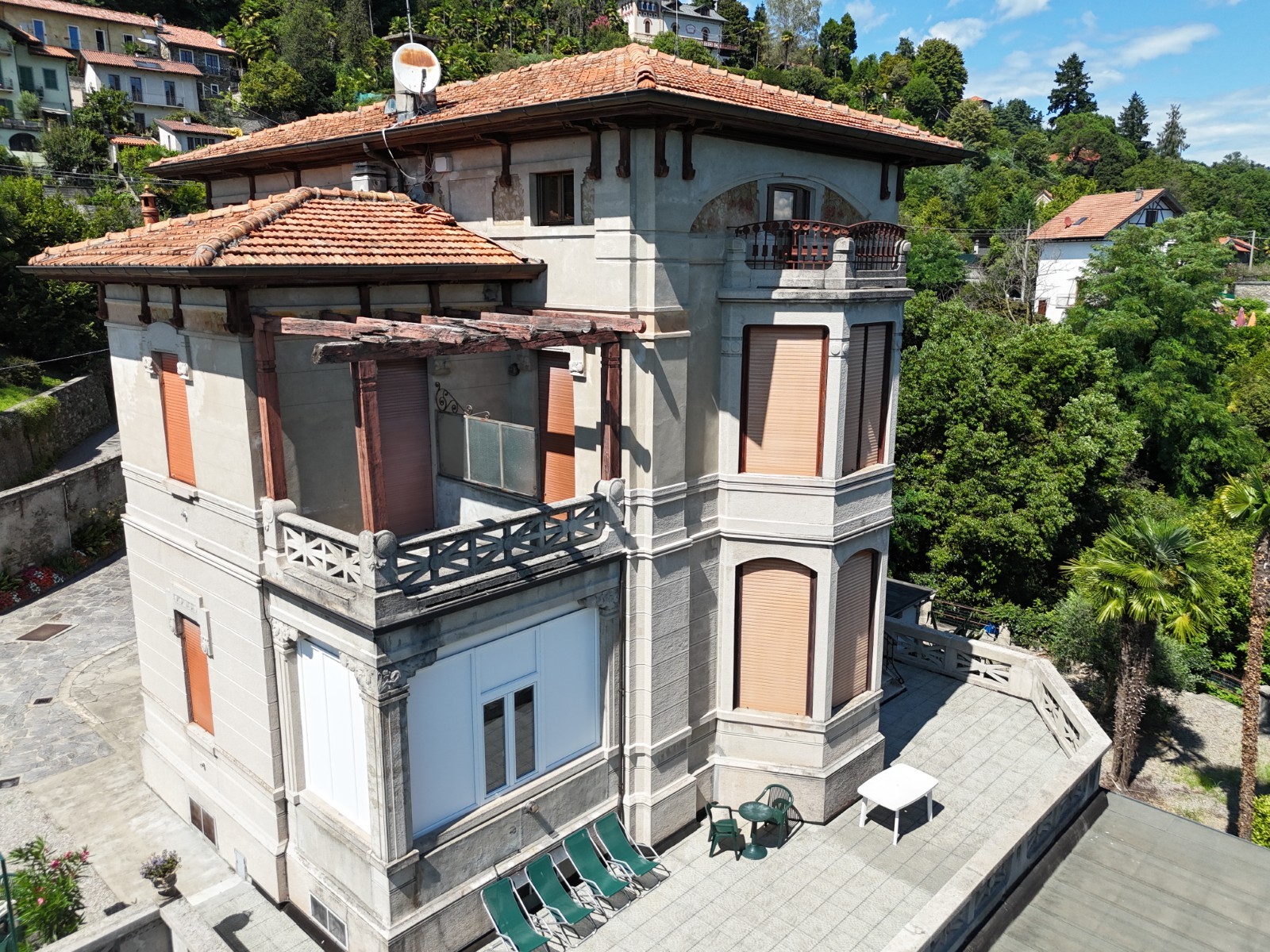 Dans le village de Frino, dans la commune de Ghiffa, se trouve cette villa des années 1930 sur les rives du lac Majeur. La maison s'étend sur quatre étages et dispose actuellement de neuf appartements, de pièces communes, d'une cuisine commerciale et d'une annexe d'une superficie de 100 mètres carrés.