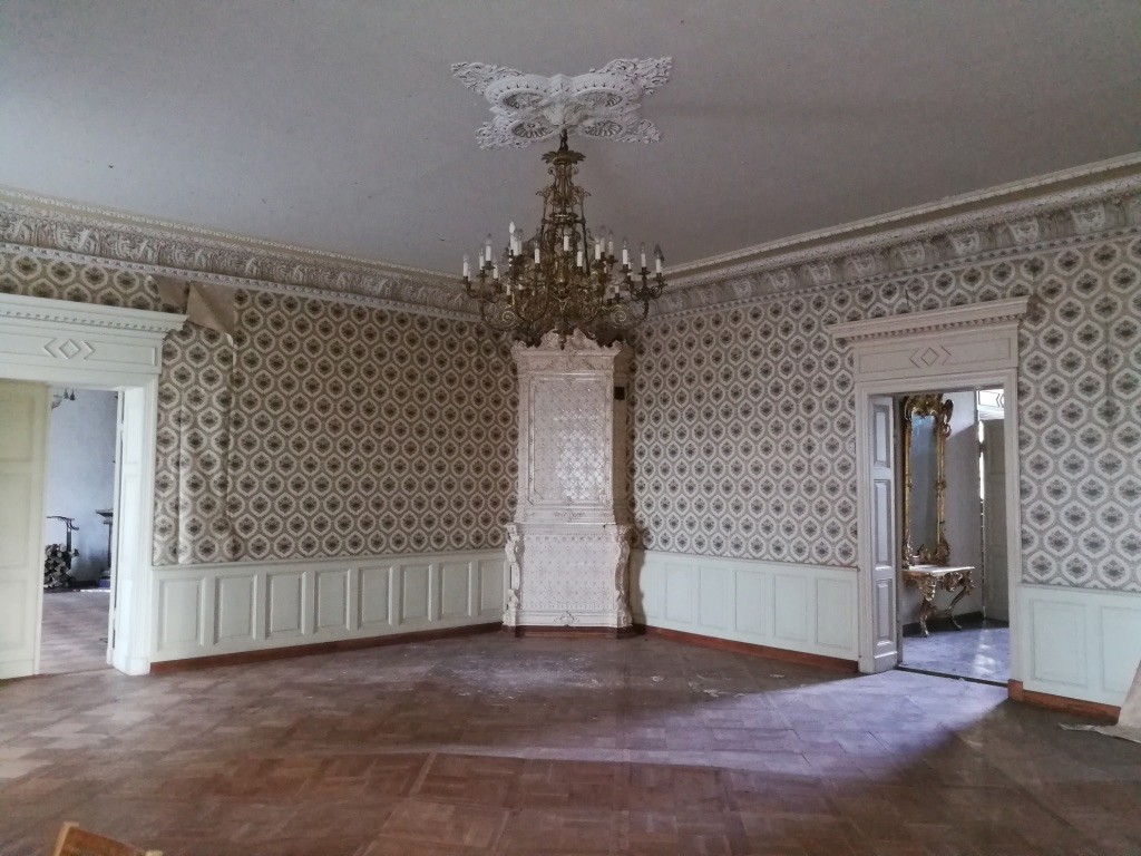 Le manoir a été construit selon les plans de l'architecte Theodor Seiler dans un style néoclassique, au milieu d'un magnifique paysage. En raison de la richesse de la forêt et du gibier, il était également appelé le pavillon de chasse de Baron contre Fircks, et en raison de son mobilier extrêmement splendide, il était également appelé le "Rundale of Kurland".