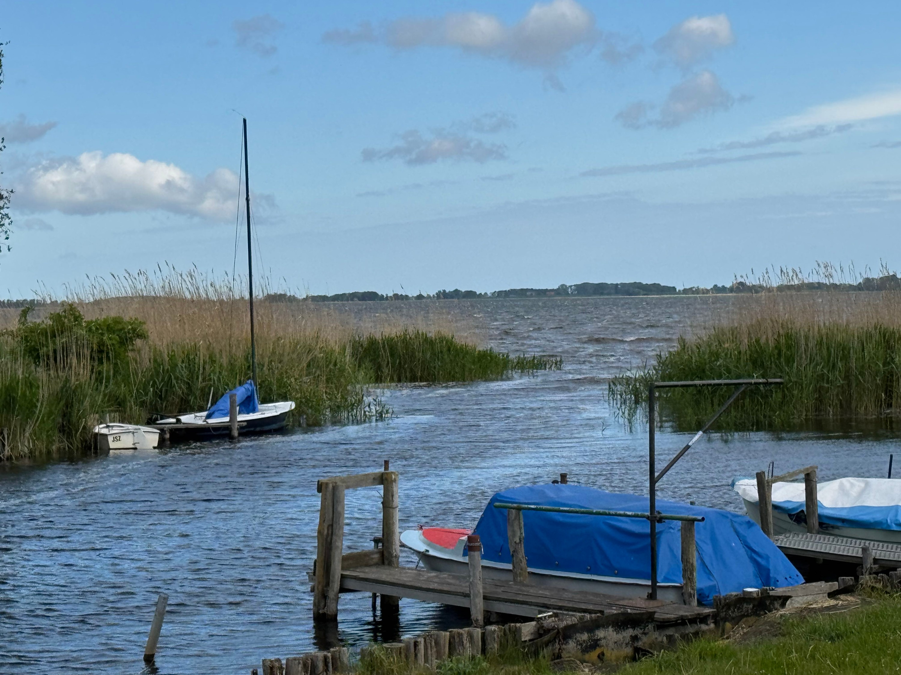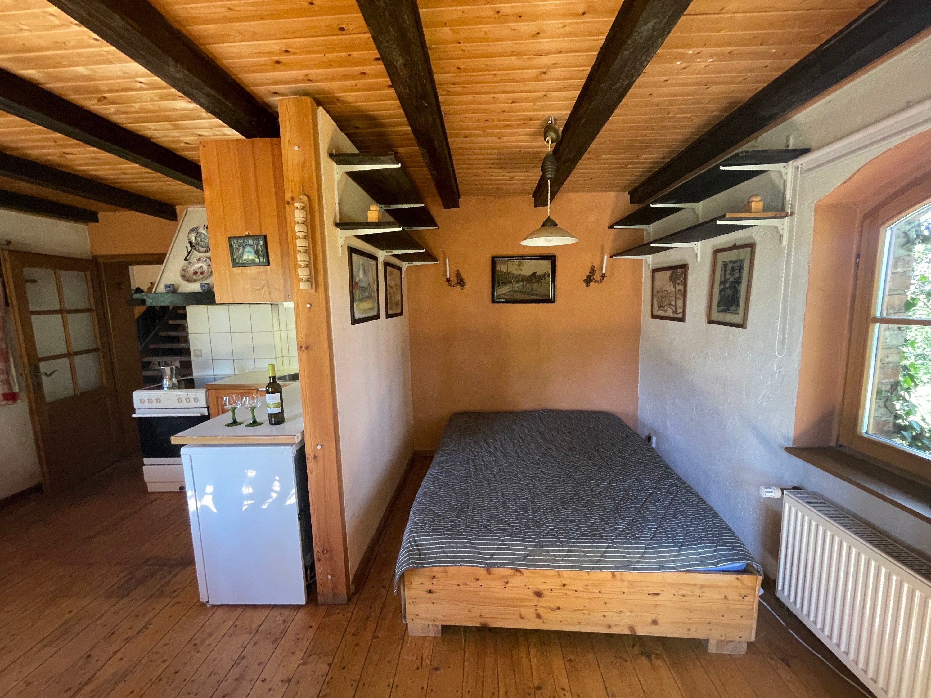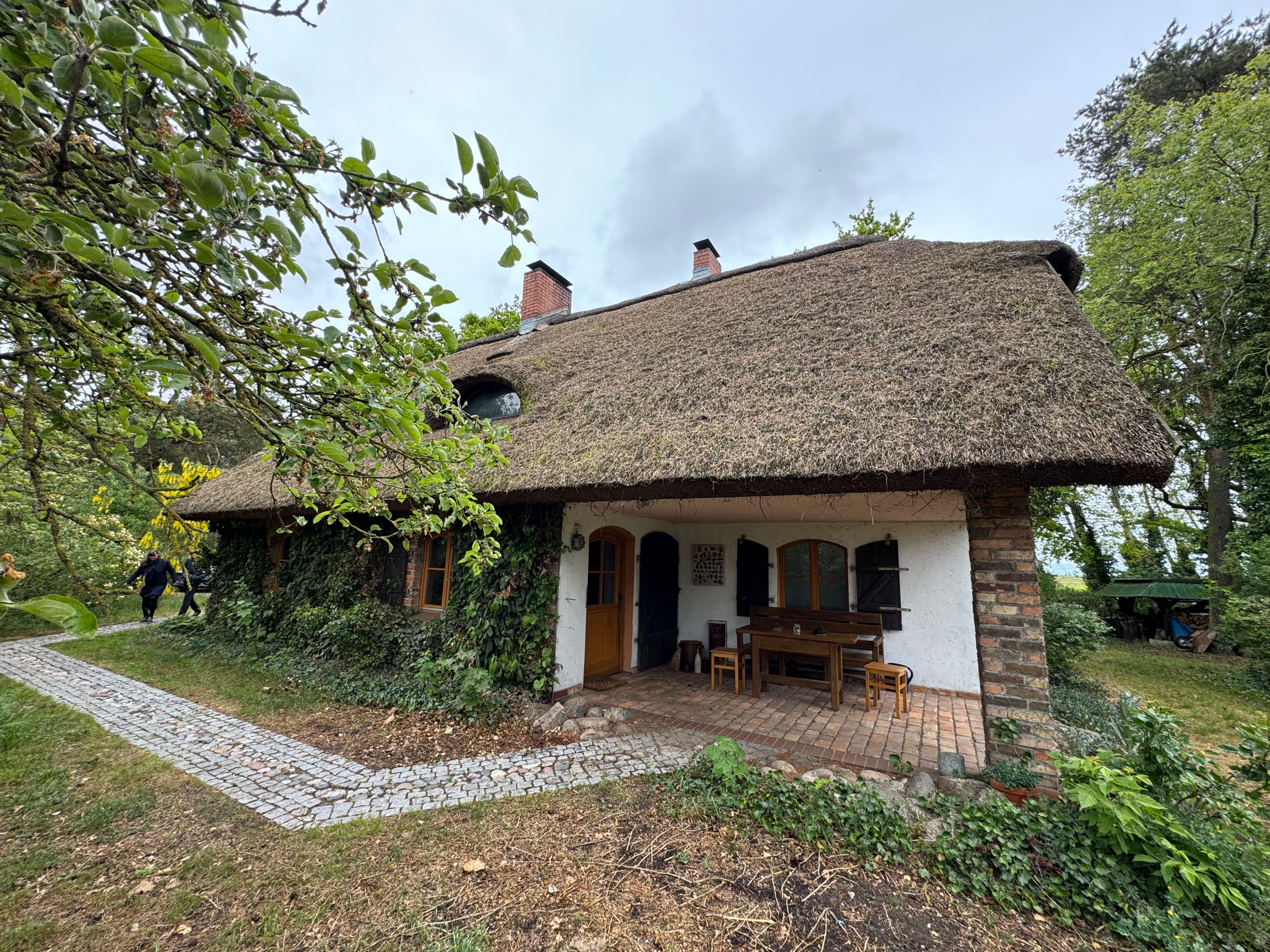 À seulement 10 minutes de la lagune de Szczecin et à environ une heure de la station balnéaire d’Ahlbeck sur l’île d’Usedom, cette maison paysanne typique de Poméranie occidentale avec toit traditionnel en chaume bénéficie d’une situation isolée et paisible. En direction du nord, à travers les prairies de la lagune, il y a environ 3 km jusqu’à l’eau. La localité balnéaire de Mönkebude, avec sa plage de sable fin et son petit port de plaisance, est accessible à vélo en environ 15 minutes. La ville d’Anklam se rejoint en 20 minutes en voiture par la route fédérale B109.