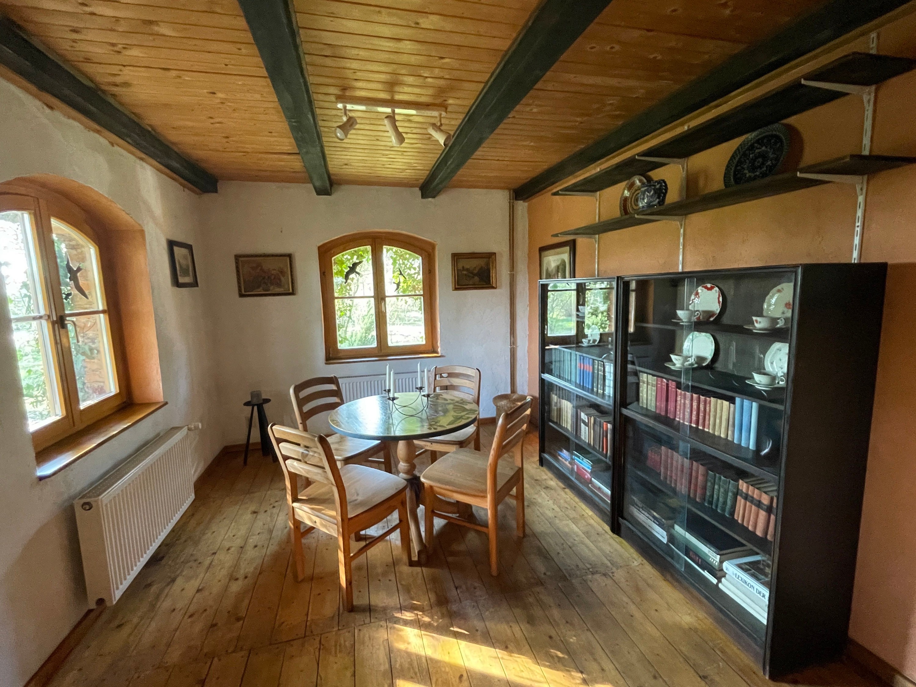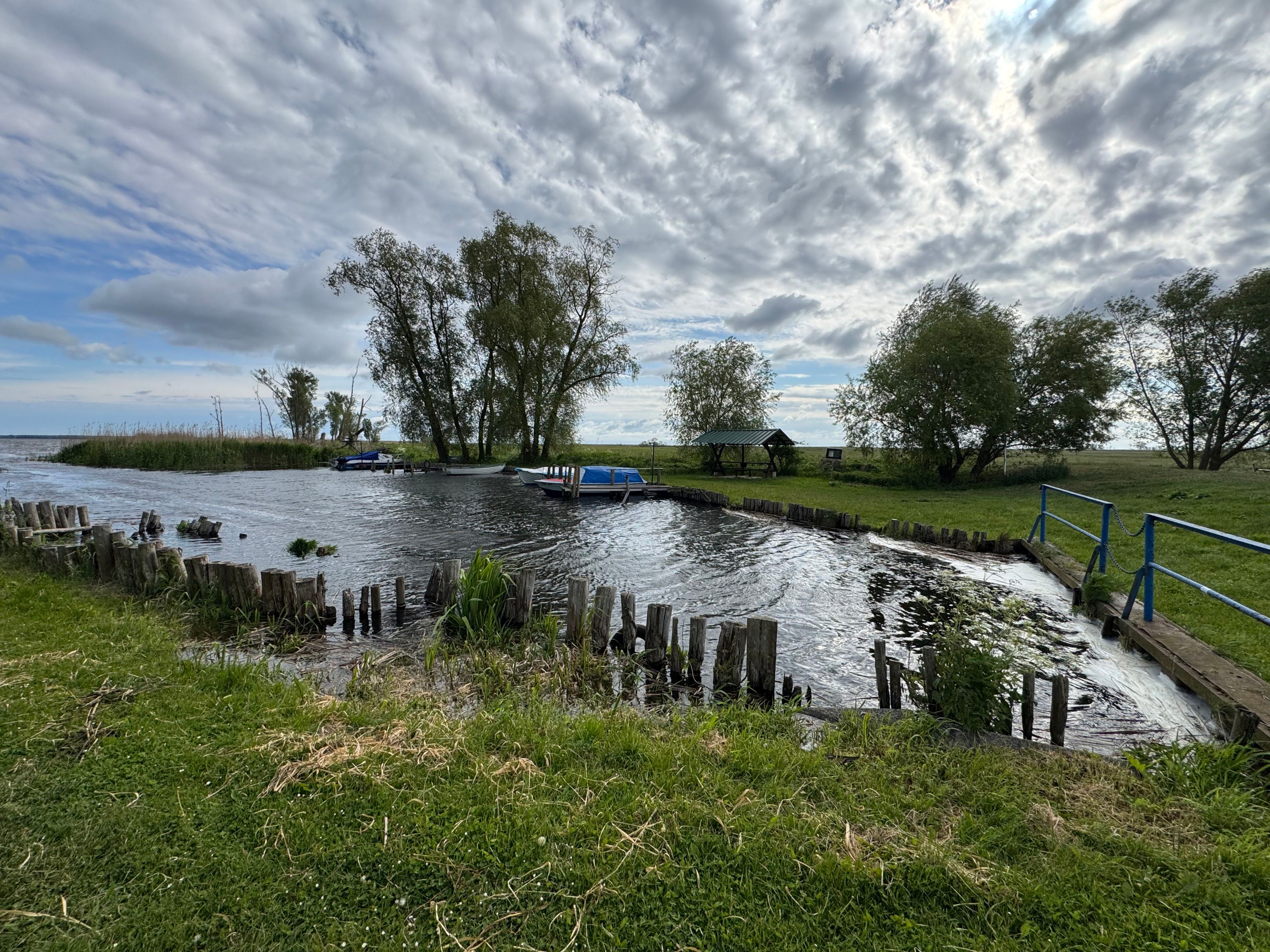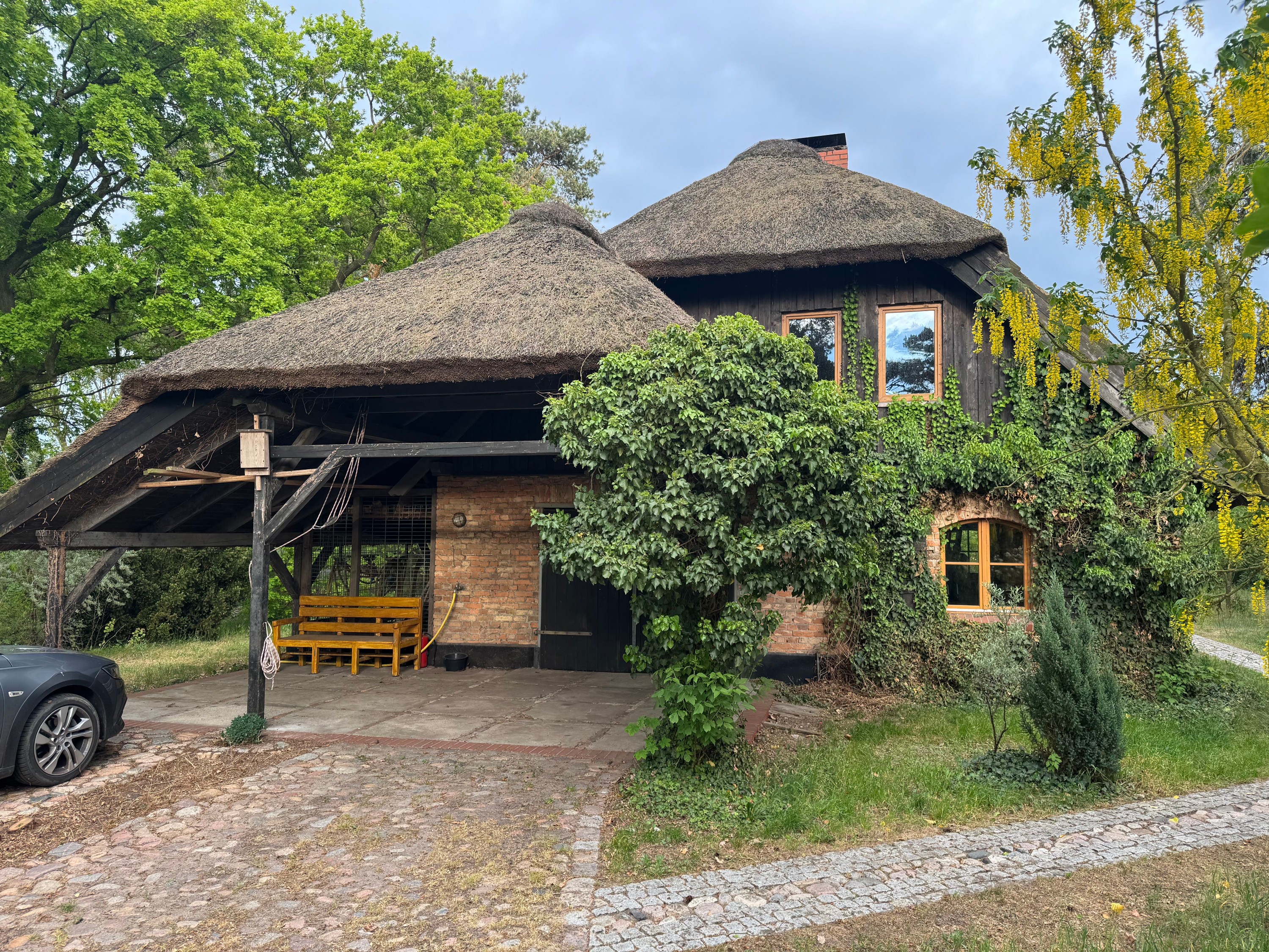 À seulement 10 minutes de la lagune de Szczecin et à environ une heure de la station balnéaire d’Ahlbeck sur l’île d’Usedom, cette maison paysanne typique de Poméranie occidentale avec toit traditionnel en chaume bénéficie d’une situation isolée et paisible. En direction du nord, à travers les prairies de la lagune, il y a environ 3 km jusqu’à l’eau. La localité balnéaire de Mönkebude, avec sa plage de sable fin et son petit port de plaisance, est accessible à vélo en environ 15 minutes. La ville d’Anklam se rejoint en 20 minutes en voiture par la route fédérale B109.