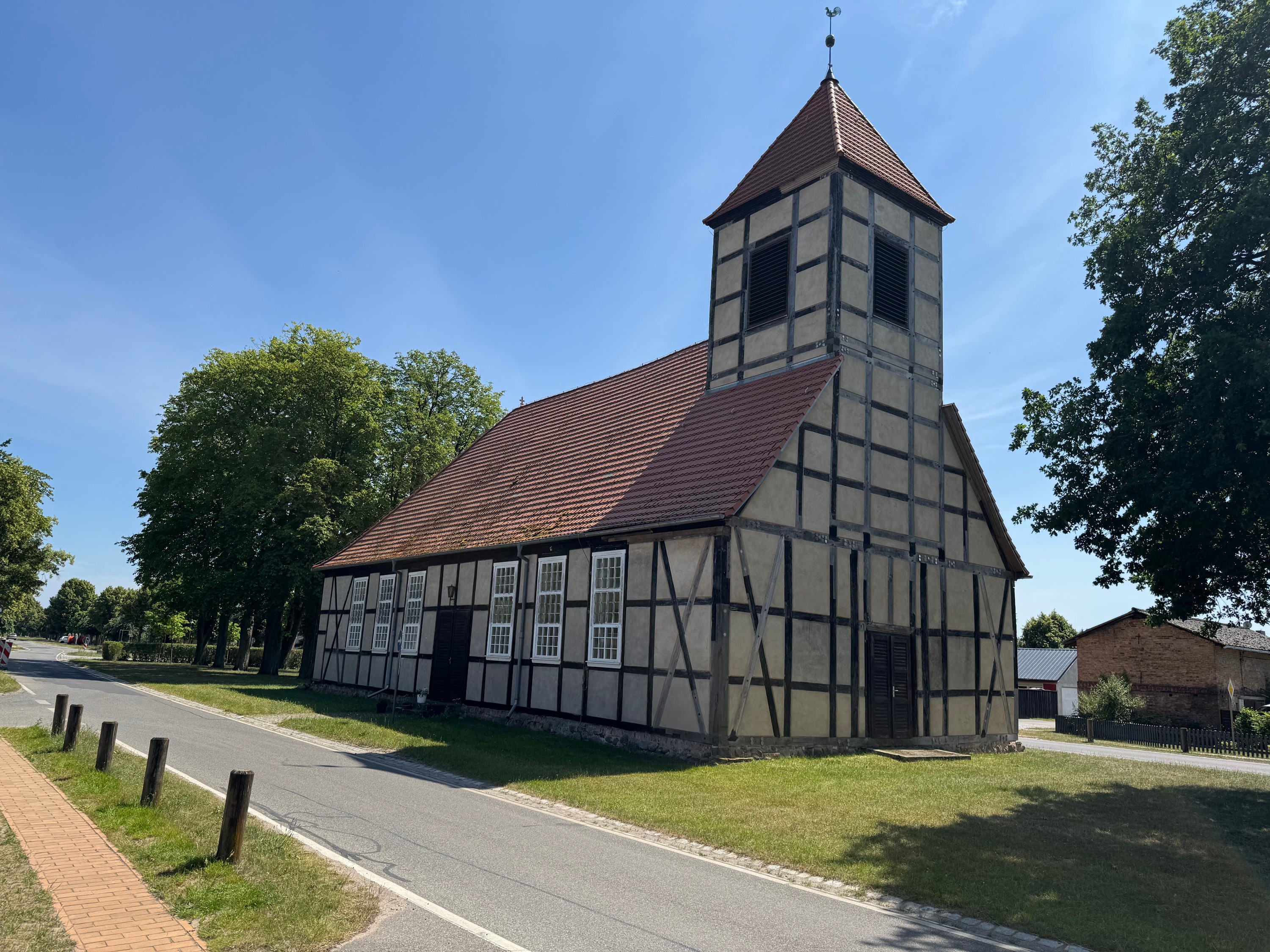 Cette maison rurale en briques pleines, de construction massive, est située à l’abri sur une petite île boisée au milieu des champs, avec vue sur le village-rue typique à proximité. La maison a été entièrement reconstruite selon des méthodes traditionnelles, en utilisant des briques historiques d’origine à haute cuisson et en respectant les plans initiaux de l’ancienne ferme. Les travaux ont été achevés en 1997.