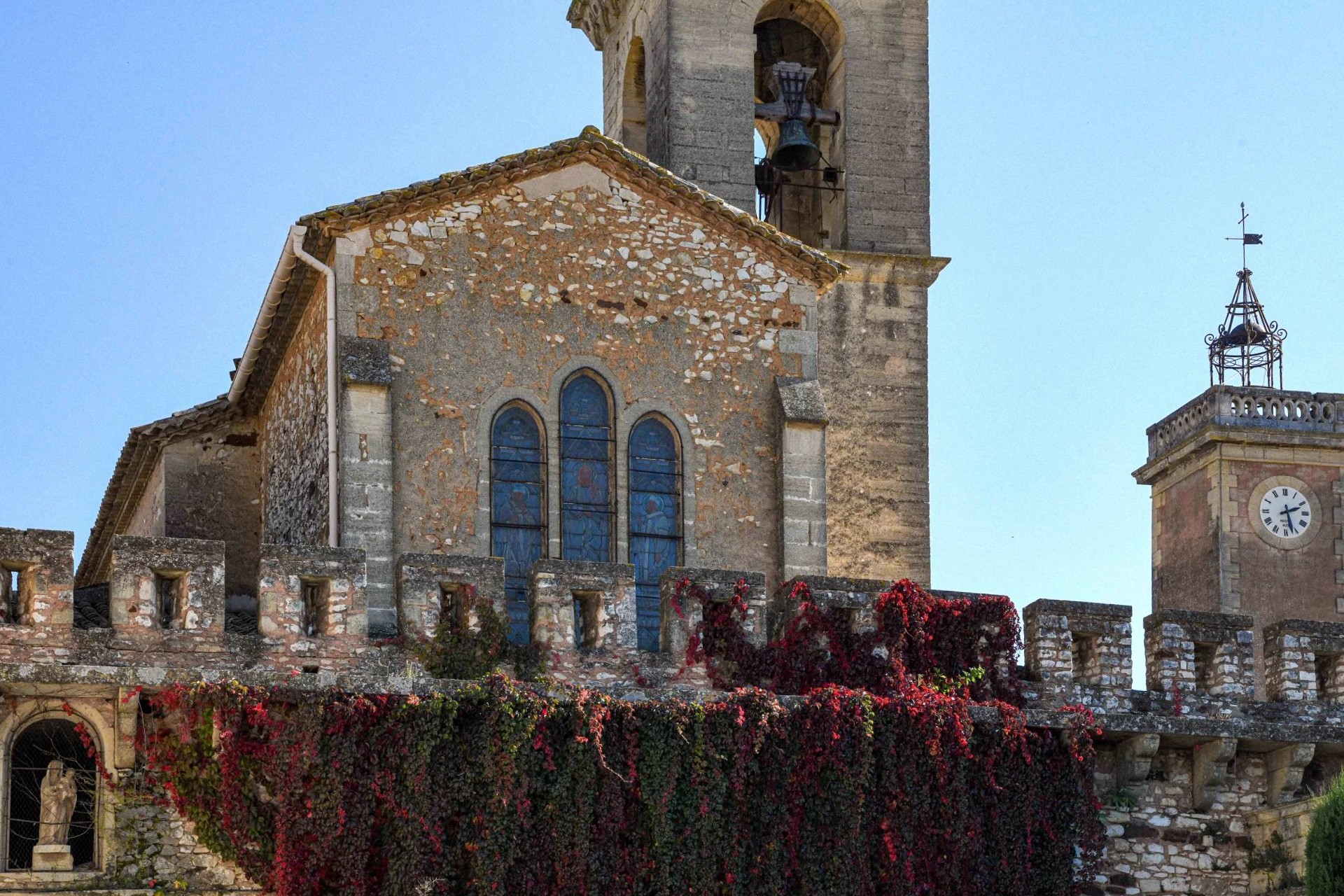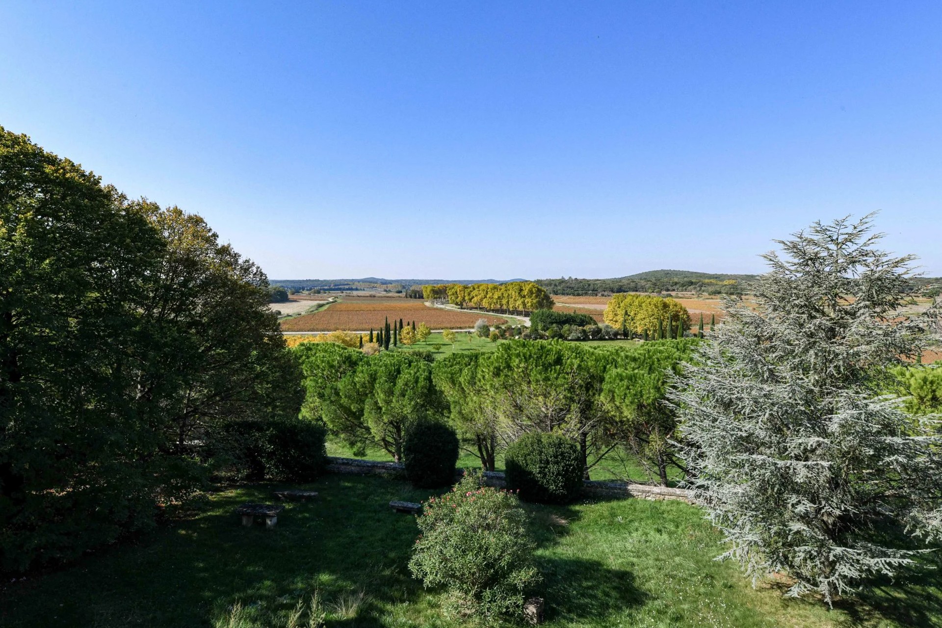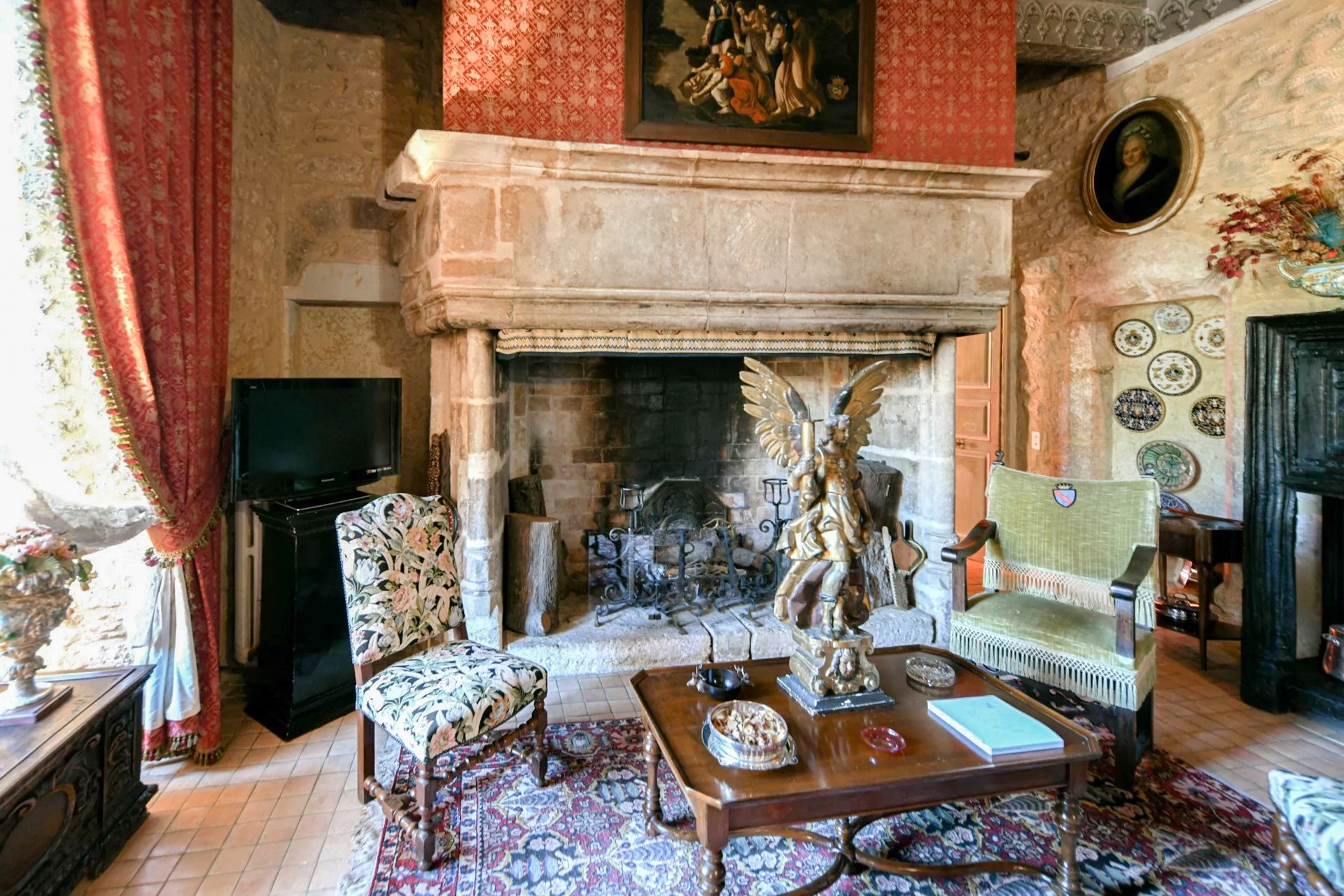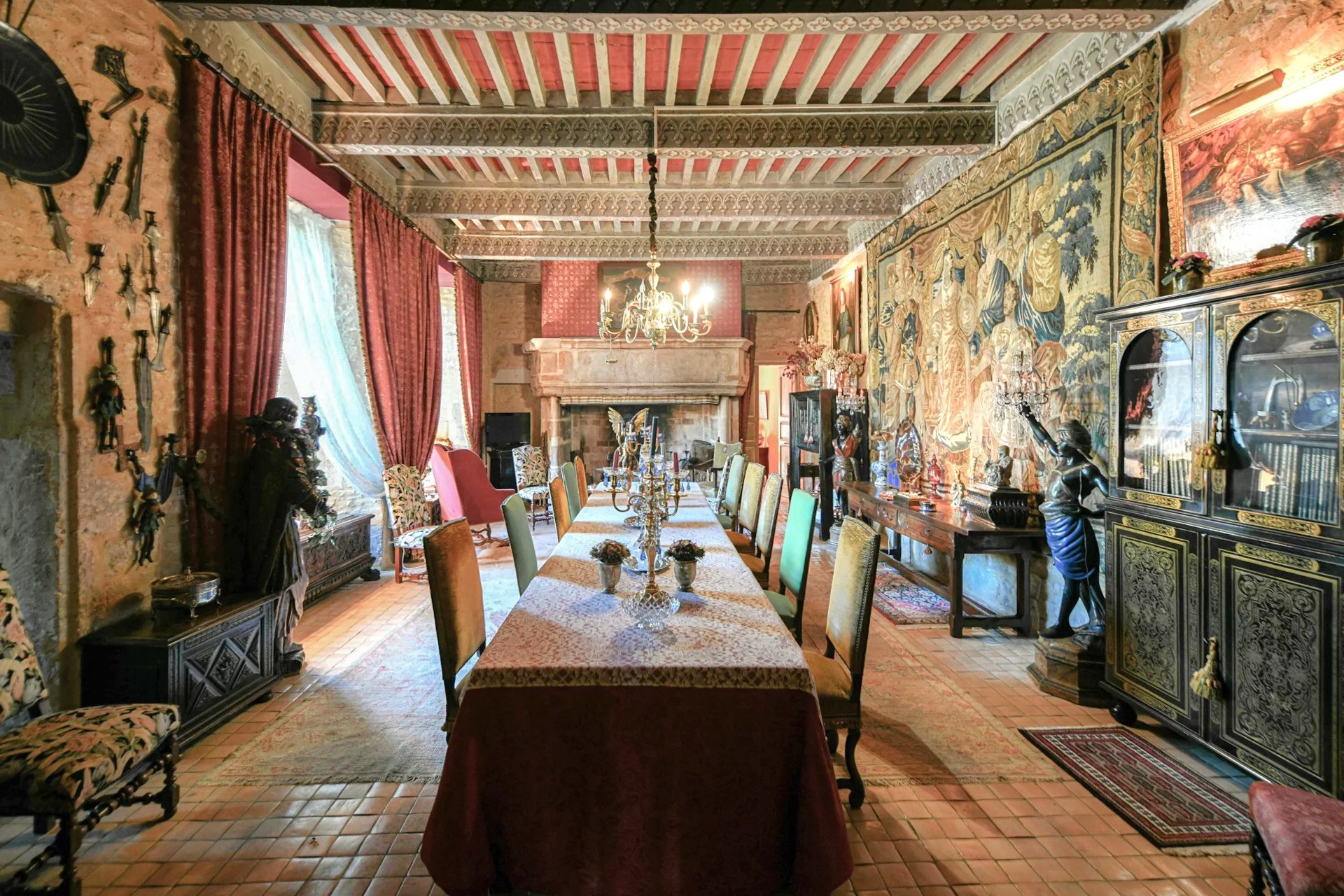 Cette demeure possède également son donjon, ses tours carrées, ses échauguettes, son chemin de ronde et de grandes terrasses depuis lesquelles l’on domine une vue unique sur la campagne environnante aux accents toscans.