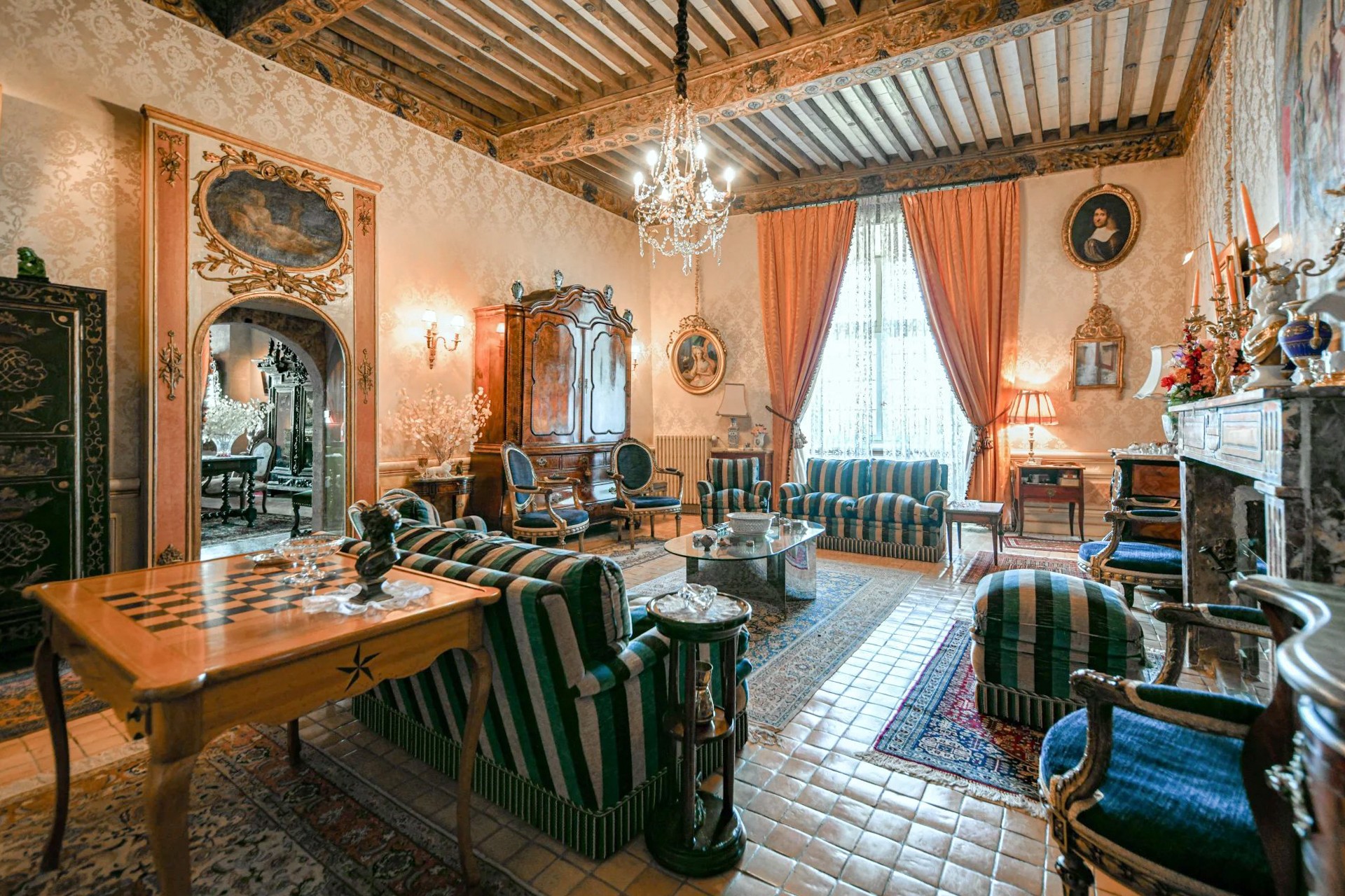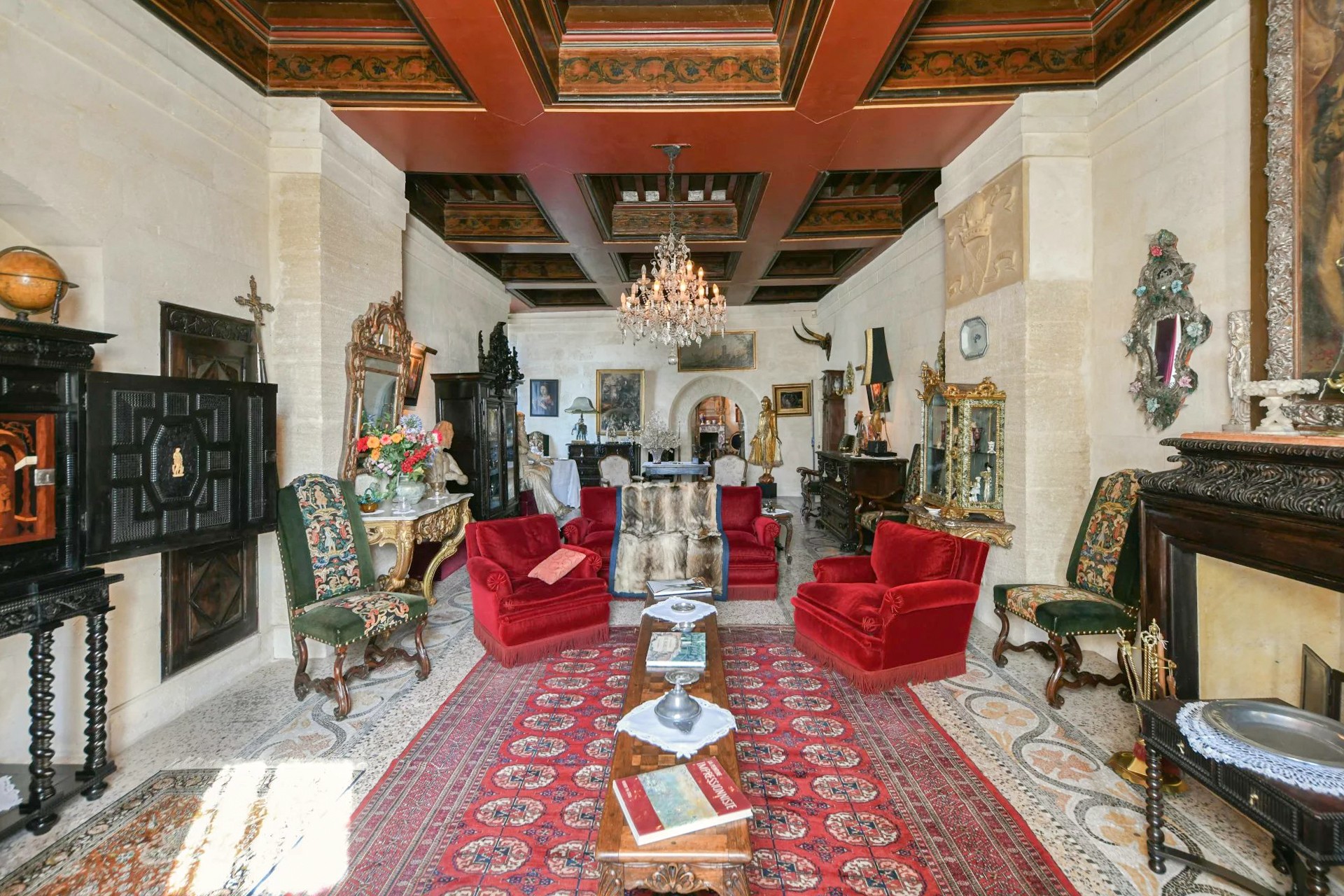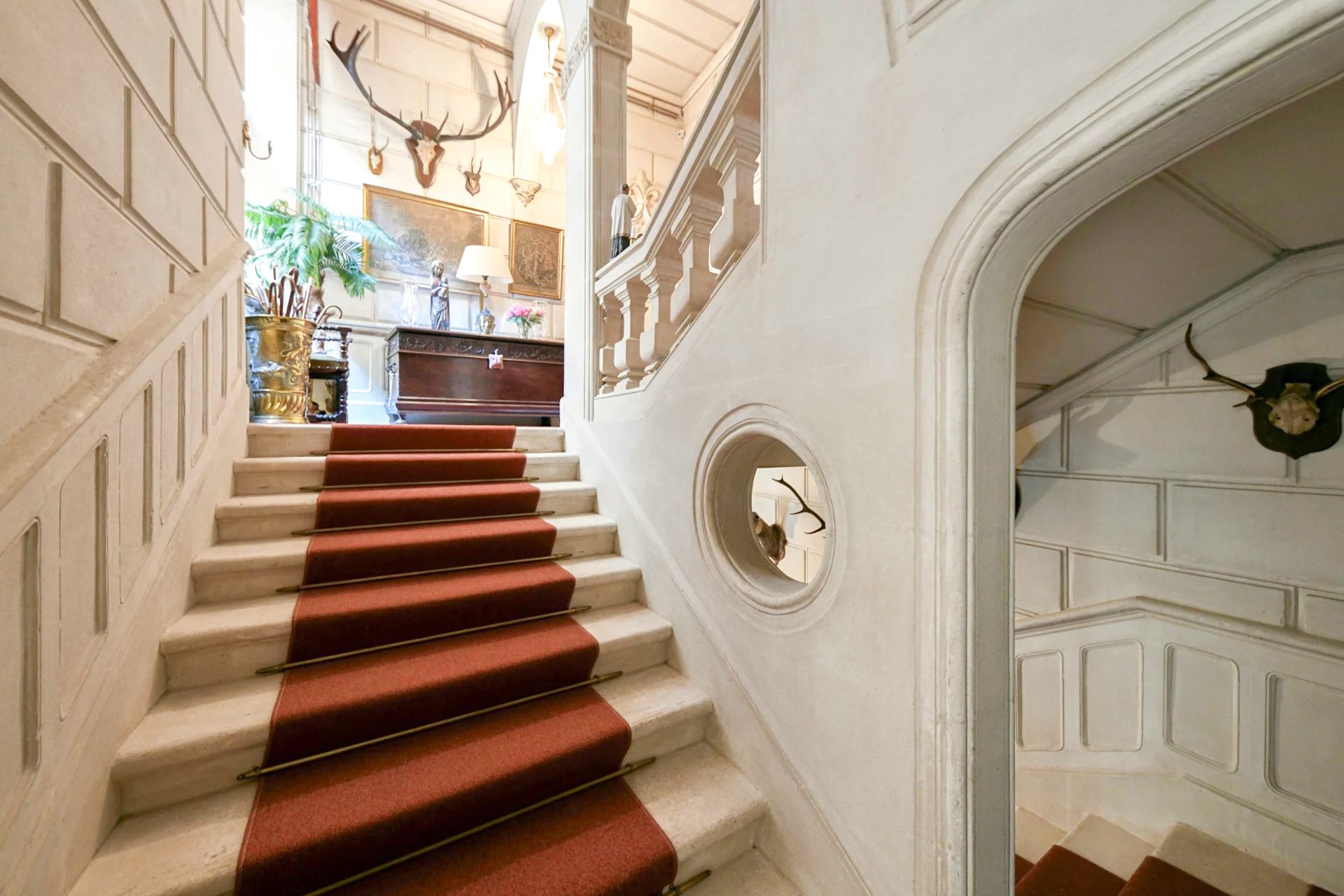 Deux entrées vous accueillent dans un vaste et somptueux salon voûté qui offre un plafond du XVIIᵉ siècle. Un bel escalier d’honneur mène à l’étage où se trouvent deux salons, une élégante salle à manger avec cheminée et une bibliothèque. Un vaste couloir dessert un bureau, la cuisine ainsi qu’une superbe suite principale de 100 m².