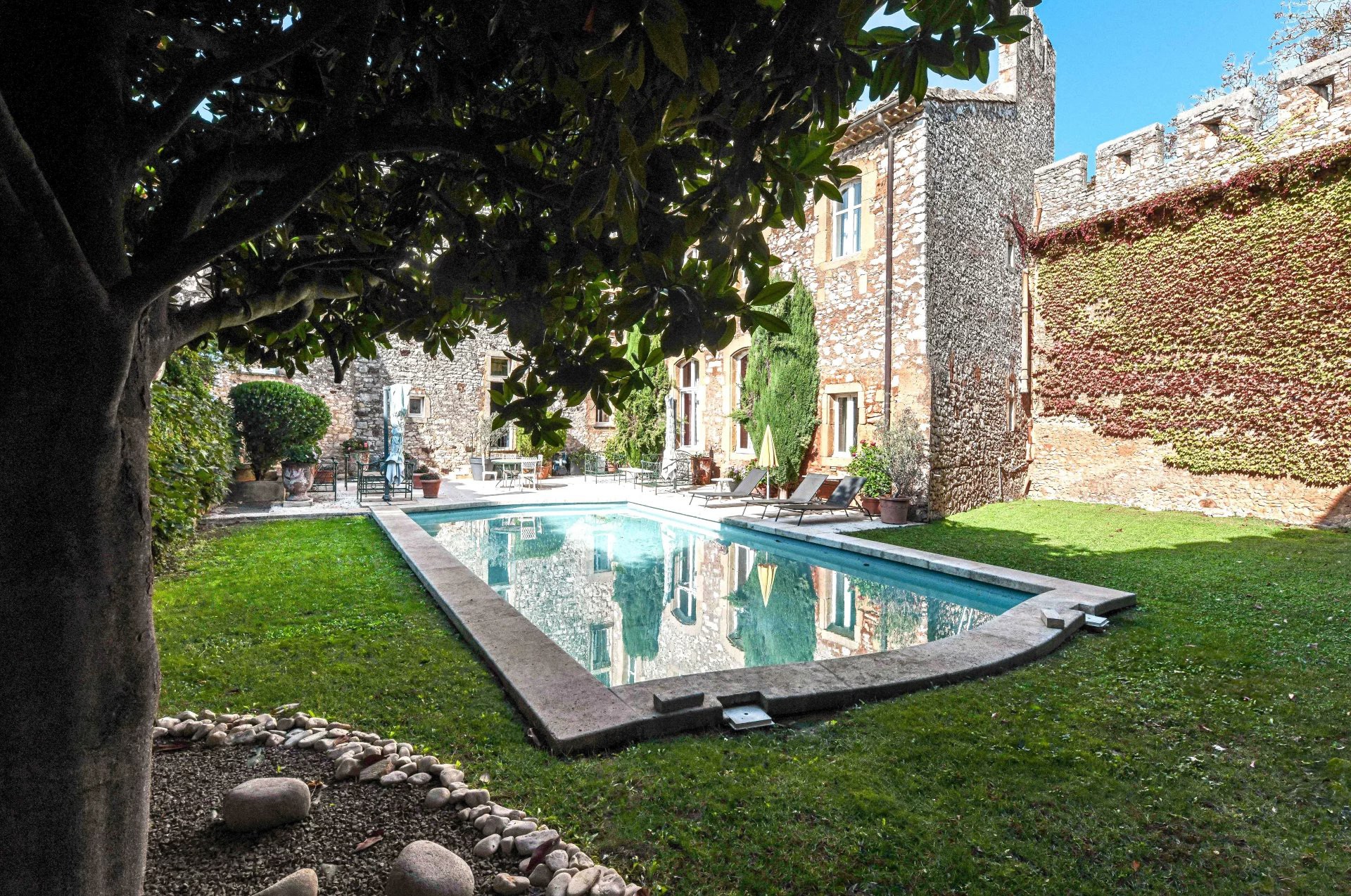 Son parc de 1 ha 1 700 m², judicieusement arboré et totalement clos de murs, confère à ce lieu une sécurité ainsi qu’une authenticité incomparable et préservée.