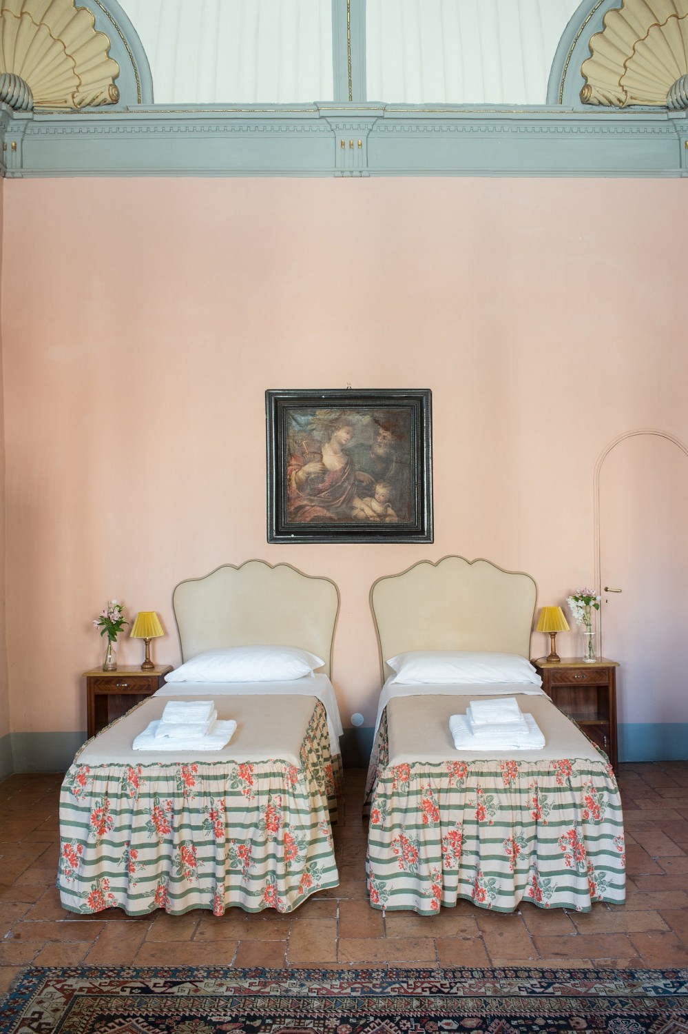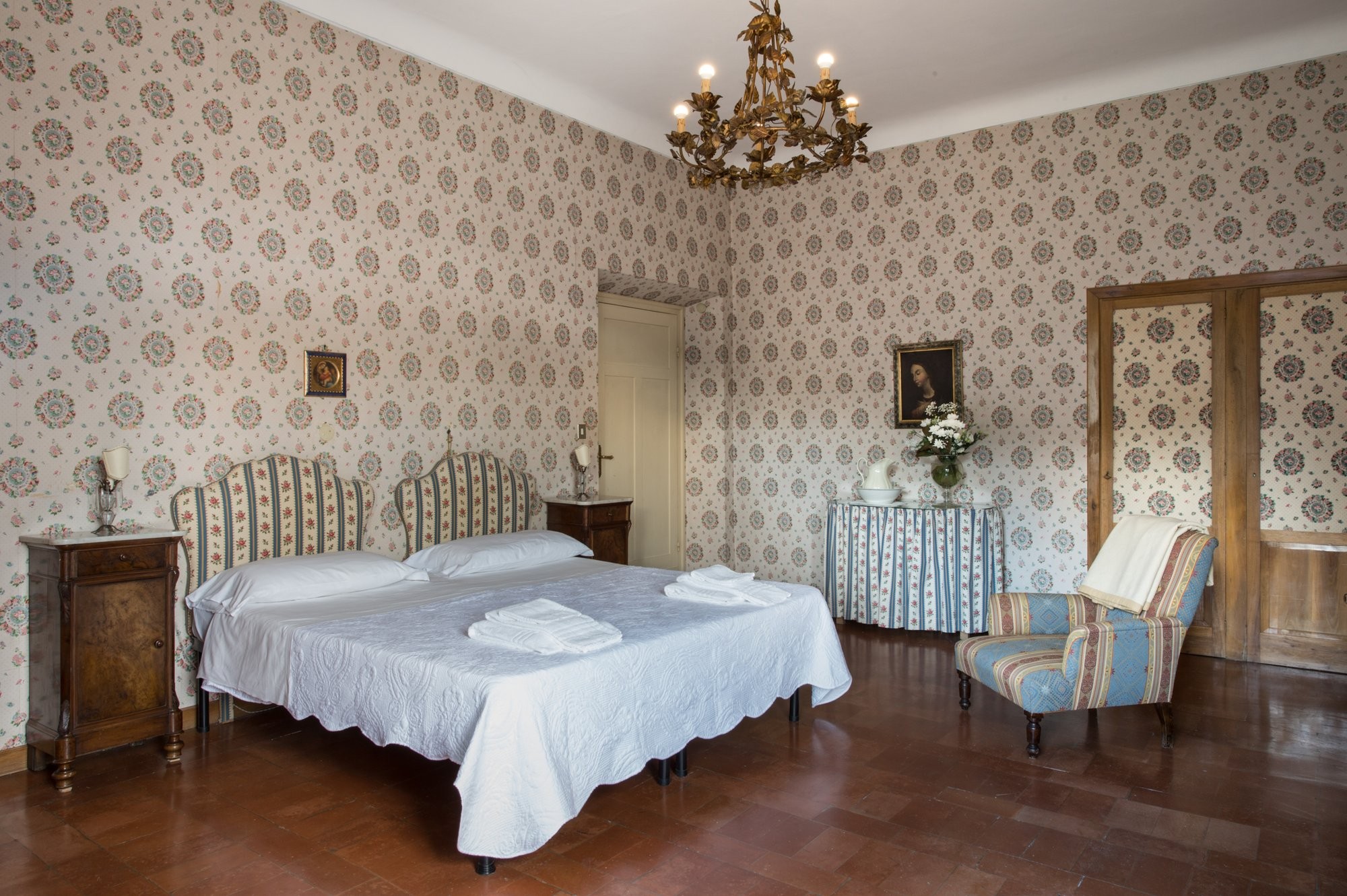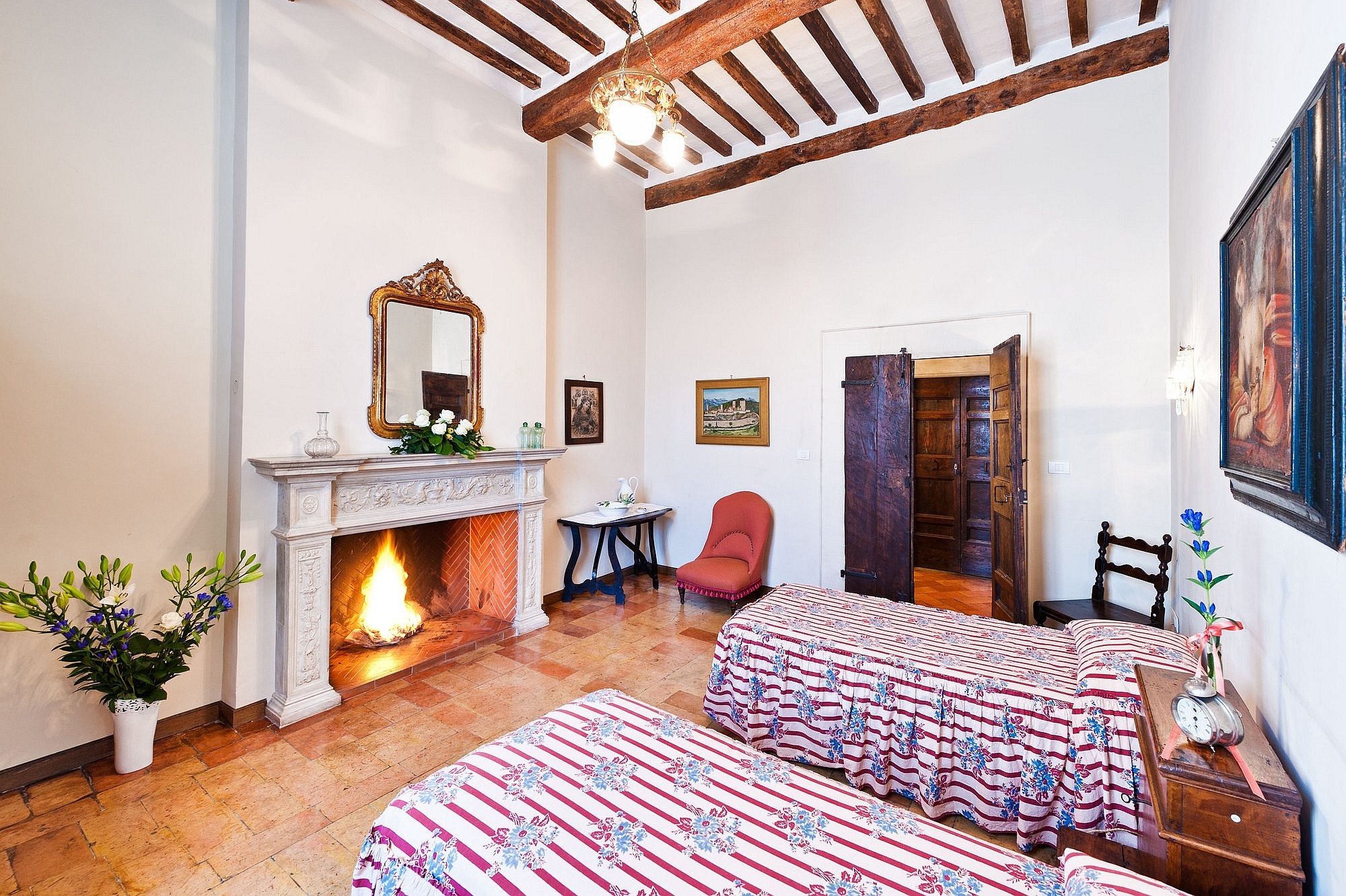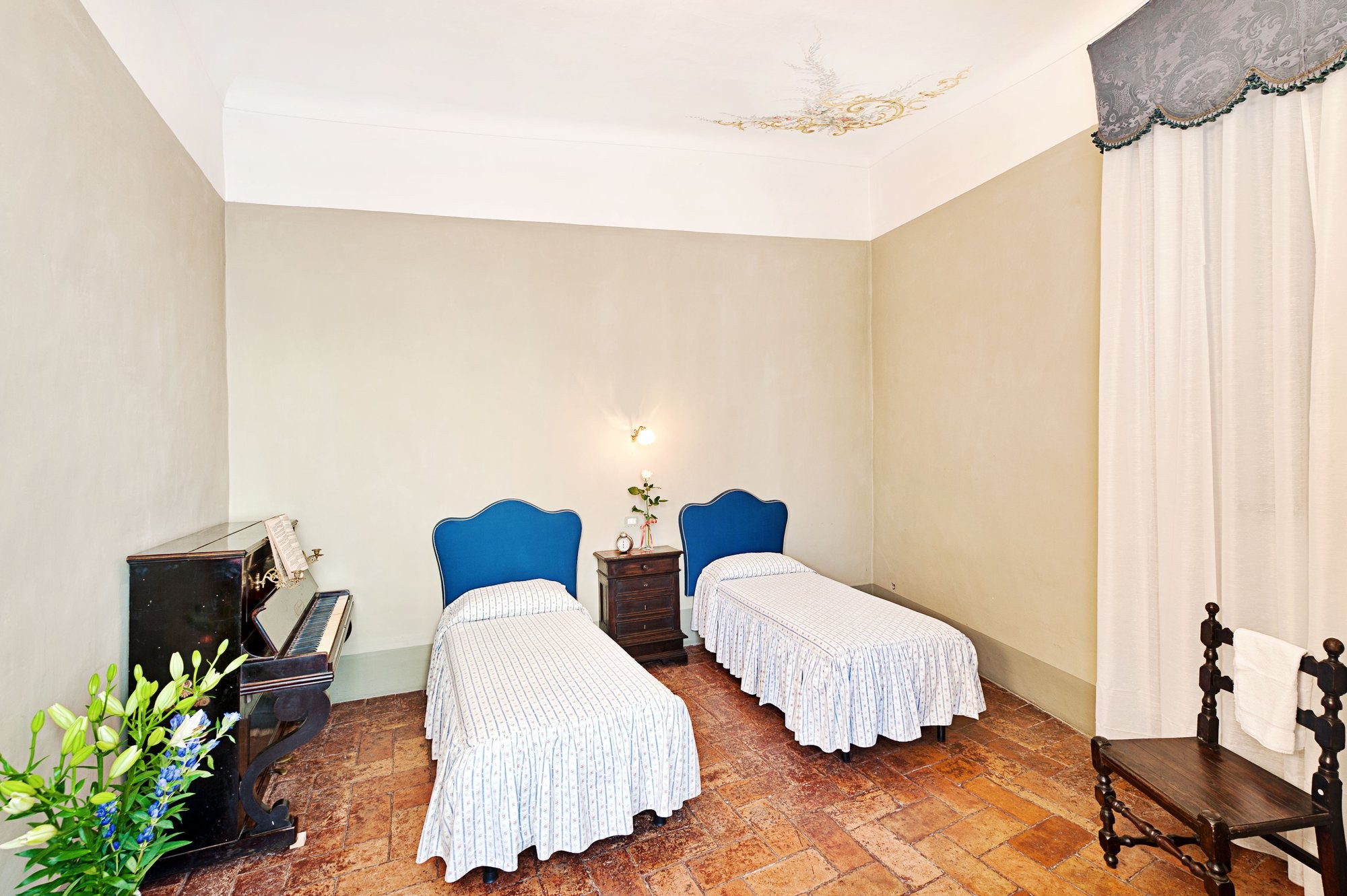 La résidence comprend six suites doubles luxueuses, chacune avec son propre caractère et une vue sur le jardin. Fresques, sols en terre cuite anciens et poutres apparentes renforcent l’atmosphère historique. Les salles de bains modernes attenantes ont été rénovées avec élégance, et les hauts plafonds ainsi que les grandes fenêtres offrent l’expérience de vivre dans une demeure noble tout en bénéficiant de tout le confort contemporain.