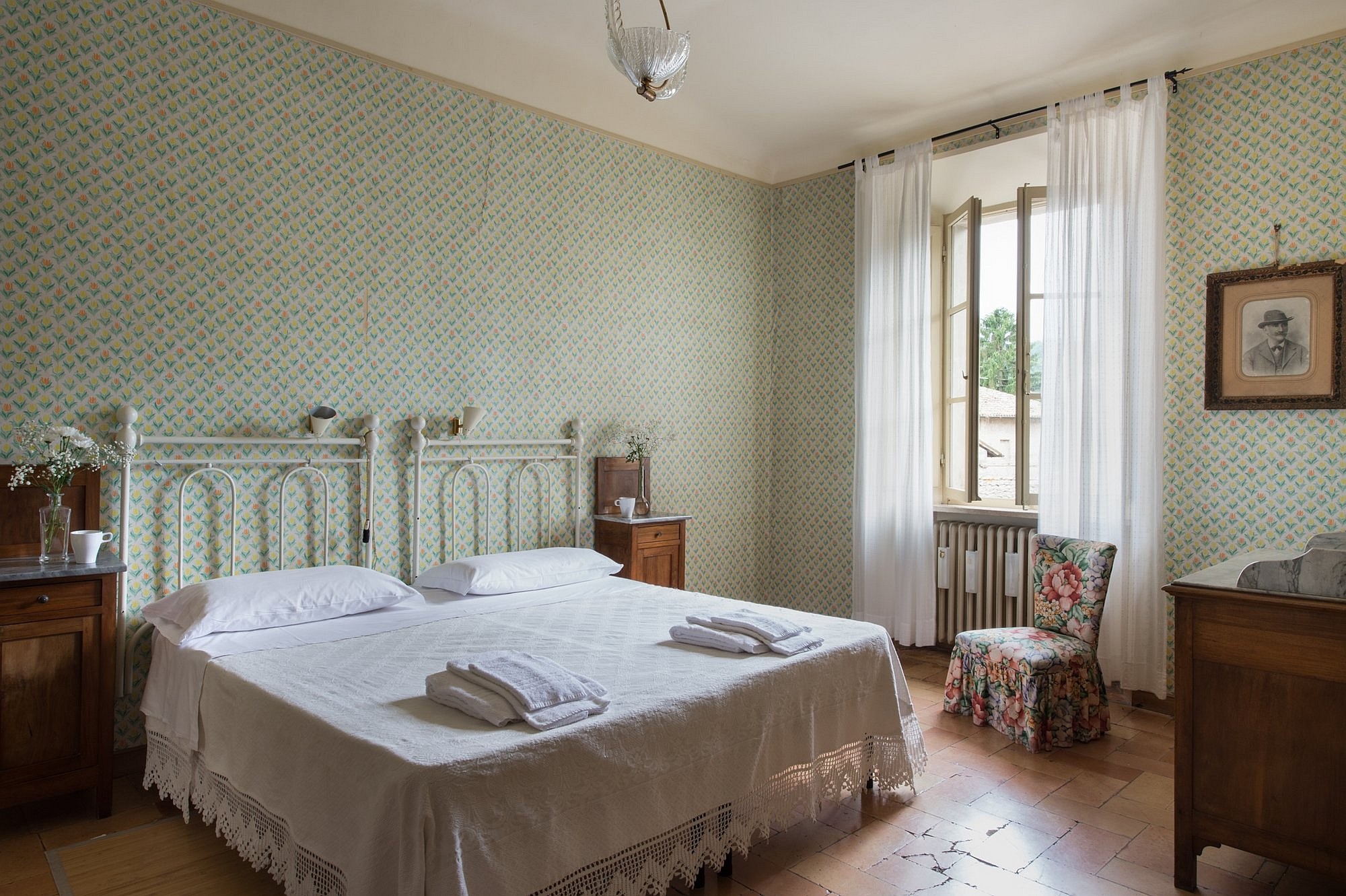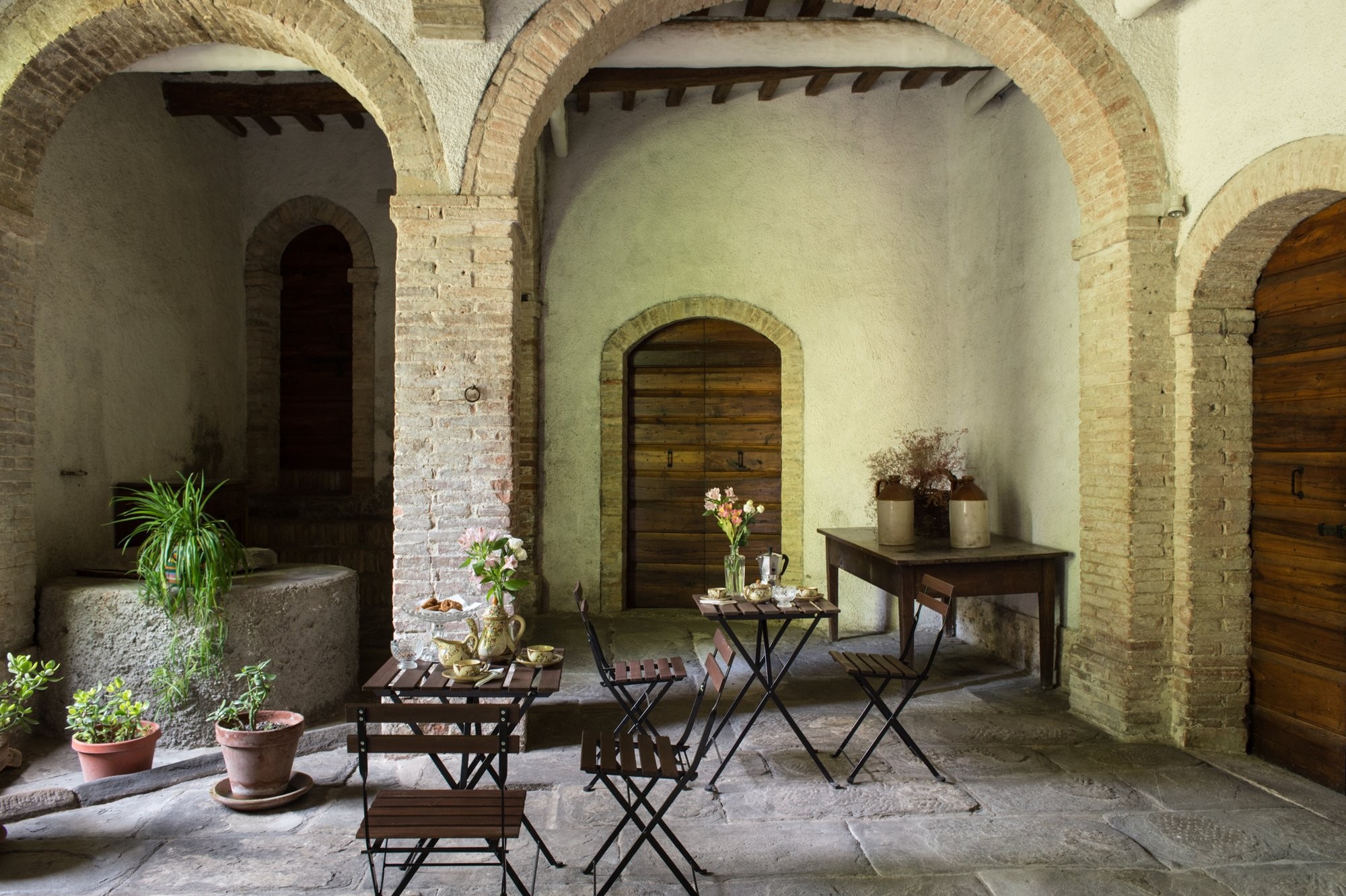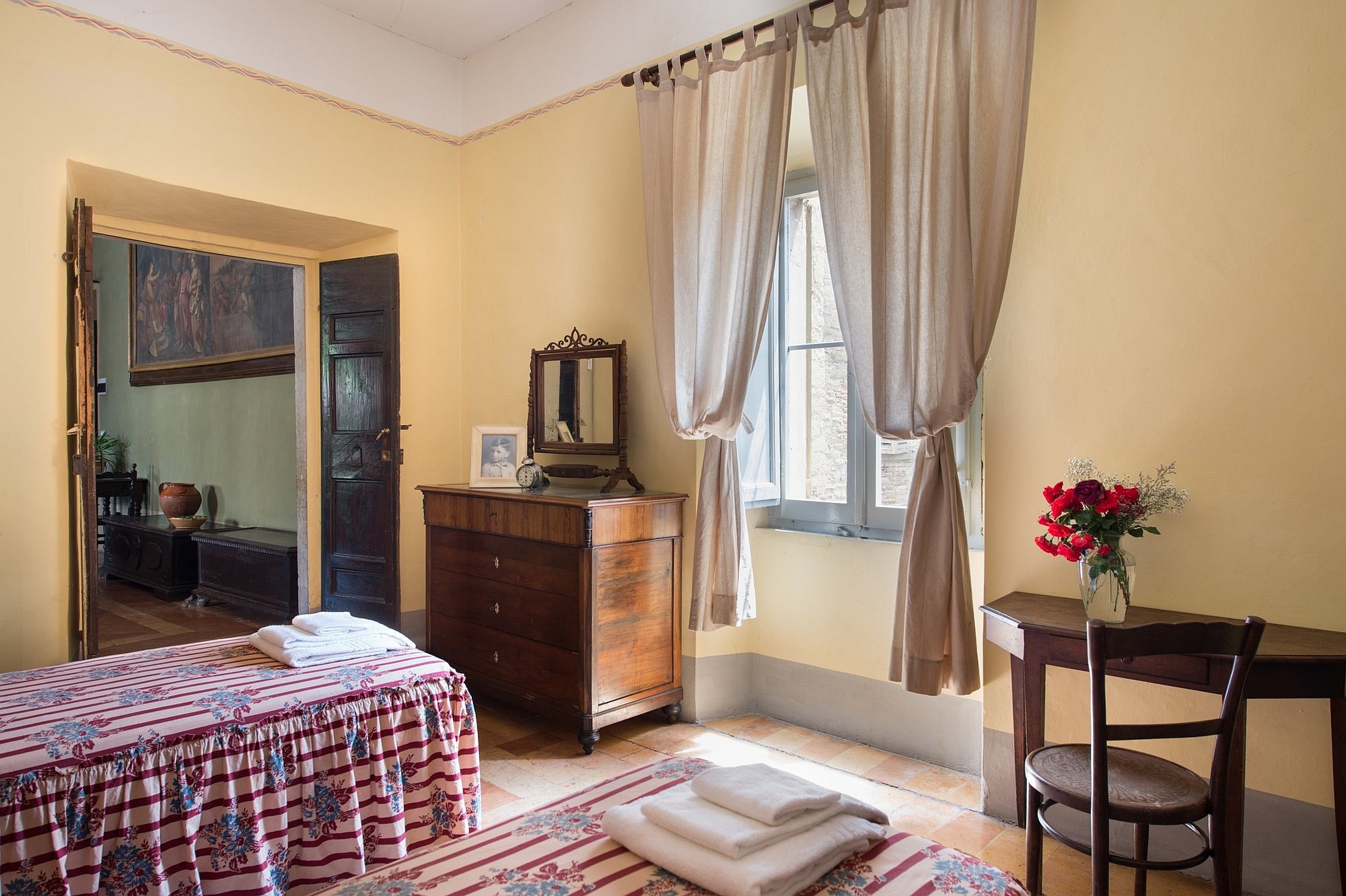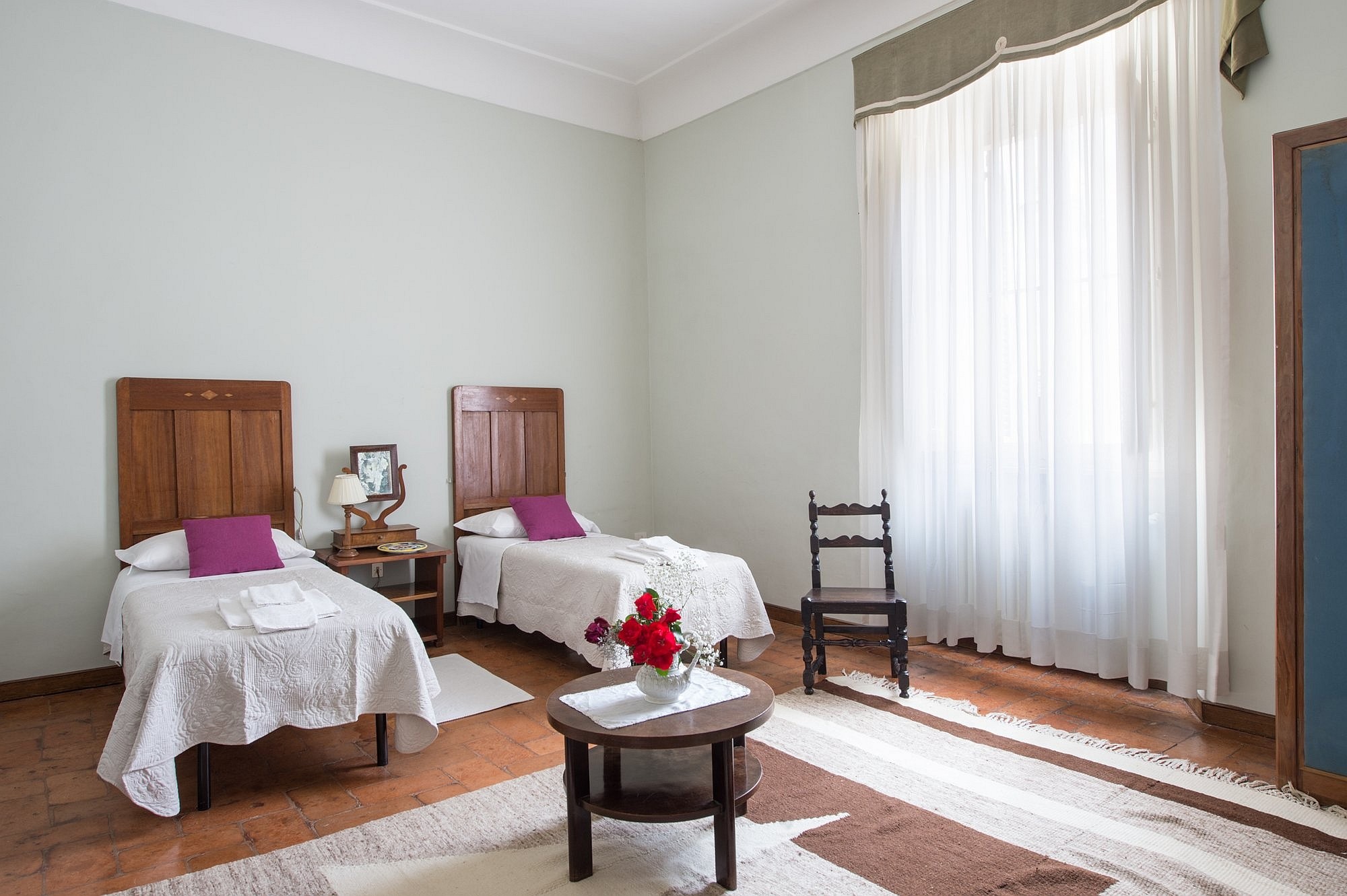 La résidence comprend six suites doubles luxueuses, chacune avec son propre caractère et une vue sur le jardin. Fresques, sols en terre cuite anciens et poutres apparentes renforcent l’atmosphère historique. Les salles de bains modernes attenantes ont été rénovées avec élégance, et les hauts plafonds ainsi que les grandes fenêtres offrent l’expérience de vivre dans une demeure noble tout en bénéficiant de tout le confort contemporain.