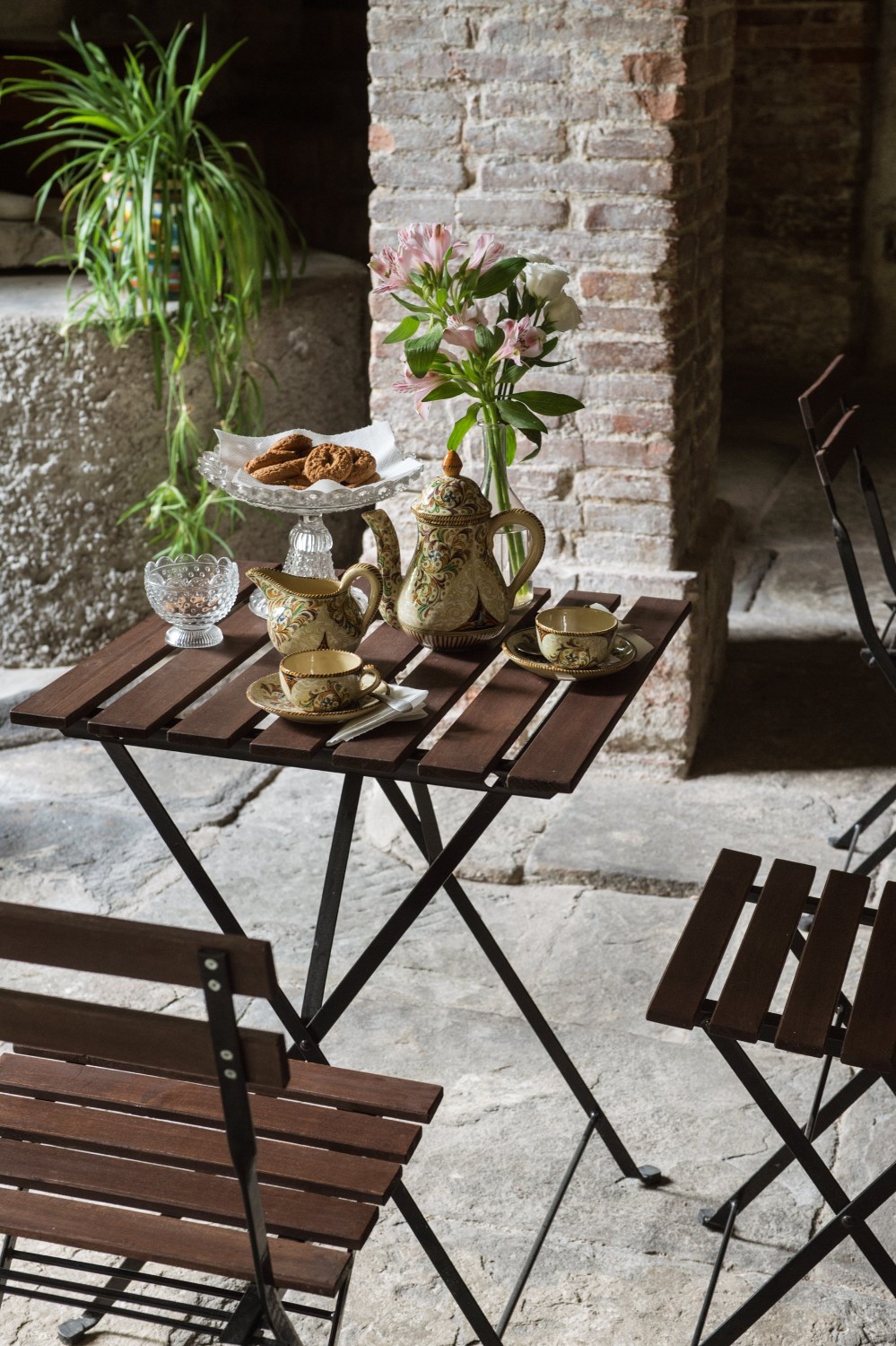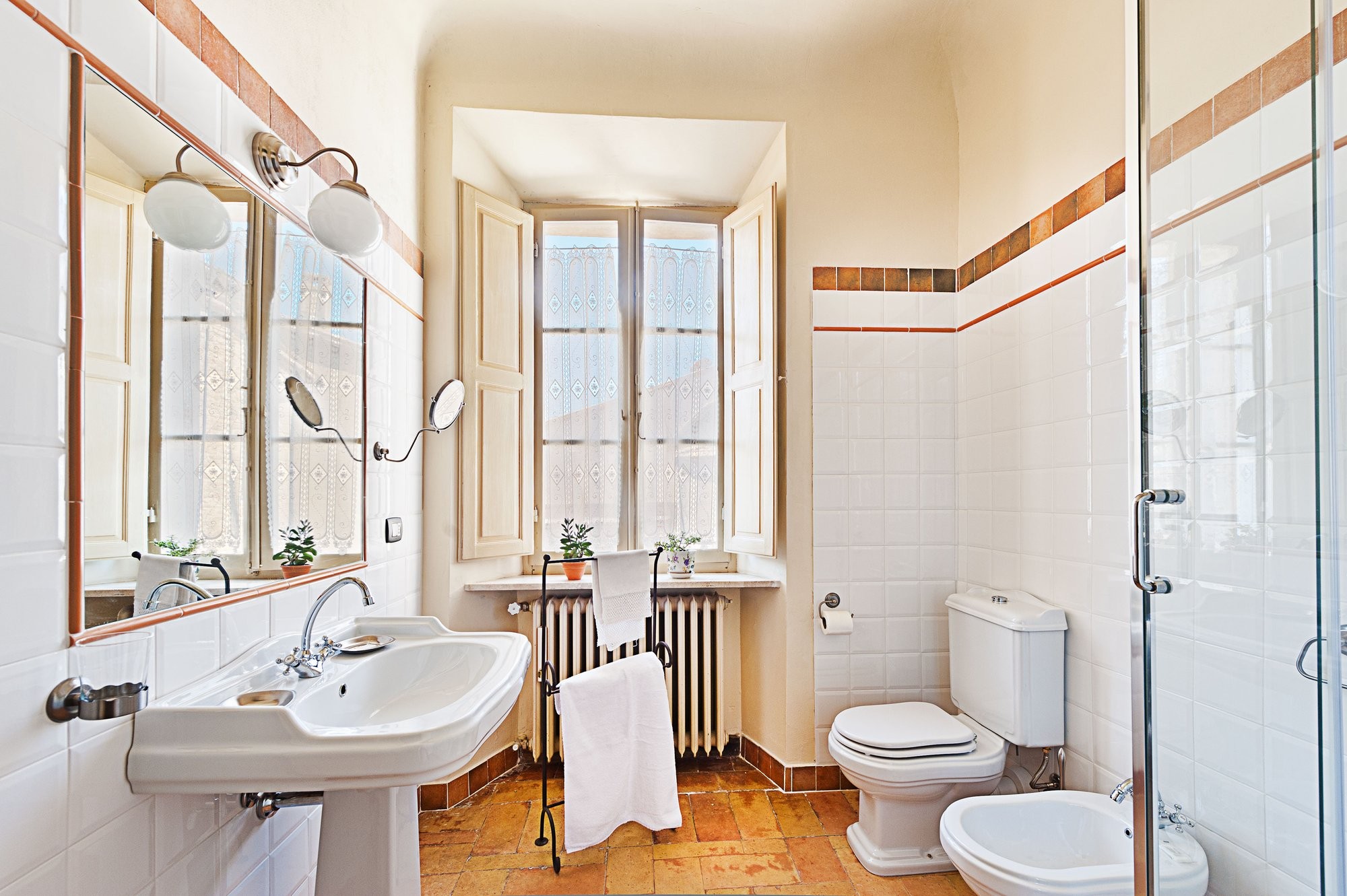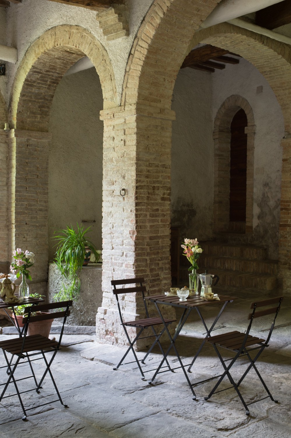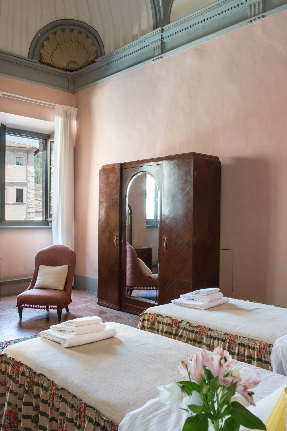 La résidence comprend six suites doubles luxueuses, chacune avec son propre caractère et une vue sur le jardin. Fresques, sols en terre cuite anciens et poutres apparentes renforcent l’atmosphère historique. Les salles de bains modernes attenantes ont été rénovées avec élégance, et les hauts plafonds ainsi que les grandes fenêtres offrent l’expérience de vivre dans une demeure noble tout en bénéficiant de tout le confort contemporain.