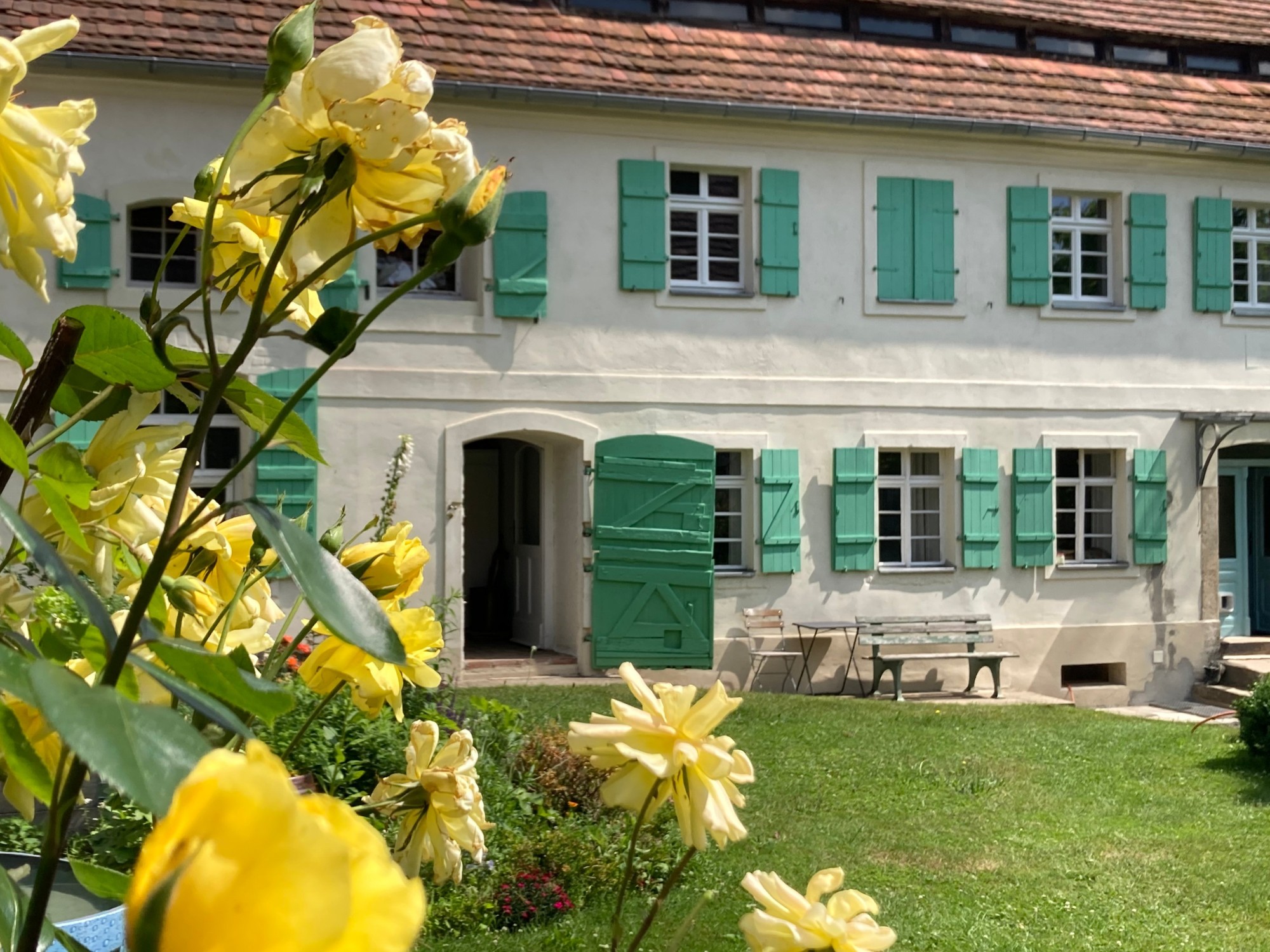 Cet ancien corps de ferme organisé autour d’une cour fermée se trouve à quelques kilomètres de Görlitz. Les bâtiments s’articulent autour d’une cour intérieure protégée, formant un ensemble cohérent qui réunit espaces de vie, zones de travail et potentiel d’extension. Le cadre est calme et rural tout en restant bien connecté à l’international, ce qui permet de concilier vie quotidienne et activités professionnelles ou artistiques.