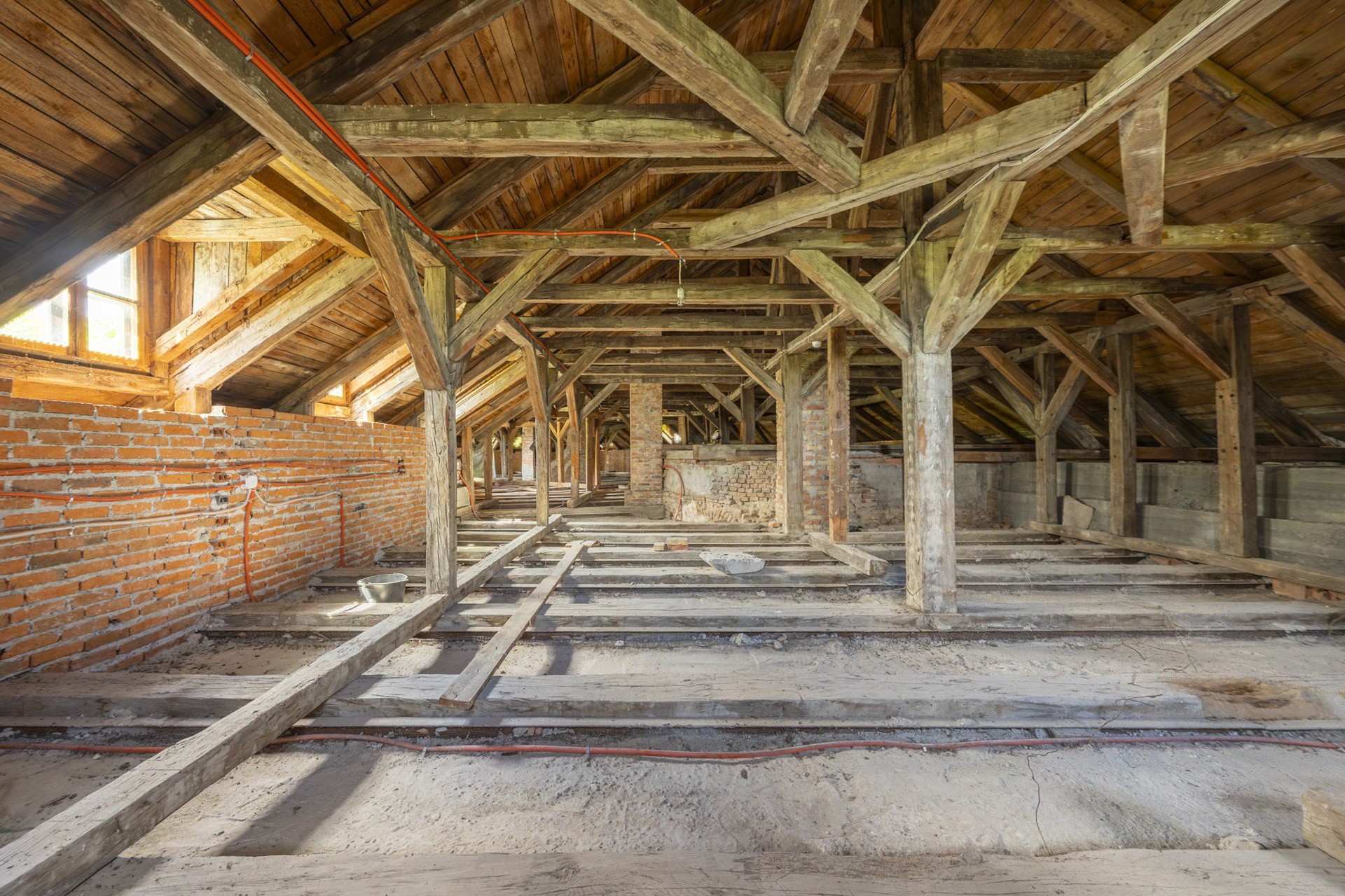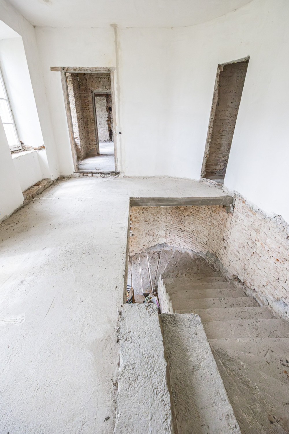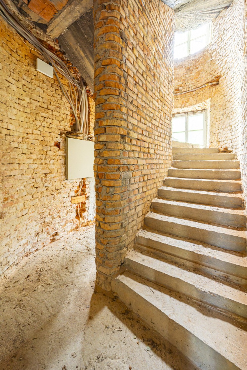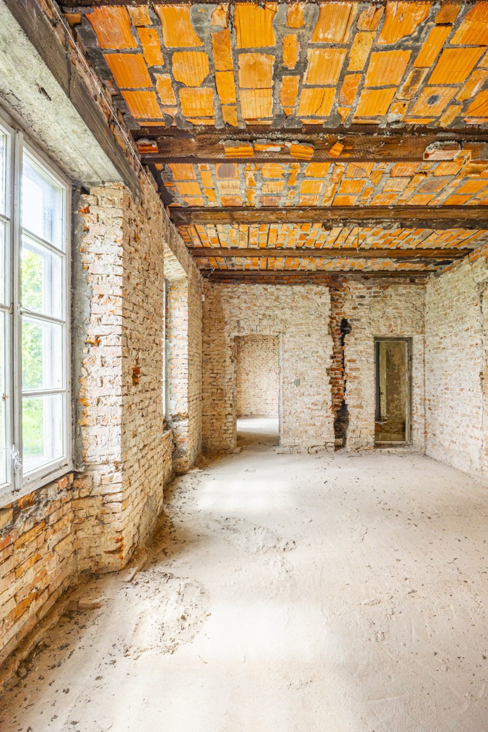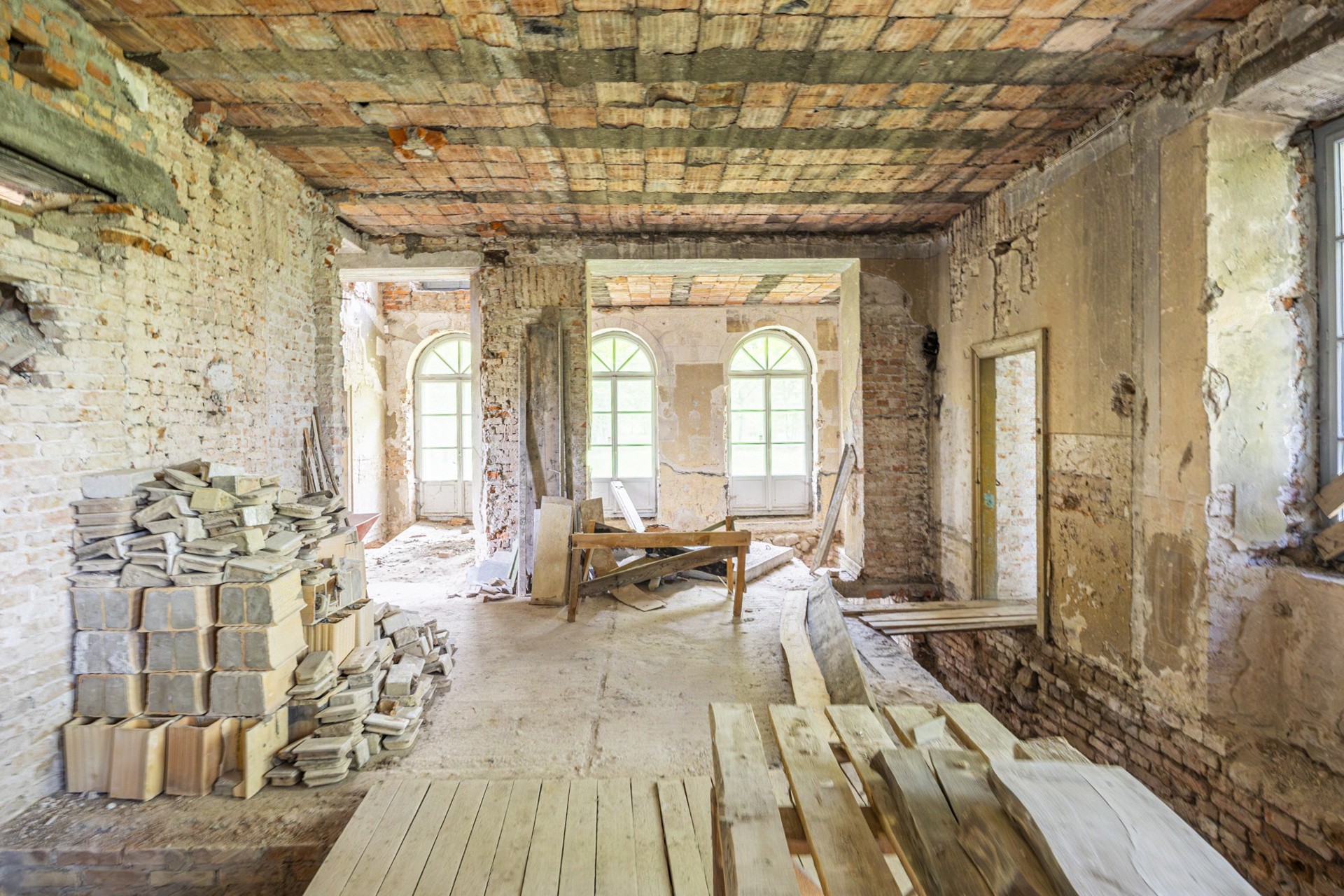 L’état du bâtiment nécessite une restauration complète. À ce jour, les espaces ont été entièrement mis à nu, les anciens plafonds à poutres en bois ont été remplacés par des dalles en béton, dix fenêtres ont été restaurées dans le respect du patrimoine, et la toiture a été réparée et conservée. Le bâtiment dispose d’un raccordement électrique ainsi que d’une alimentation en eau autonome via un puits. Il est équipé d’un système d’alarme.