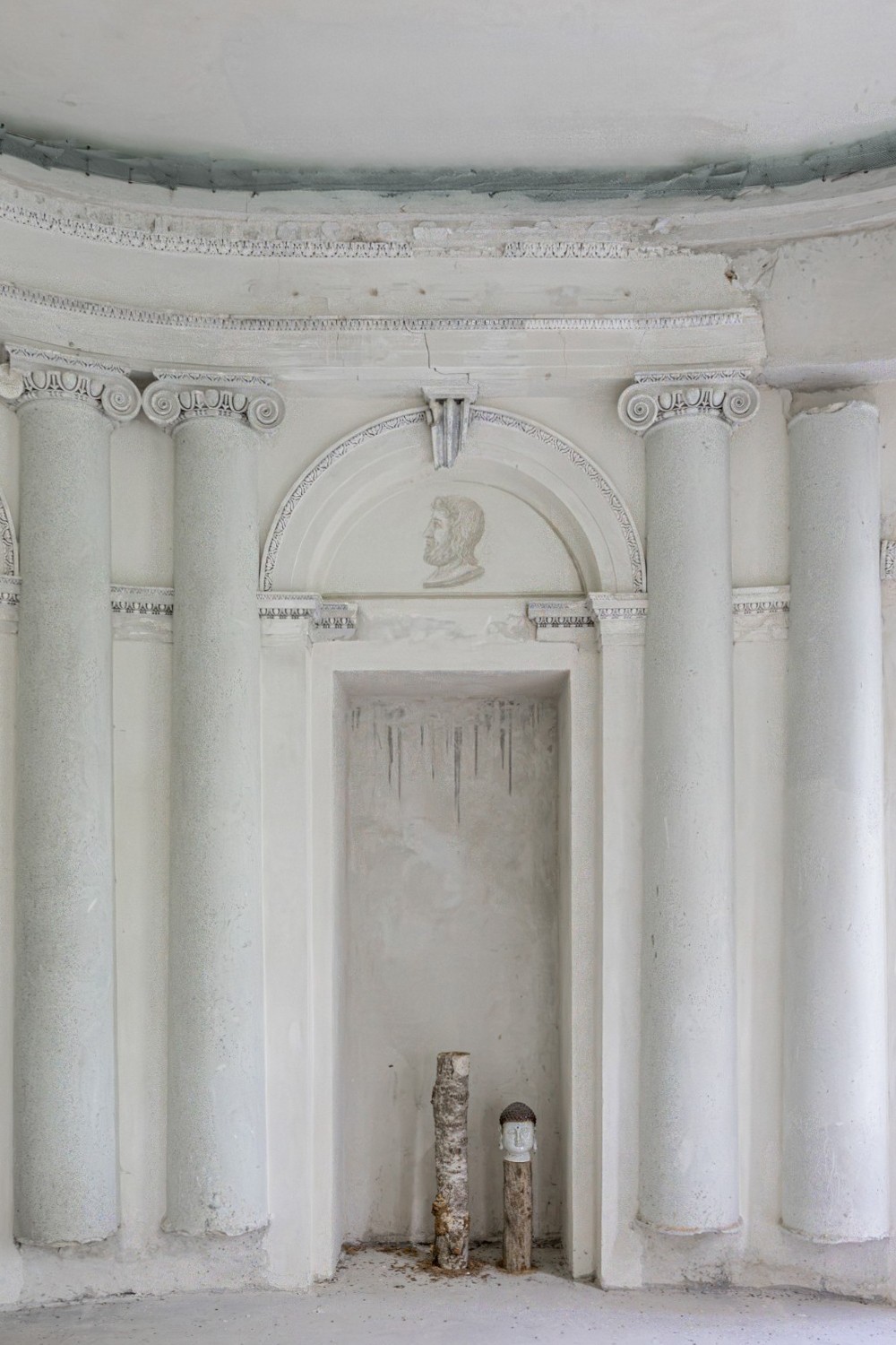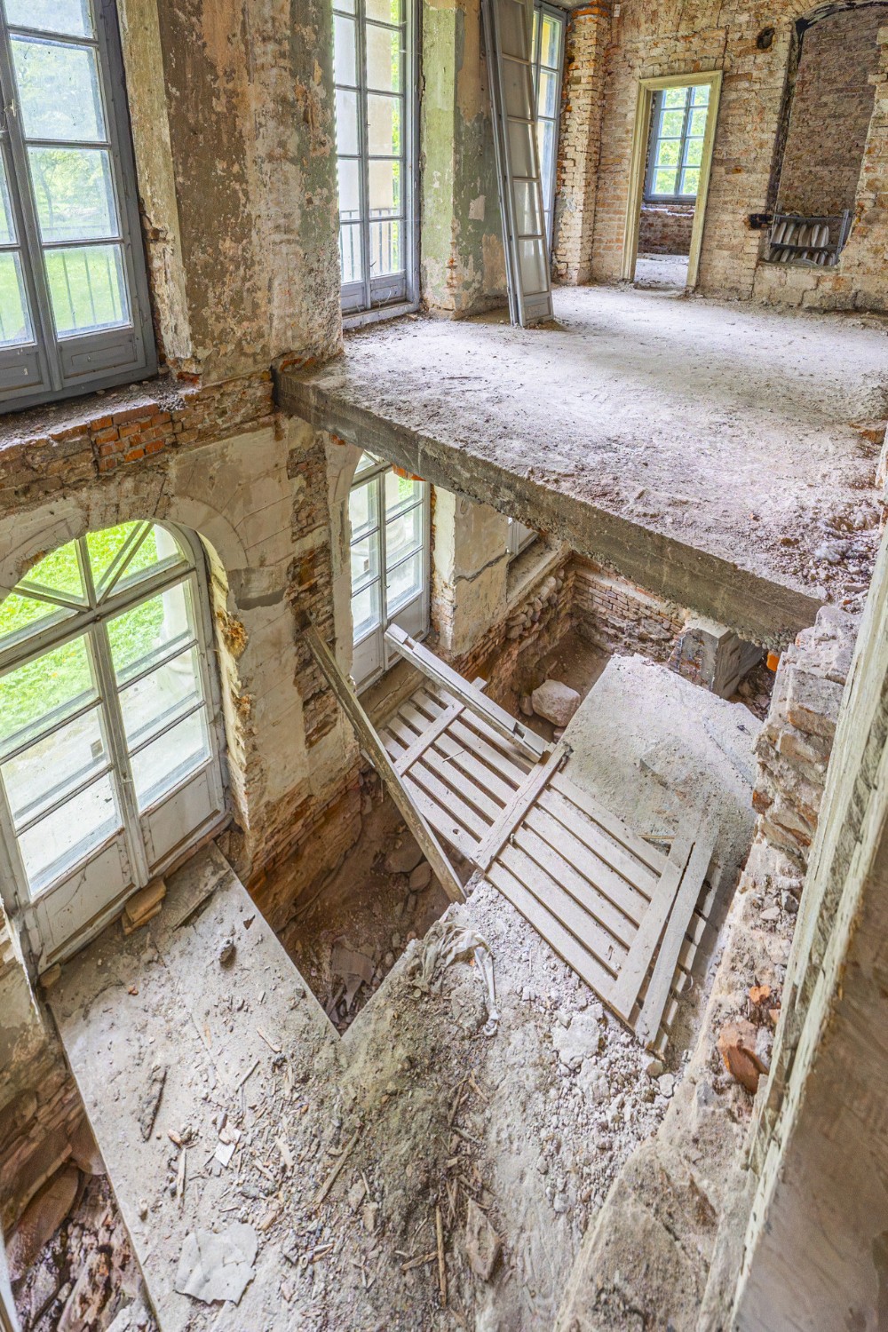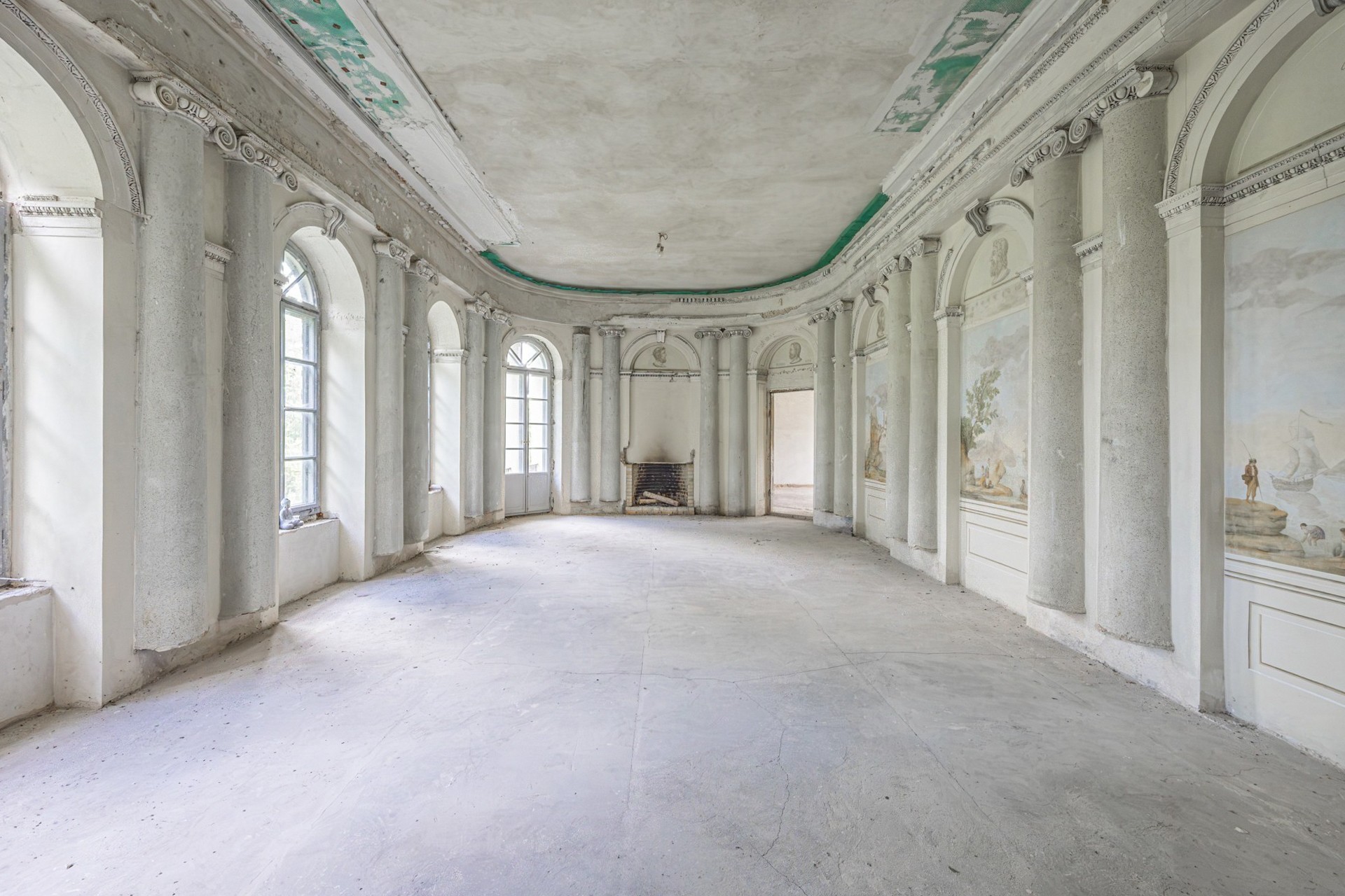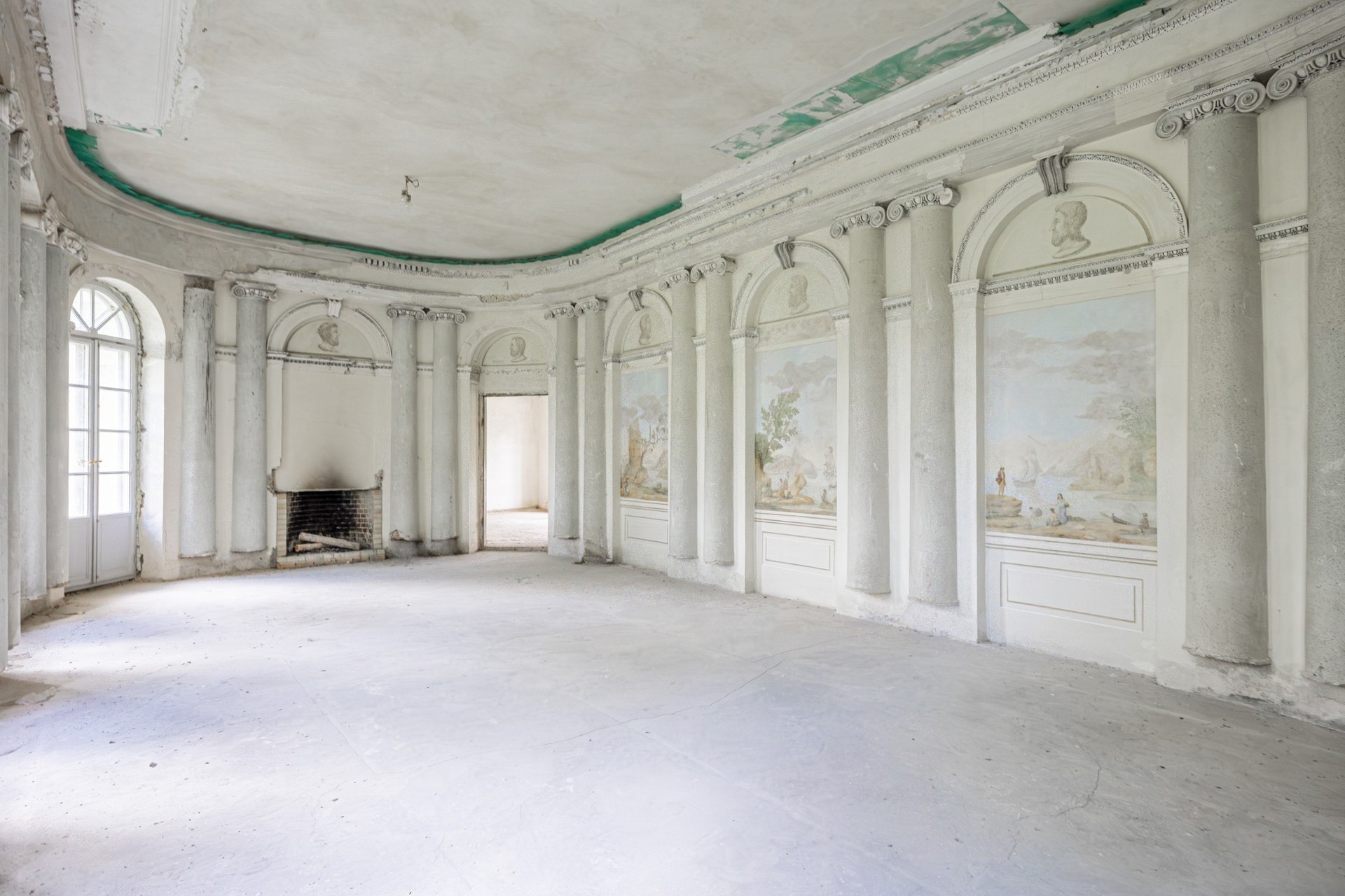 À l’étage, se situaient les pièces de réception, dont une grande salle à manger ainsi qu’une salle de bal dotée de colonnes en stuc de marbre en forme de demi-cercle. La salle de bal a été partiellement restaurée : les peintures murales ont été reprises et les fenêtres ont été remplacées.