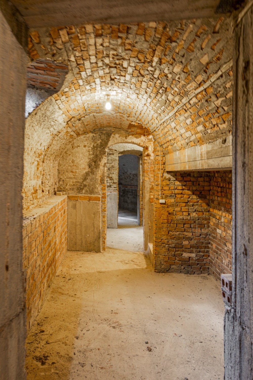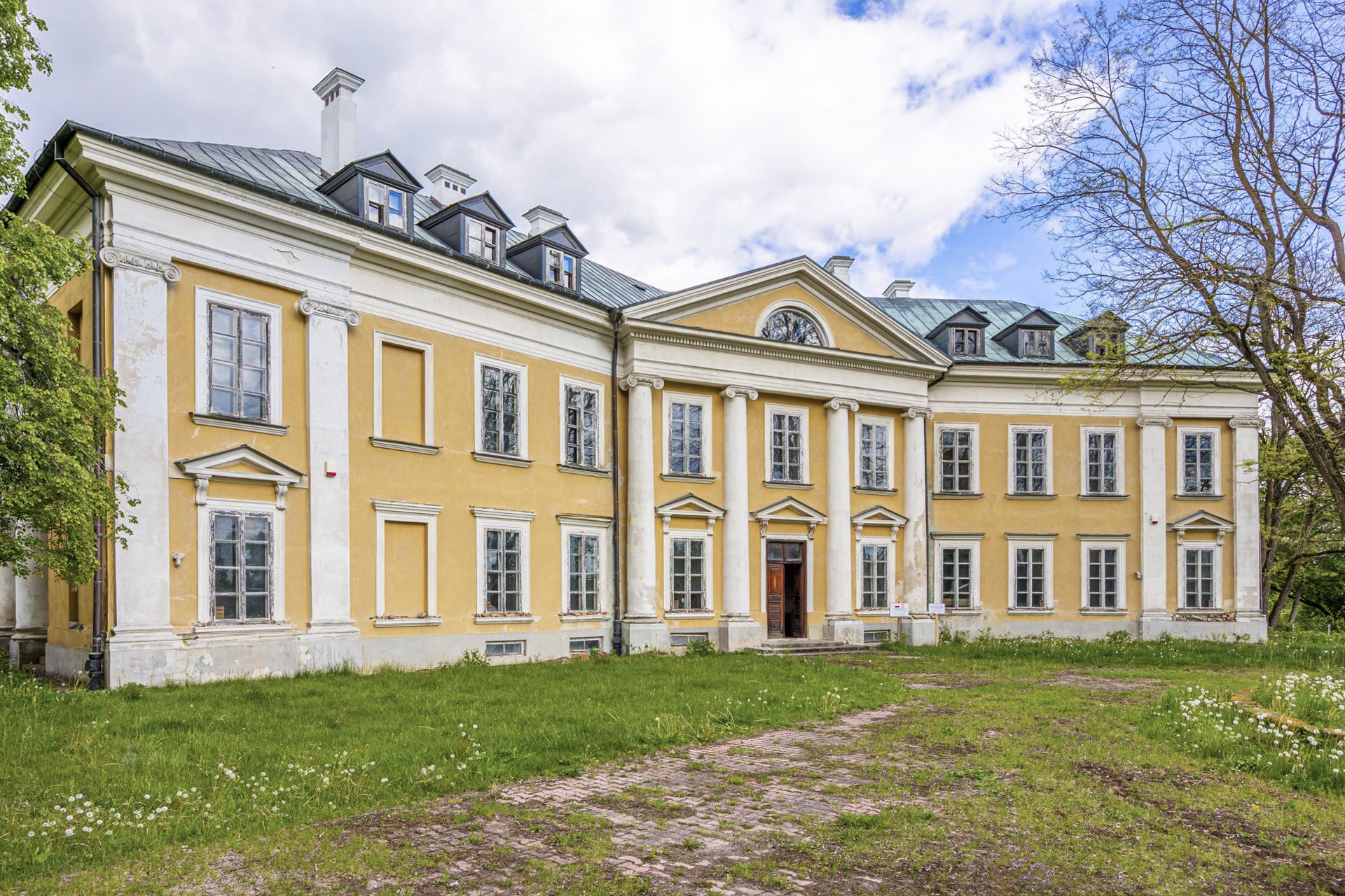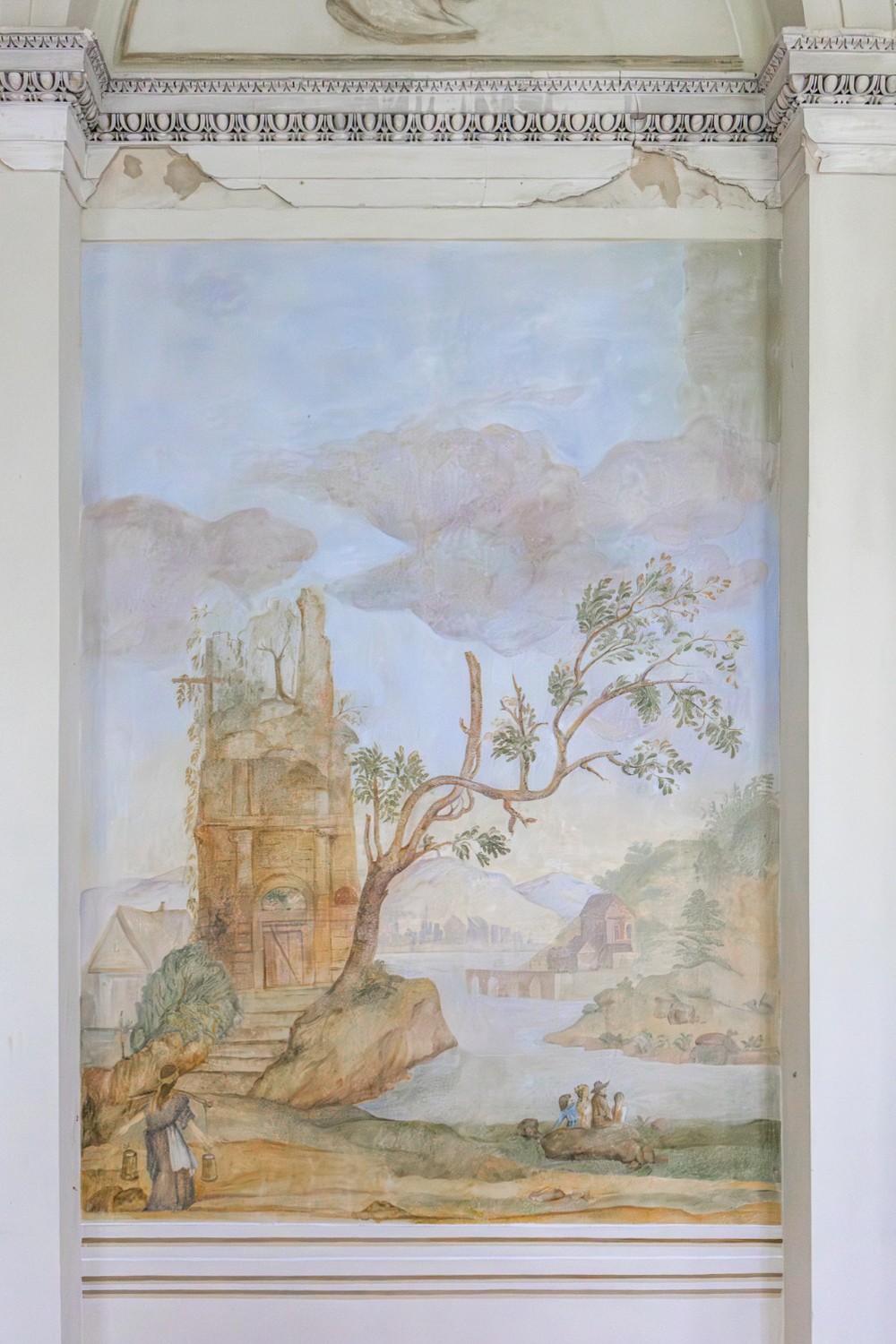 Le hall d’entrée mène à un ensemble de pièces largement distribuées. Au rez-de-chaussée se trouvaient les espaces de vie ainsi qu’une salle à manger ornée de fresques représentant des vues du parc des Łazienki à Varsovie et un portrait du roi Jean III Sobieski. Ces fresques ne sont aujourd’hui conservées qu’à l’état fragmentaire et devraient être restaurées par des spécialistes en restauration d’art.