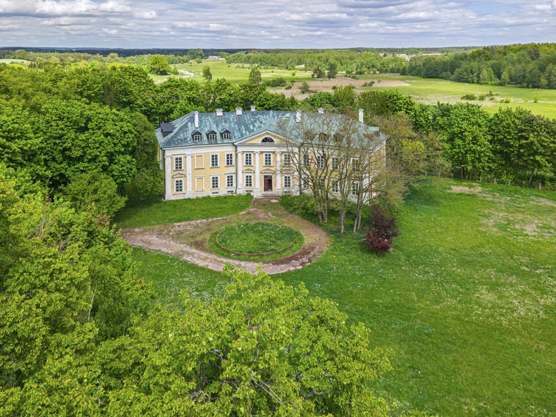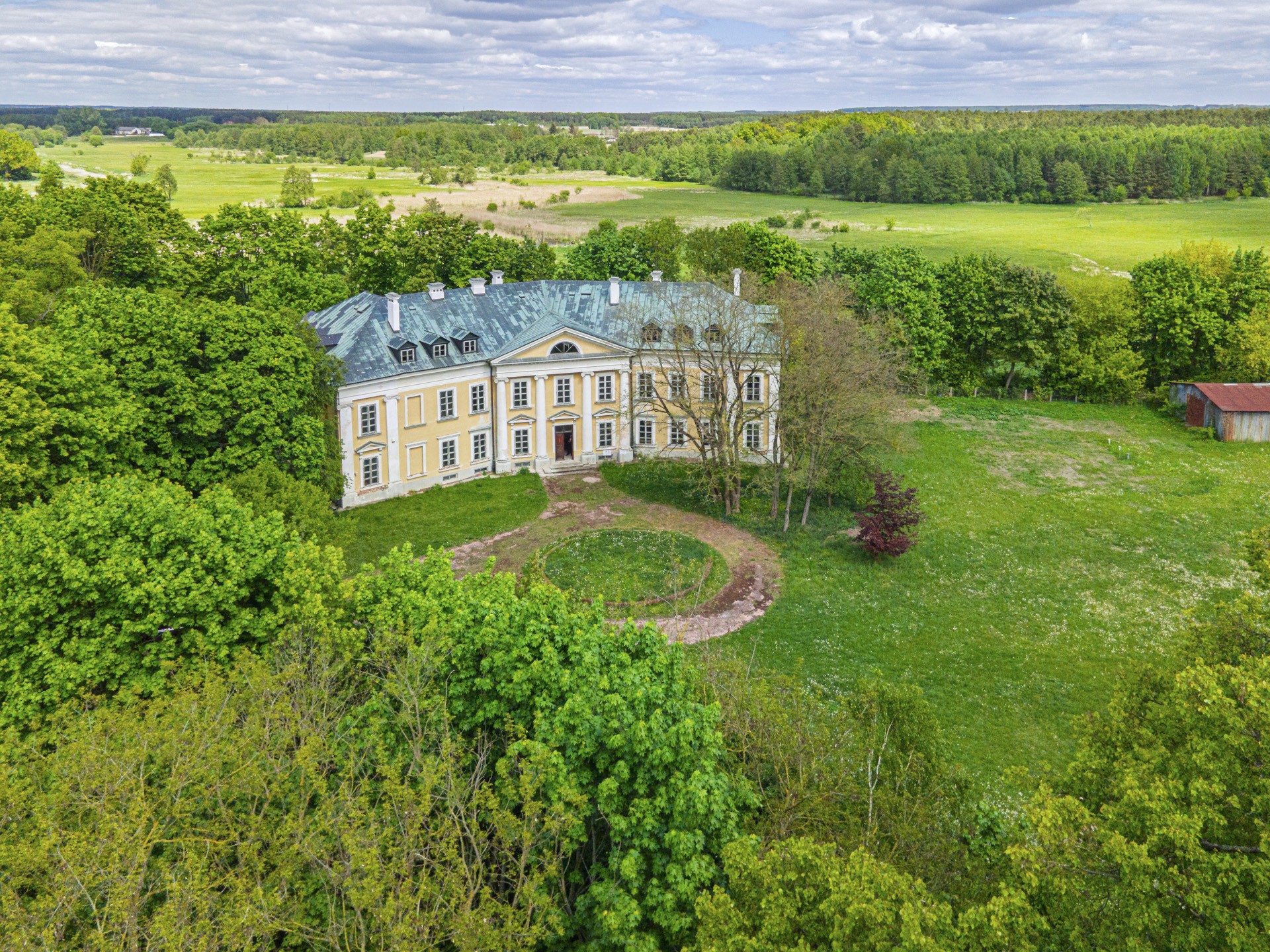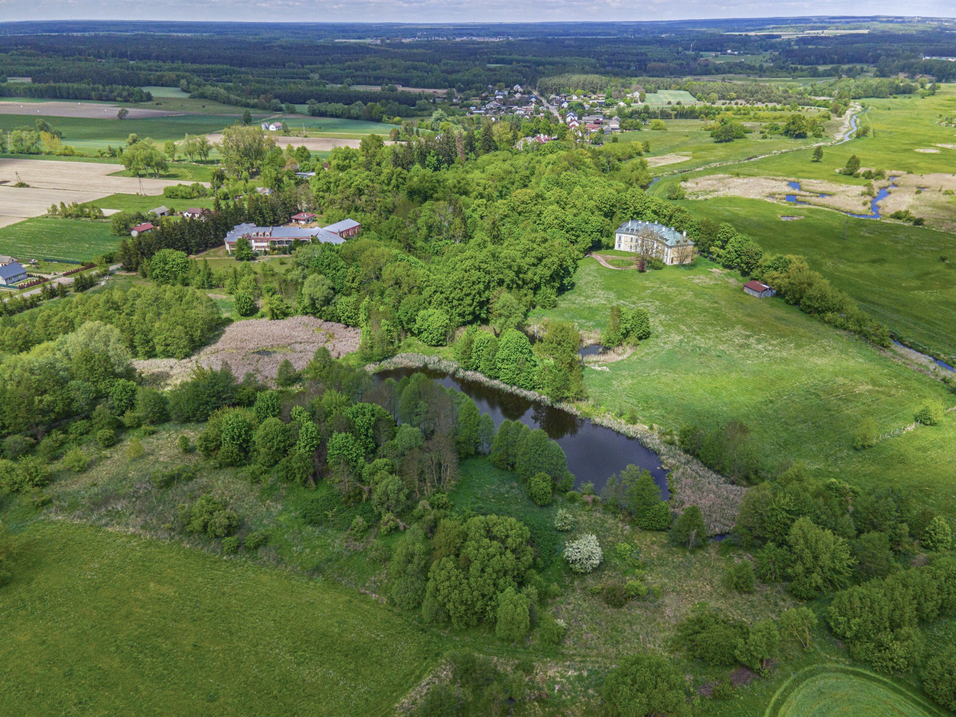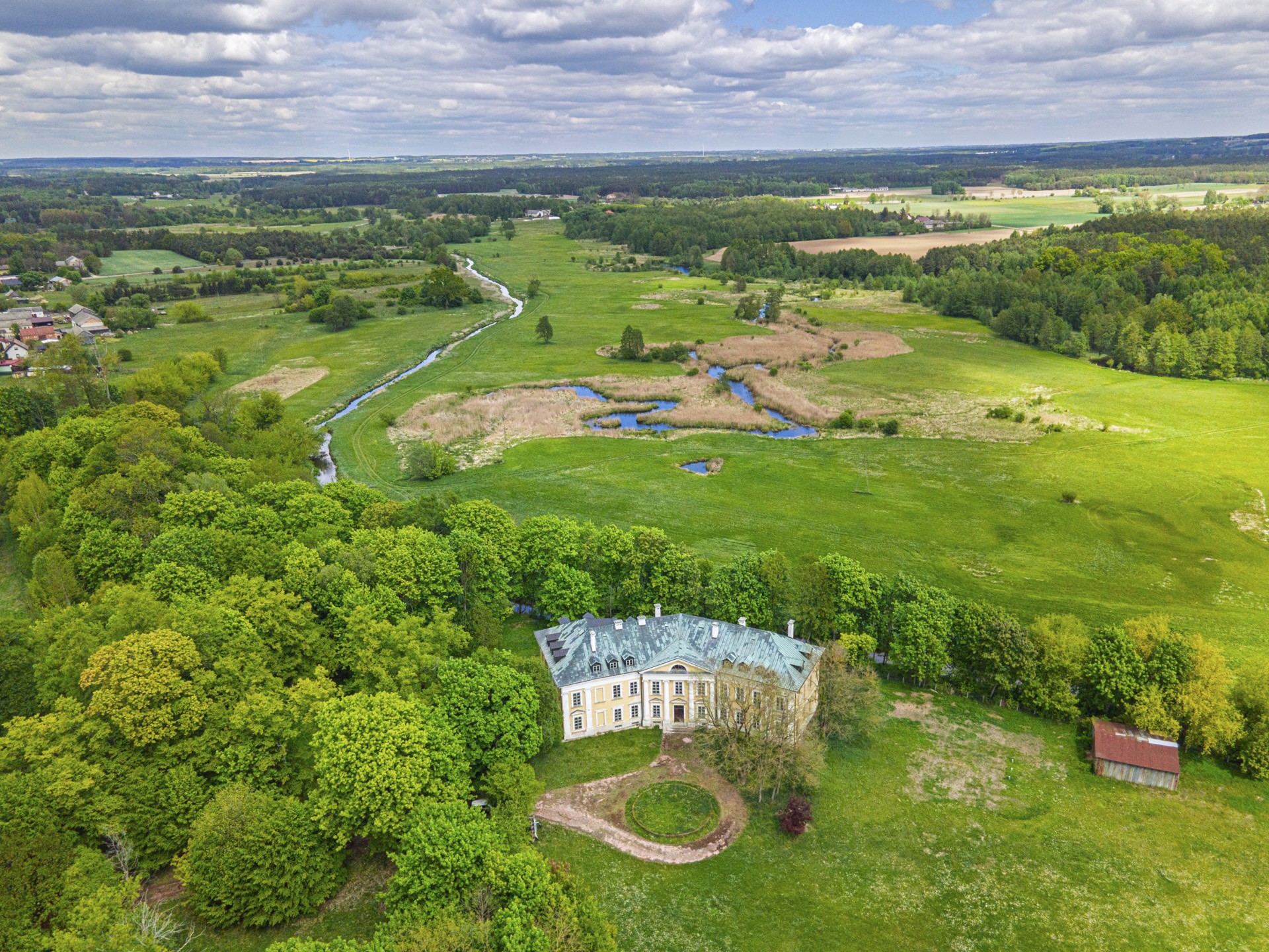 À environ 60 kilomètres au nord de Varsovie, commune de Luberadz. Le palais n’est pas visible depuis la route et le terrain ne comporte aucune construction intrusive ou étrangère.
