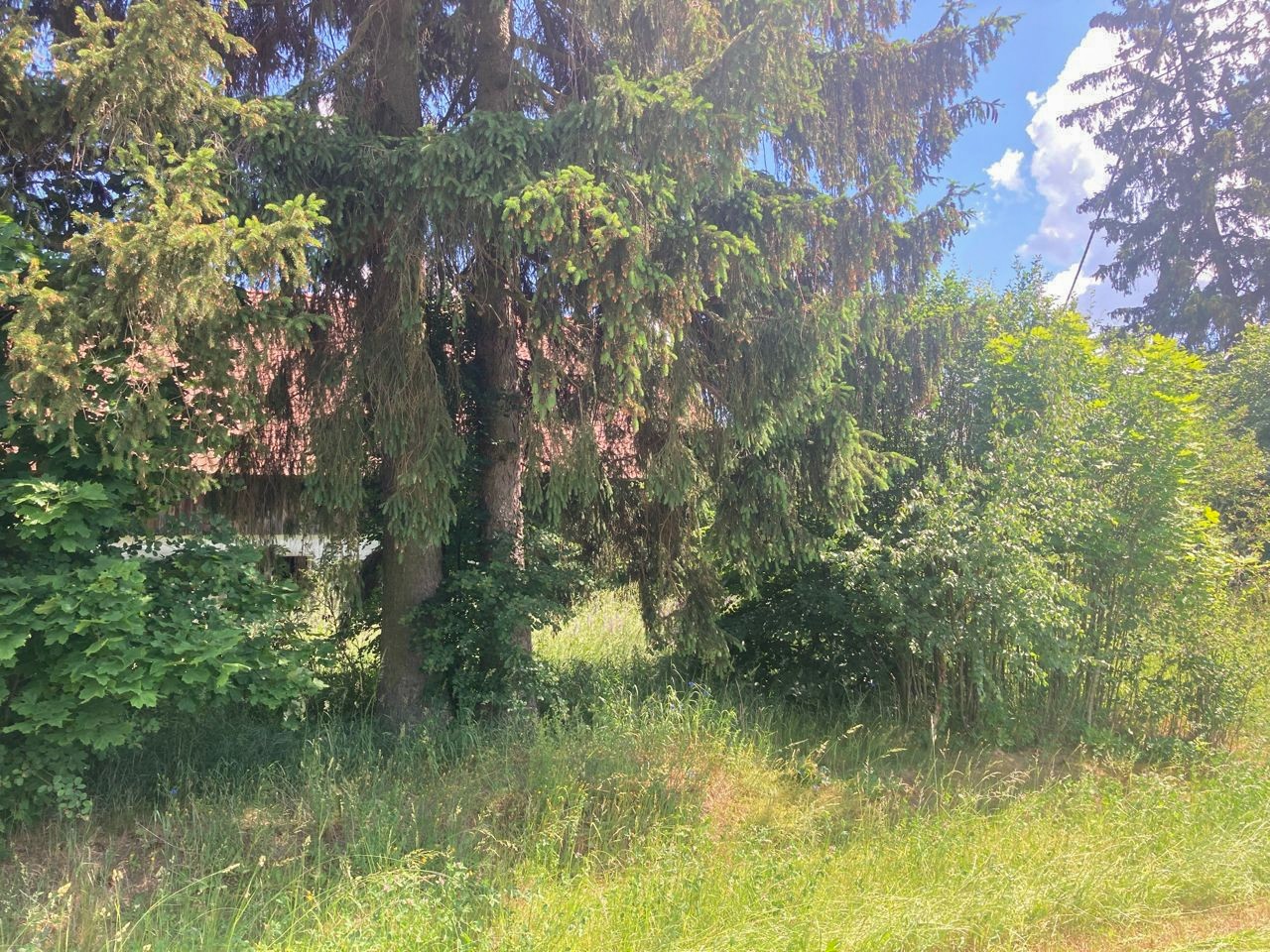 Il n’y a pas de voisins directs. Le terrain est couvert de vieux épicéas. L’environnement est calme et proche de la nature. La forêt se trouve à environ 500 m.