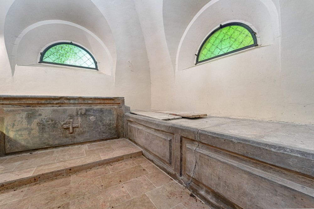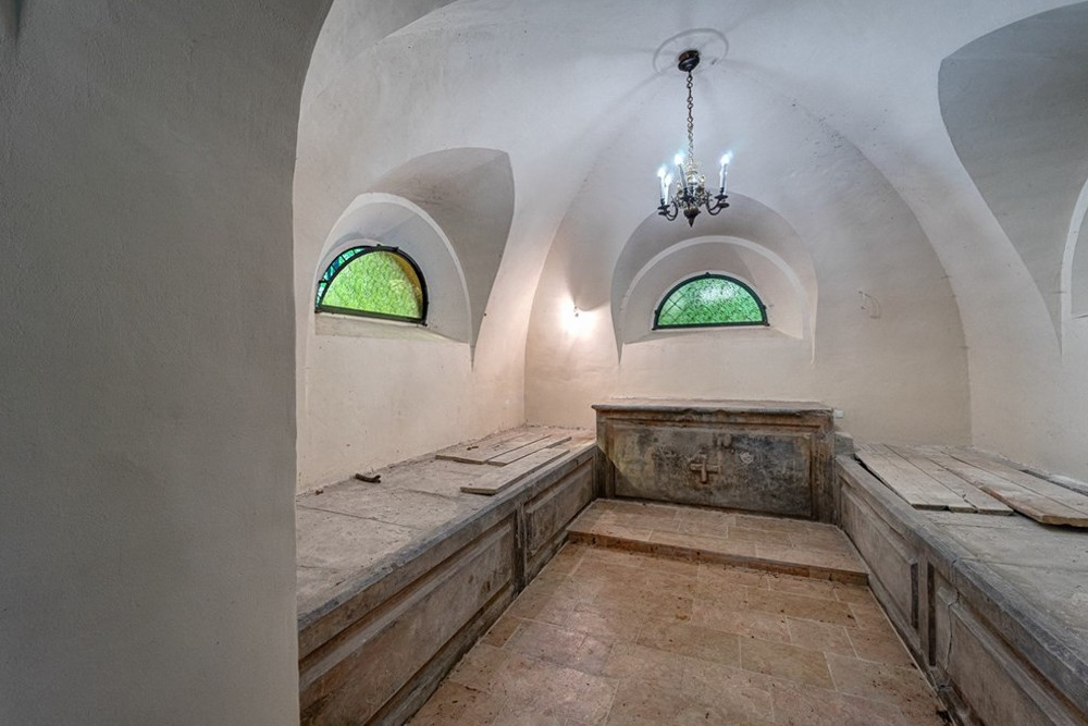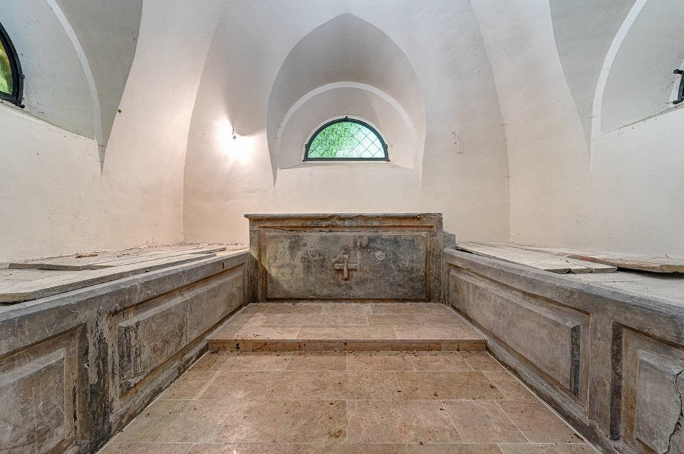 Selon les archives historiques, une « chapelle fortifiée » se trouvait dans l'aile sud de 1684 à 1690, dont le plan est encore conservé aujourd'hui. Elle était à trois niveaux avec un accès au sous-sol par une échelle et un accès au niveau supérieur par un escalier extérieur. La chapelle était en pierre avec un plan presque carré.